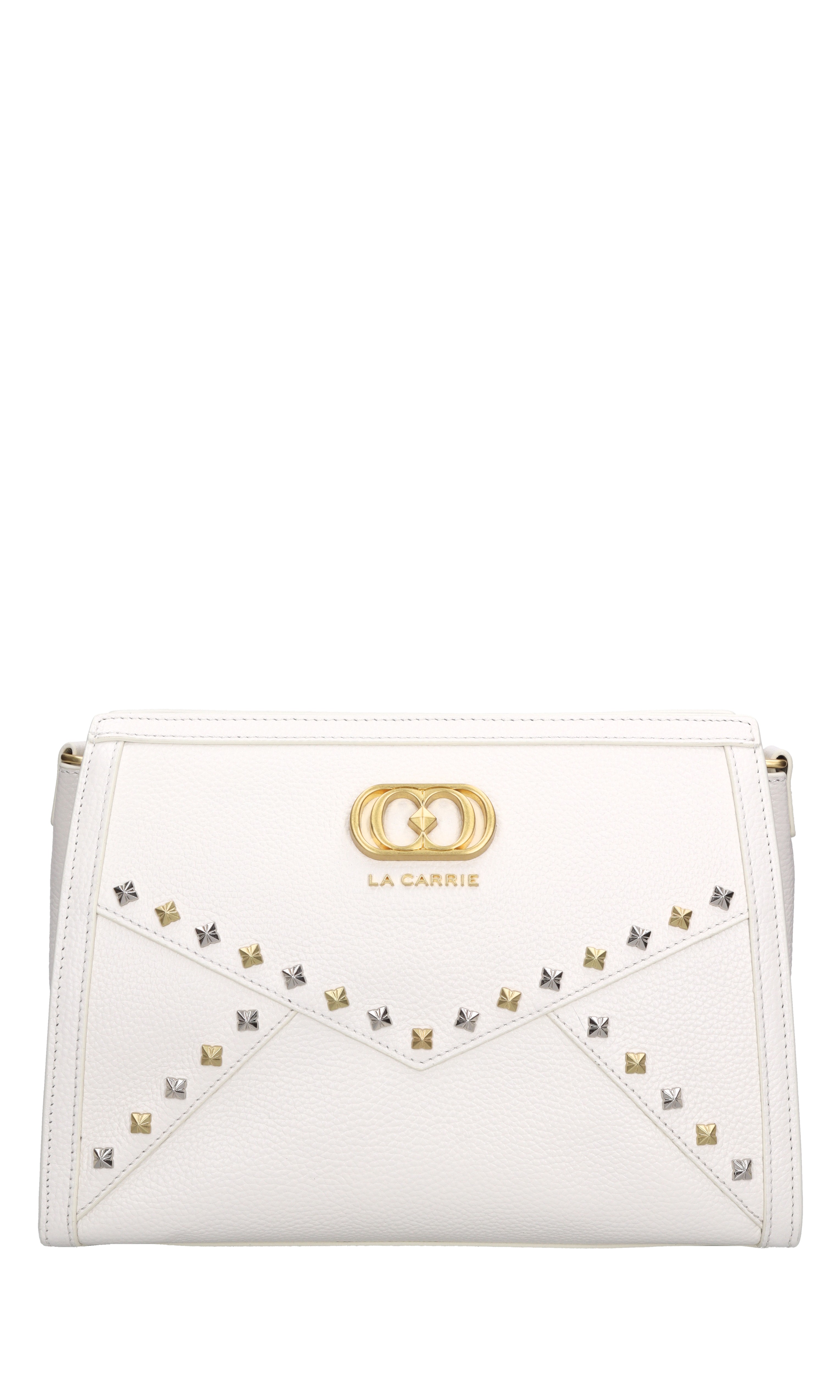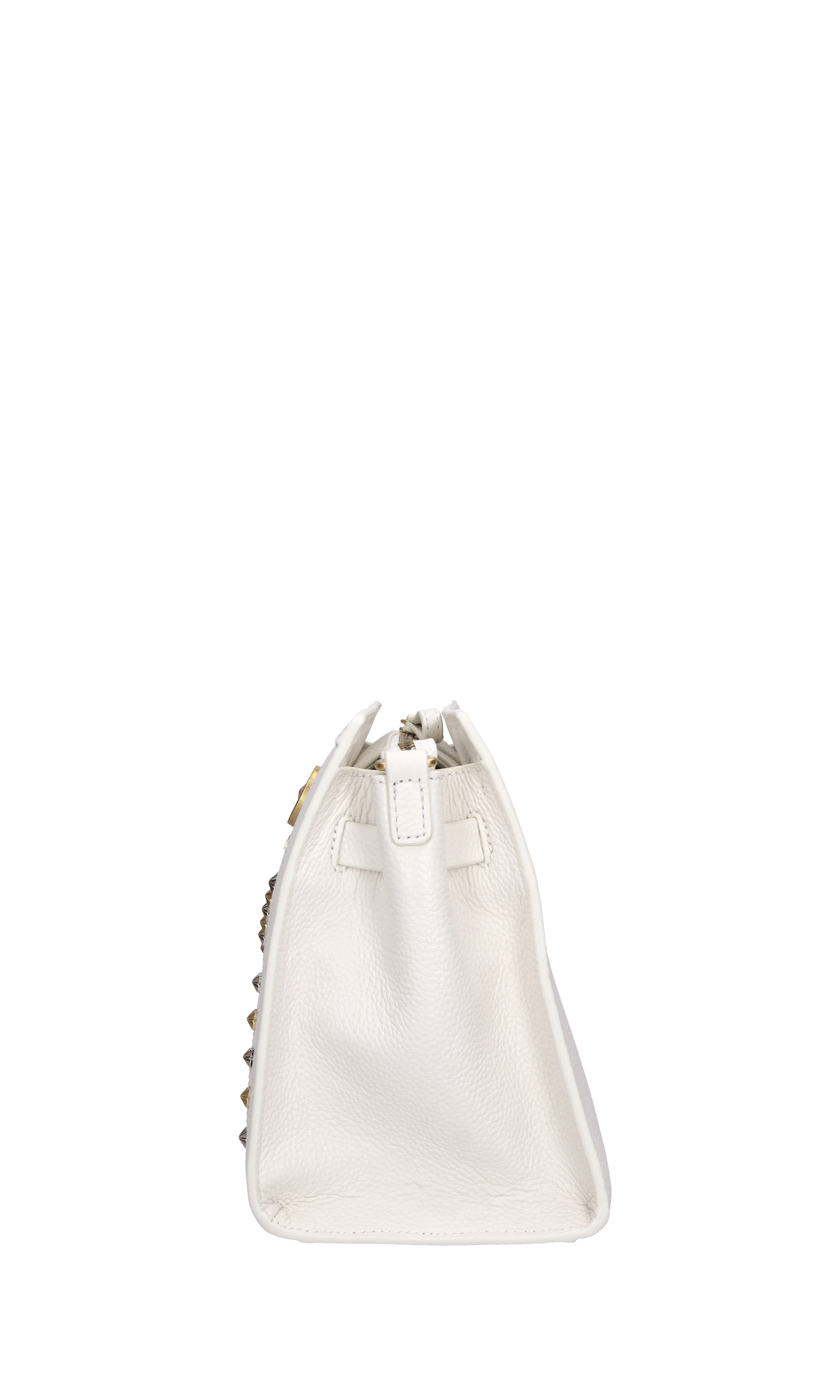 Frivolous medium leather bag with studs. Silver and gold studs. 1 compartment. Zip closure. Removable leather handle. Gold chain shoulder strap.