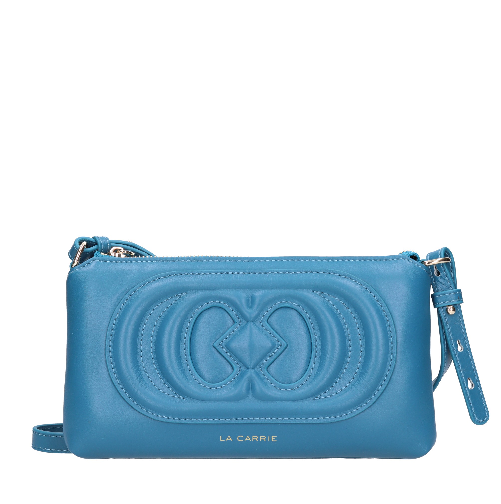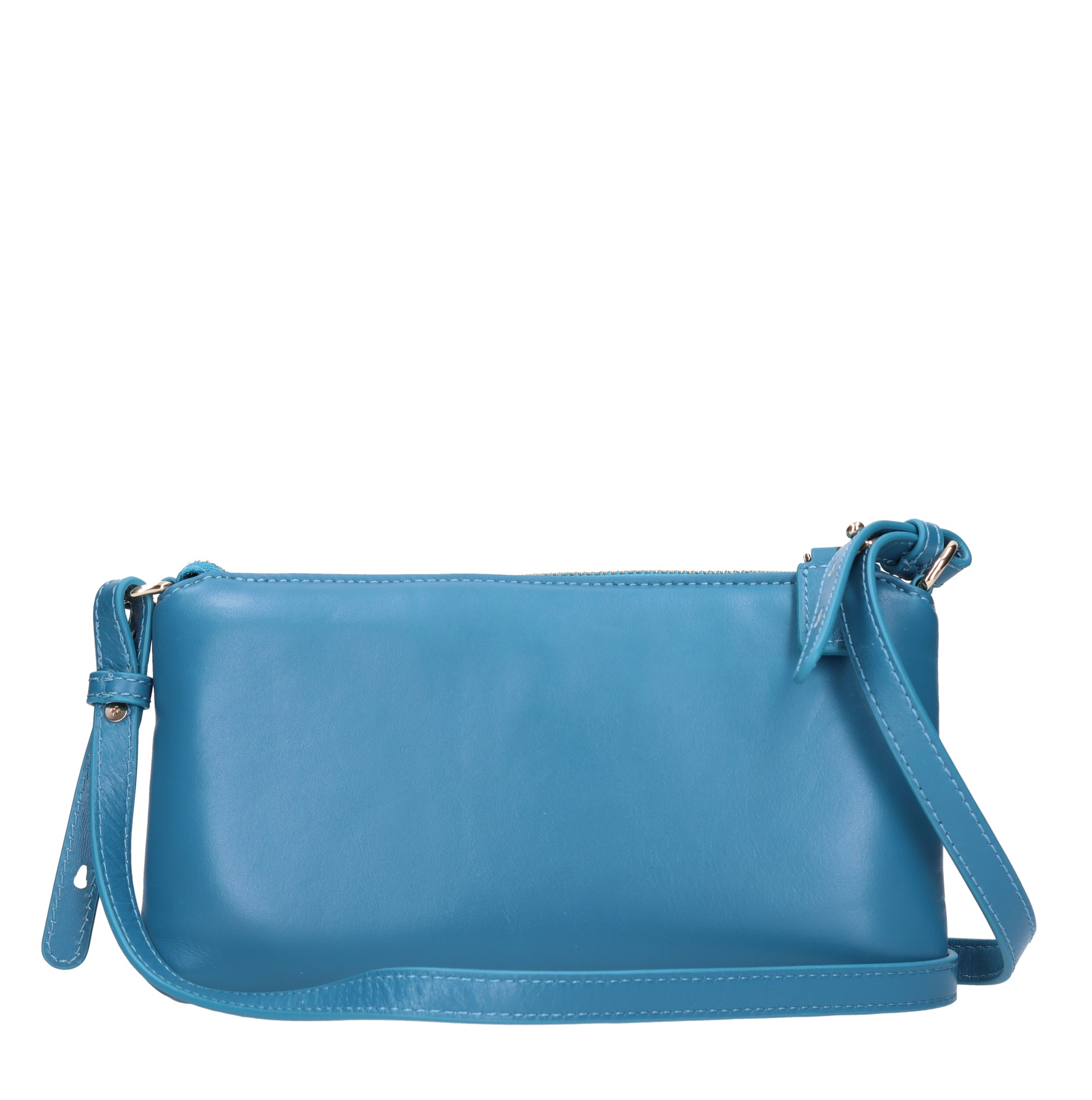 Leather bag. 1 compartment. Zip closure. Adjustable and removable leather shoulder strap. Removable leather handle.