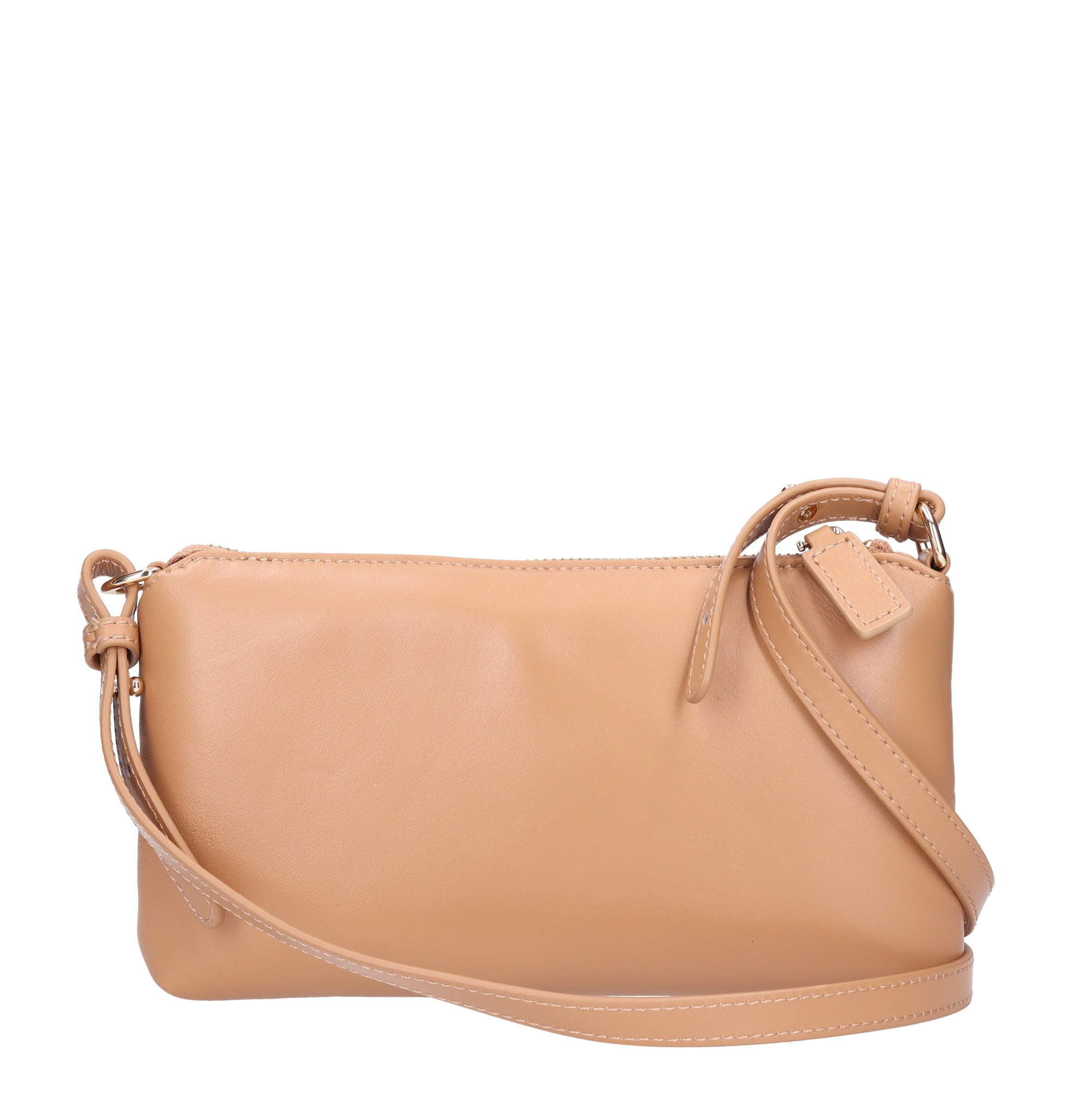 Leather bag. 1 compartment. Zip closure. Adjustable and removable leather shoulder strap. Removable leather handle.