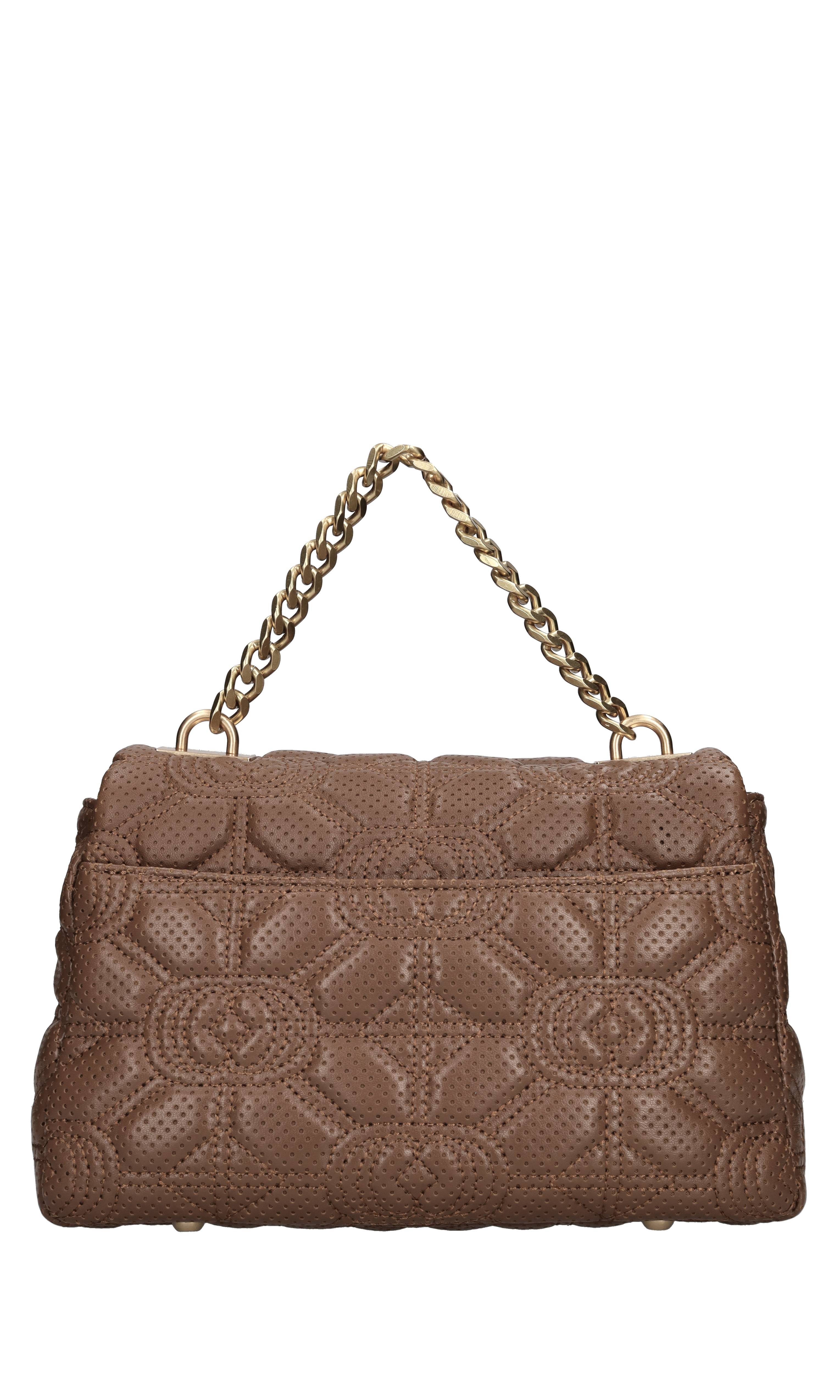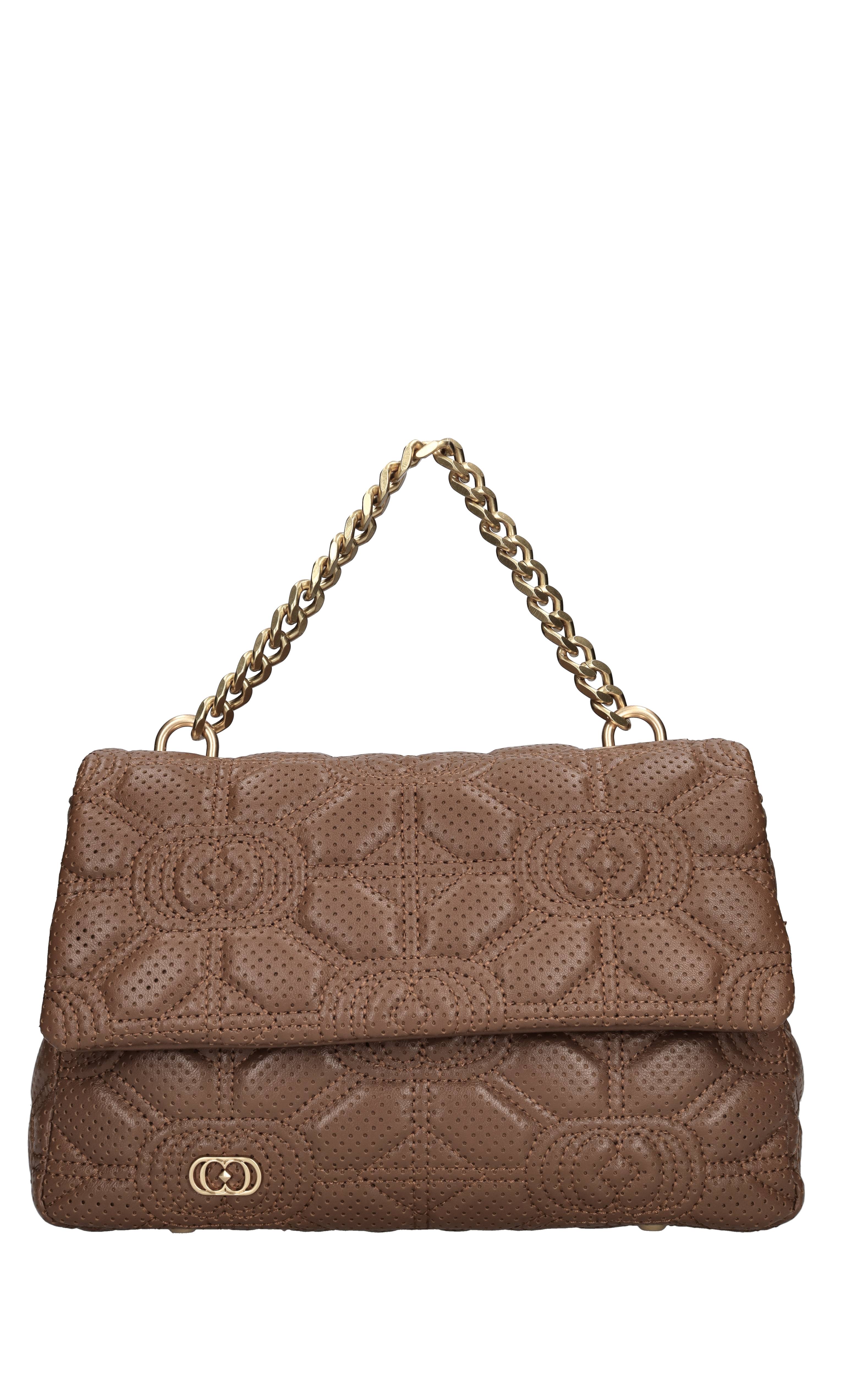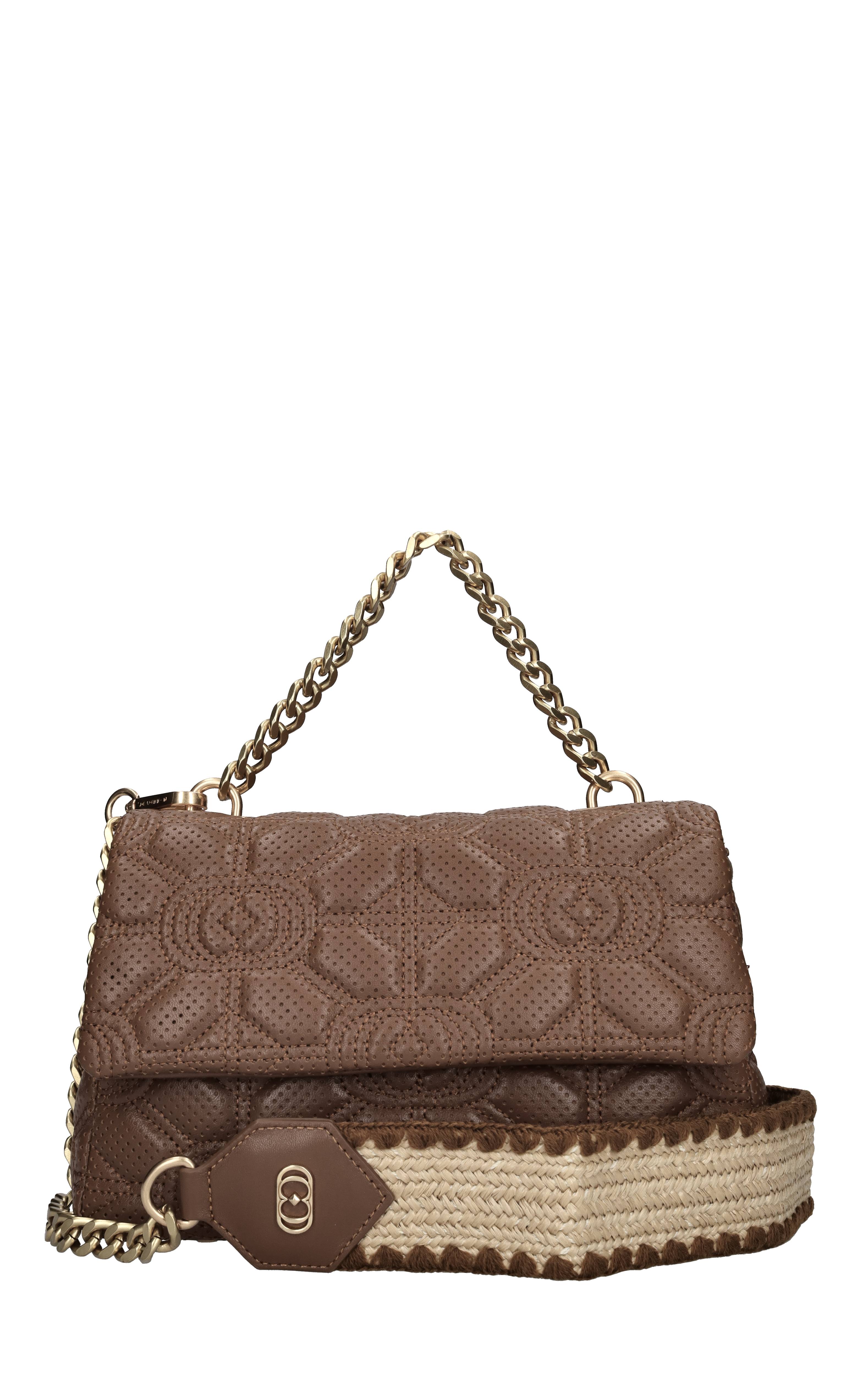 Stich&spoon leather bag. 1 compartment. Flap closure with snap button. Golden chain handle. Golden chain and removable raffia shoulder strap.