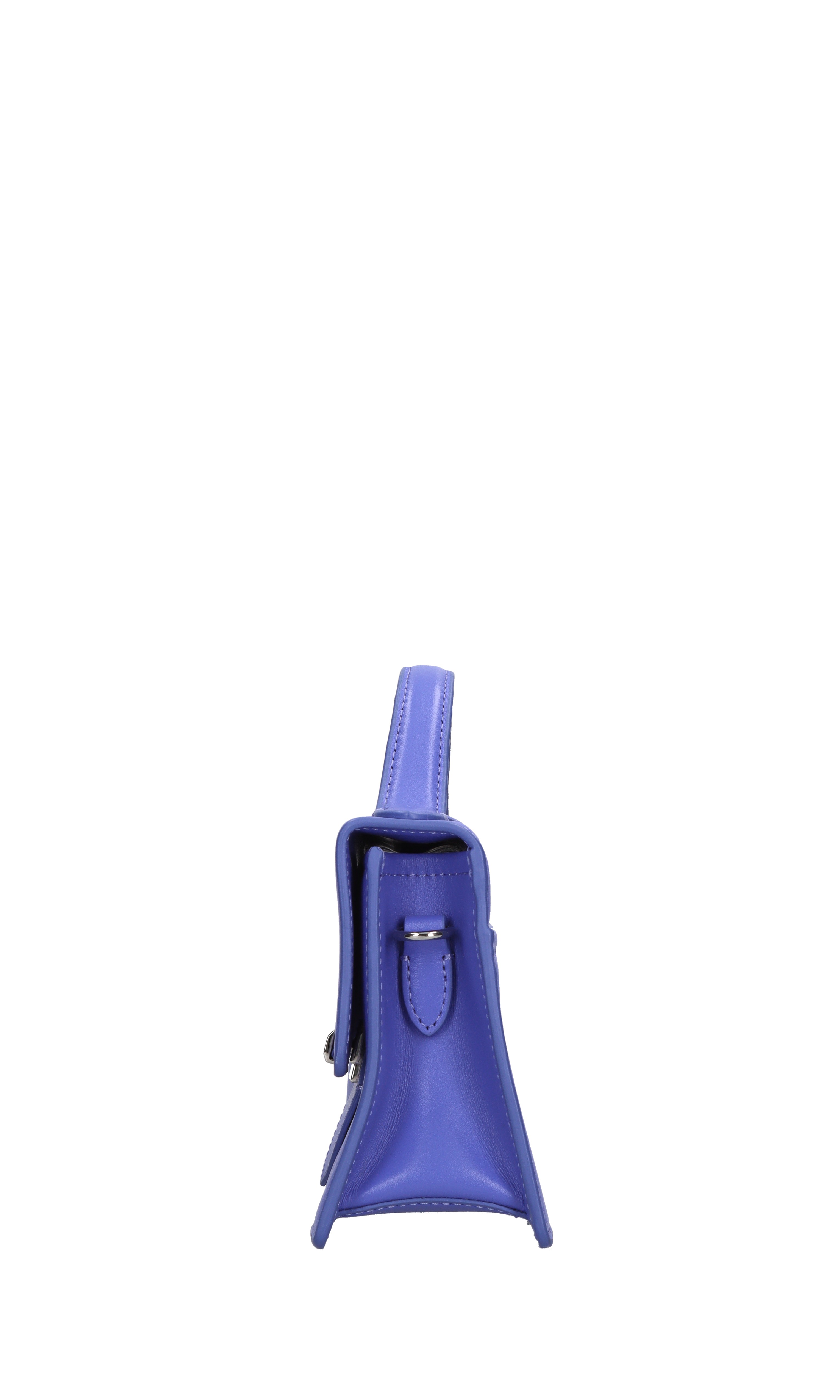 Leather bag. 1 compartment. 1 external pocket. Flap closure with snap button. Adjustable and removable shoulder strap with snap hooks. Imperfections on the bottom.