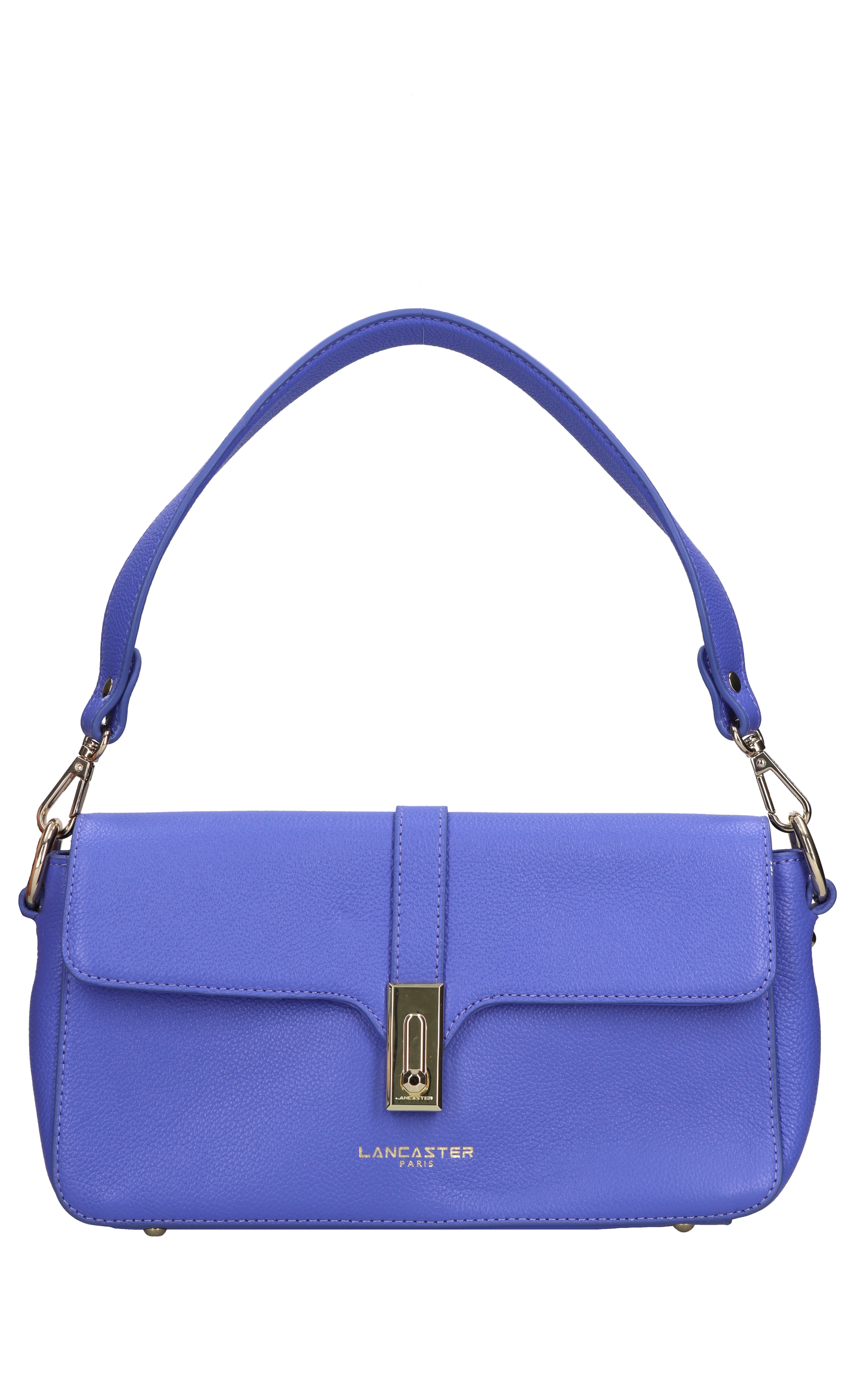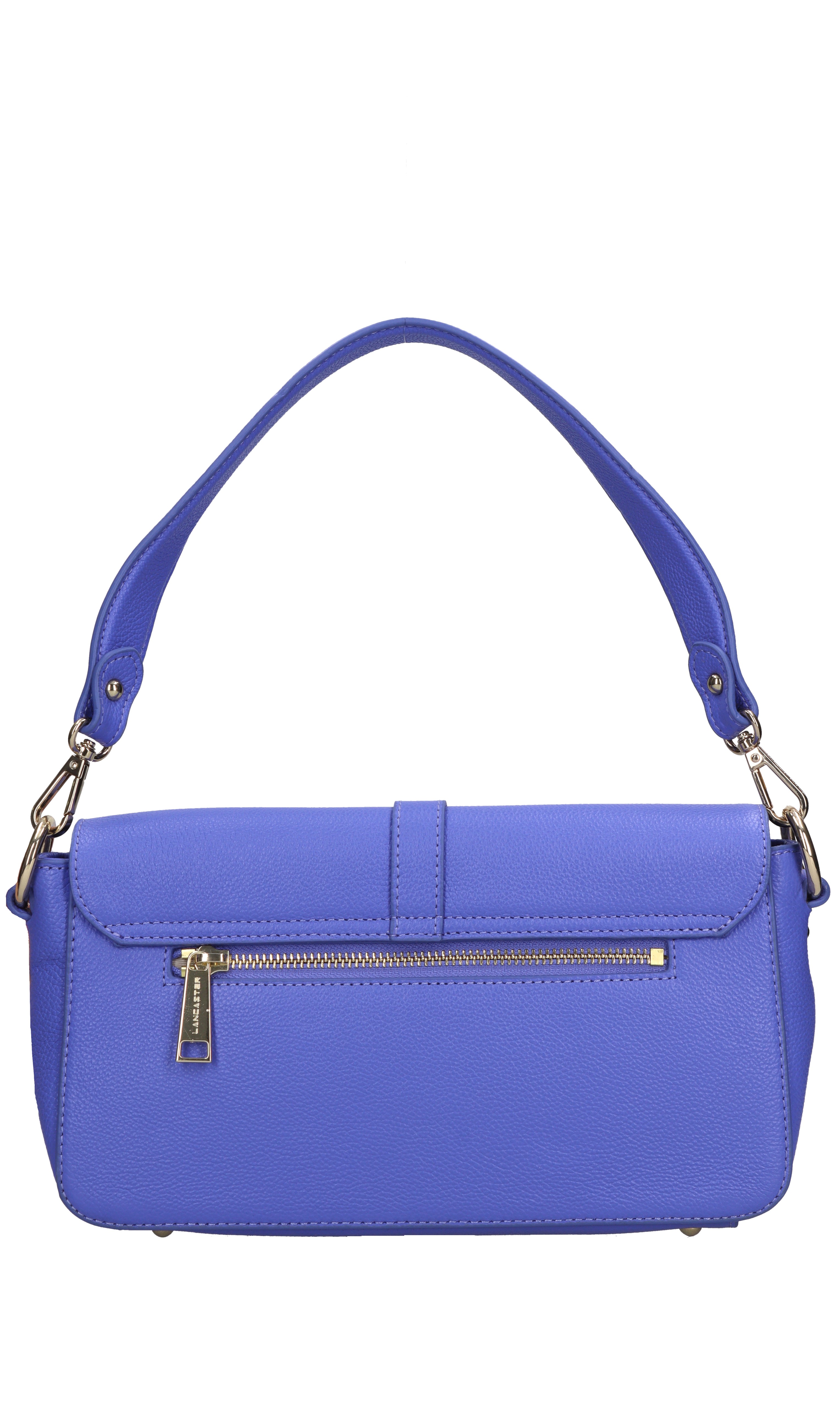 Leather bag. Hammered finish. 1 compartment. 1 external rear pocket. Flap closure with twist lock. Adjustable and removable shoulder strap. Removable handle.