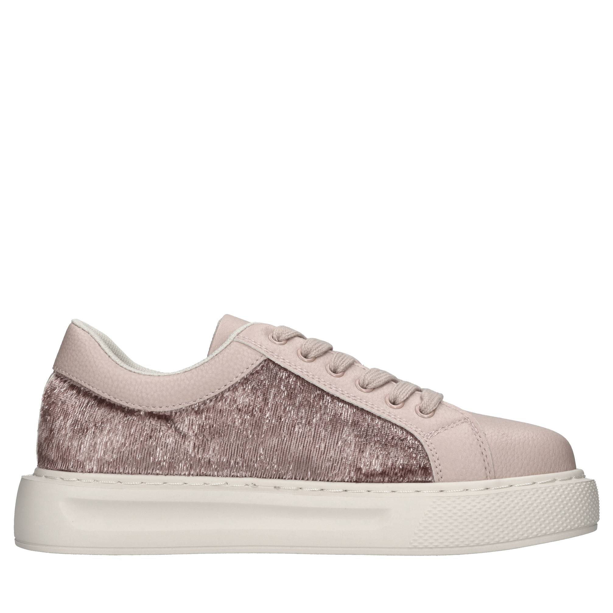 Faux leather and fabric sneakers. Fabric upper. Rubber outsole.