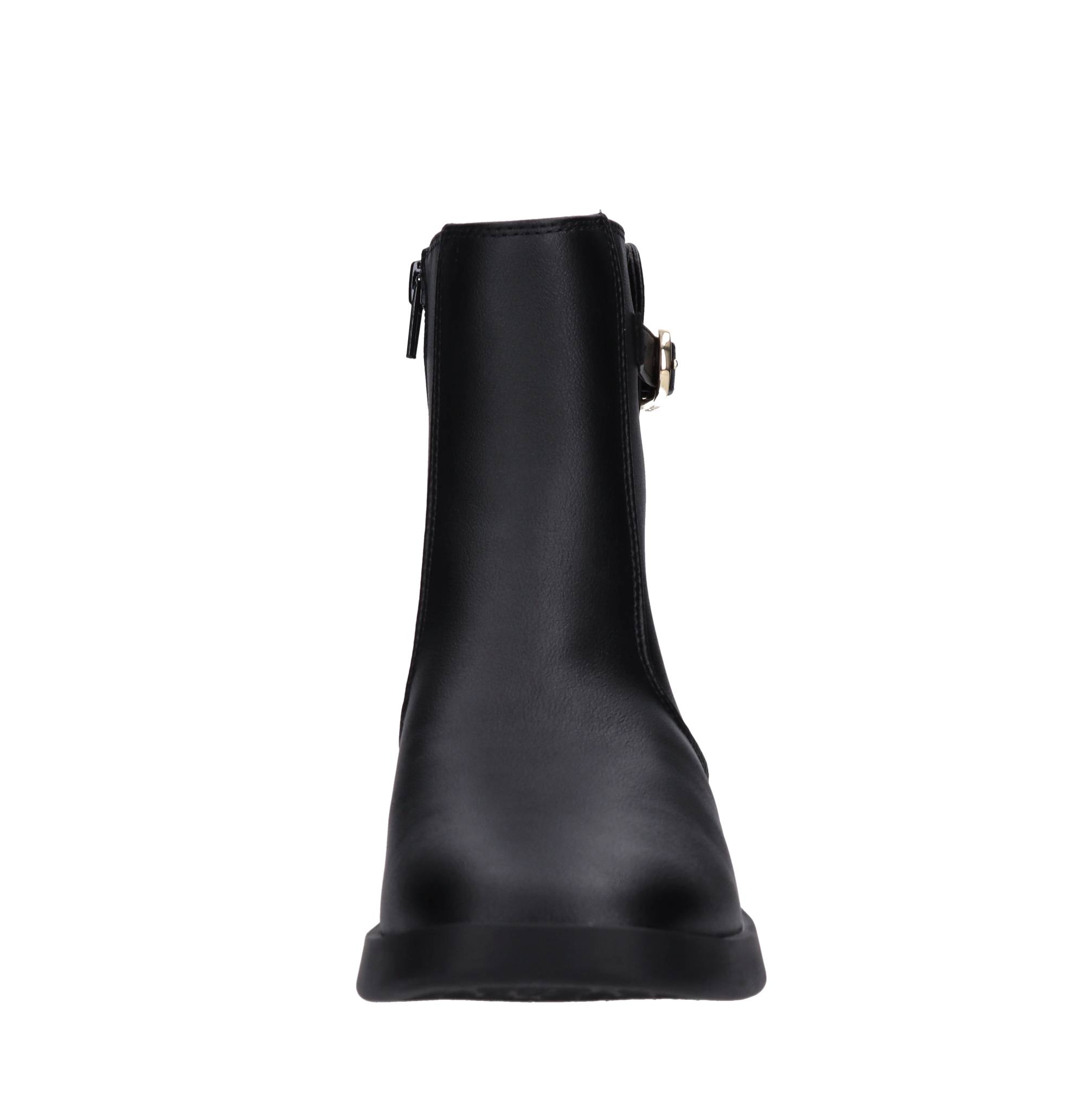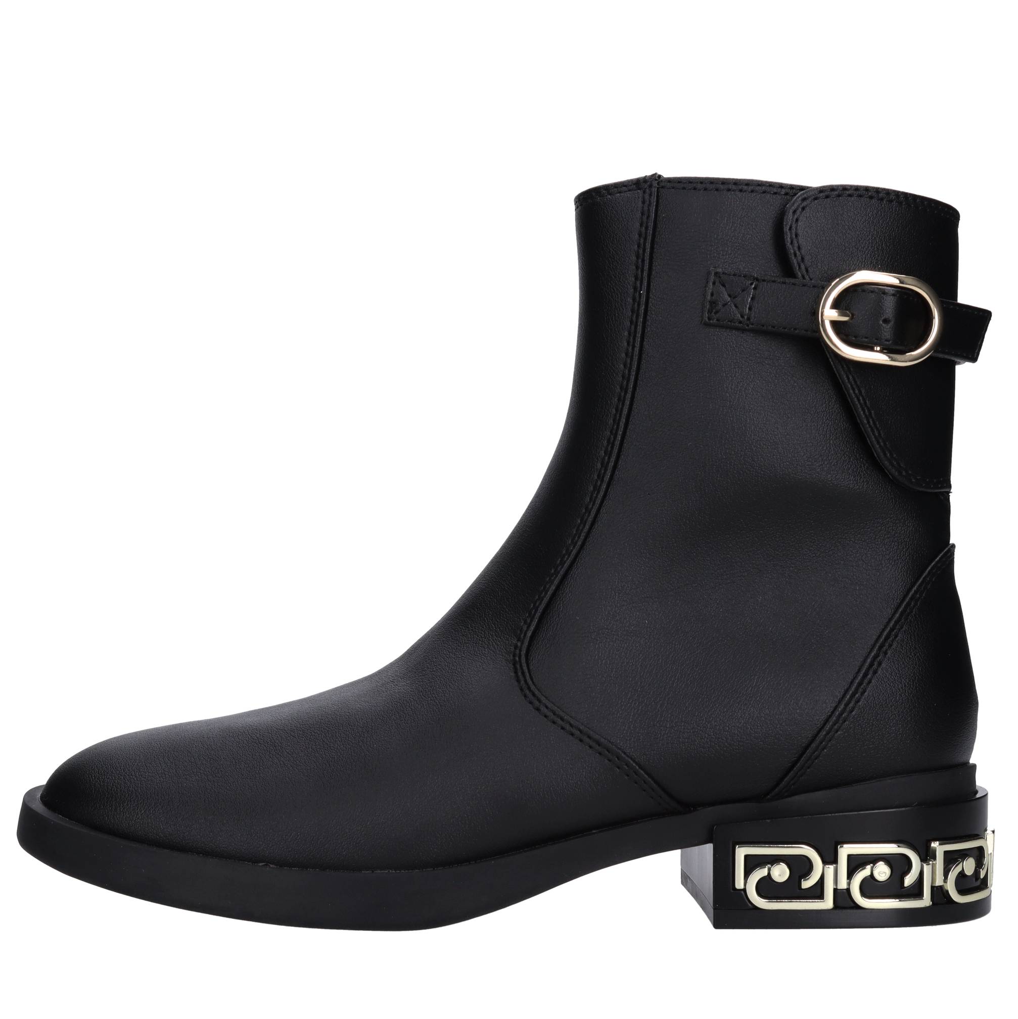 Faux leather ankle boots. Fabric and faux leather upper. Rubber outsole.