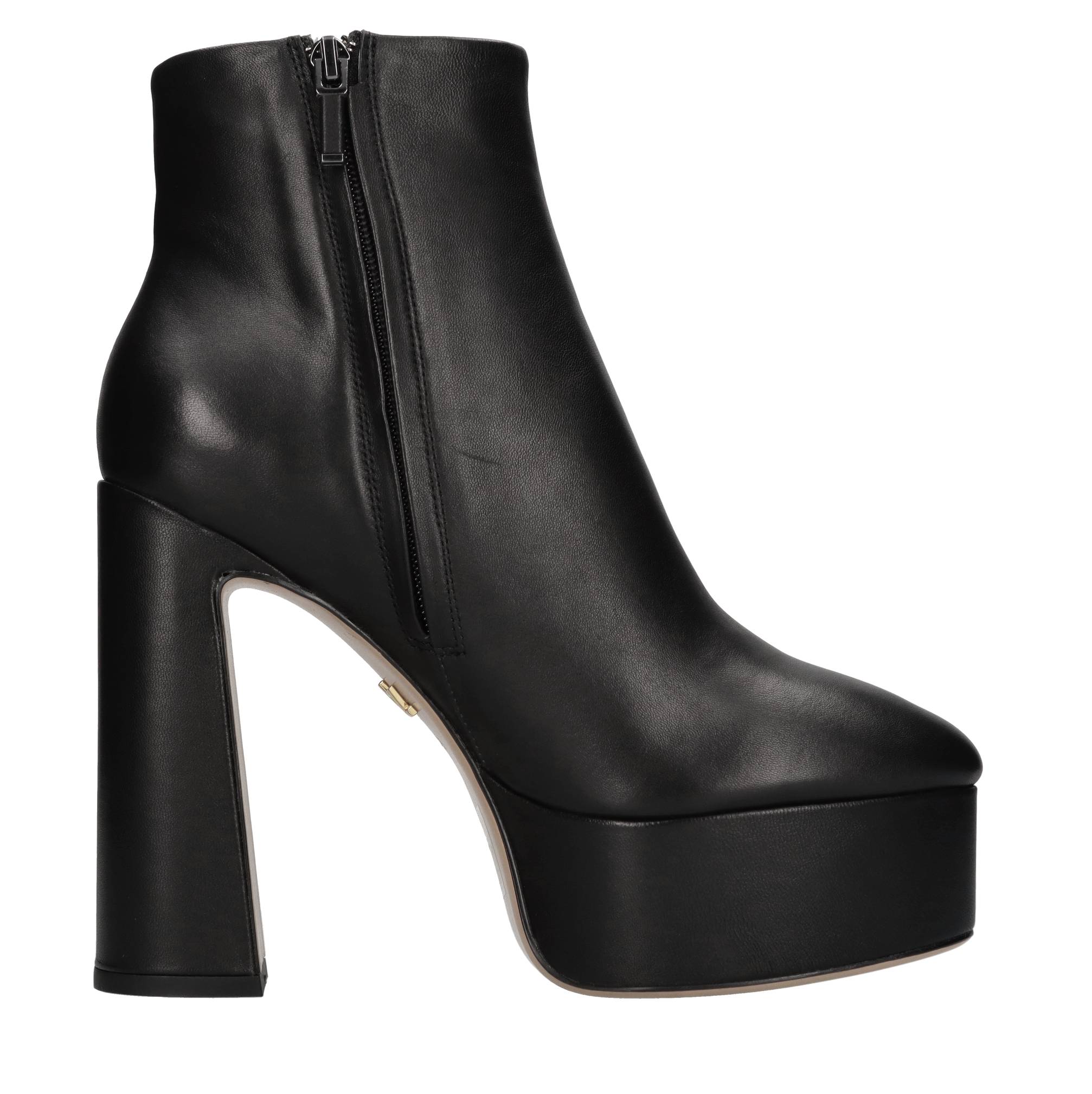 Leather ankle boots. Leather inner upper. Rubber outer sole. Internal side zip. Platform: 4.5 cm.