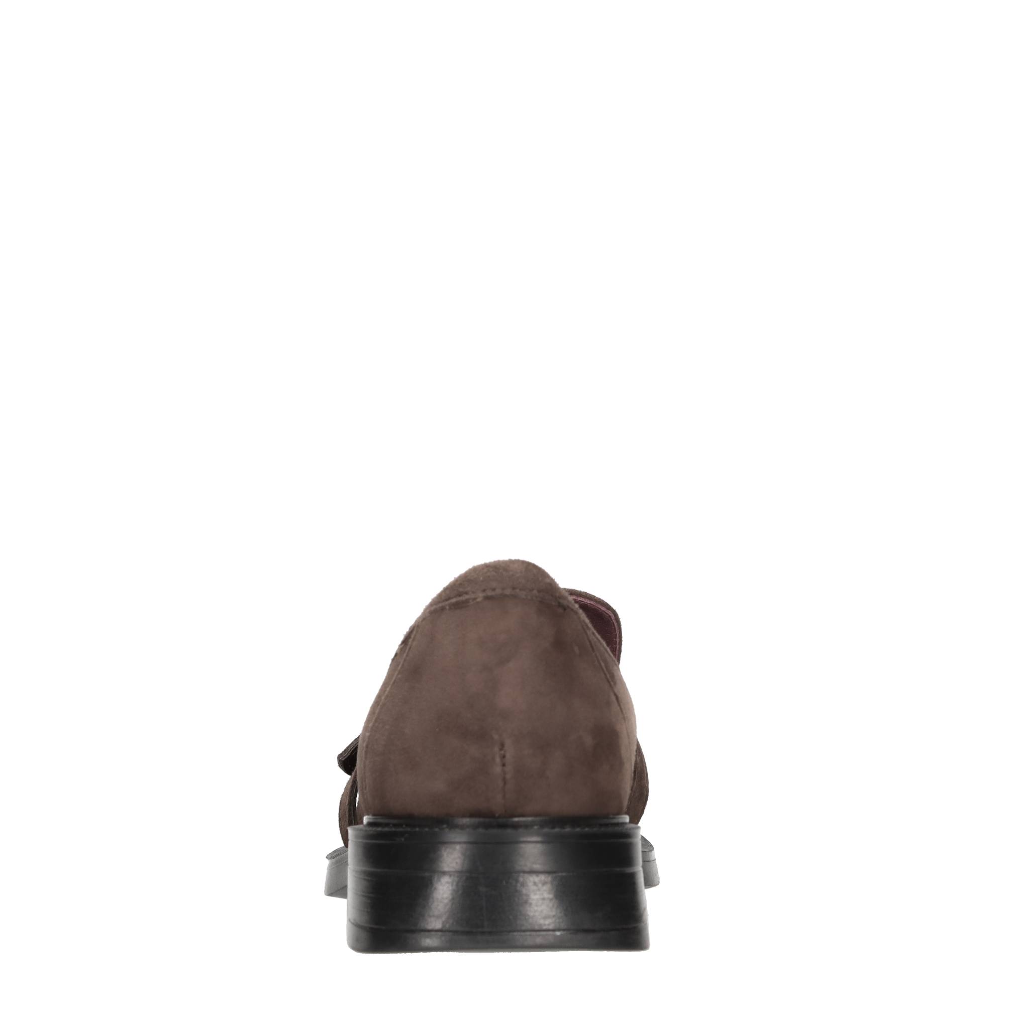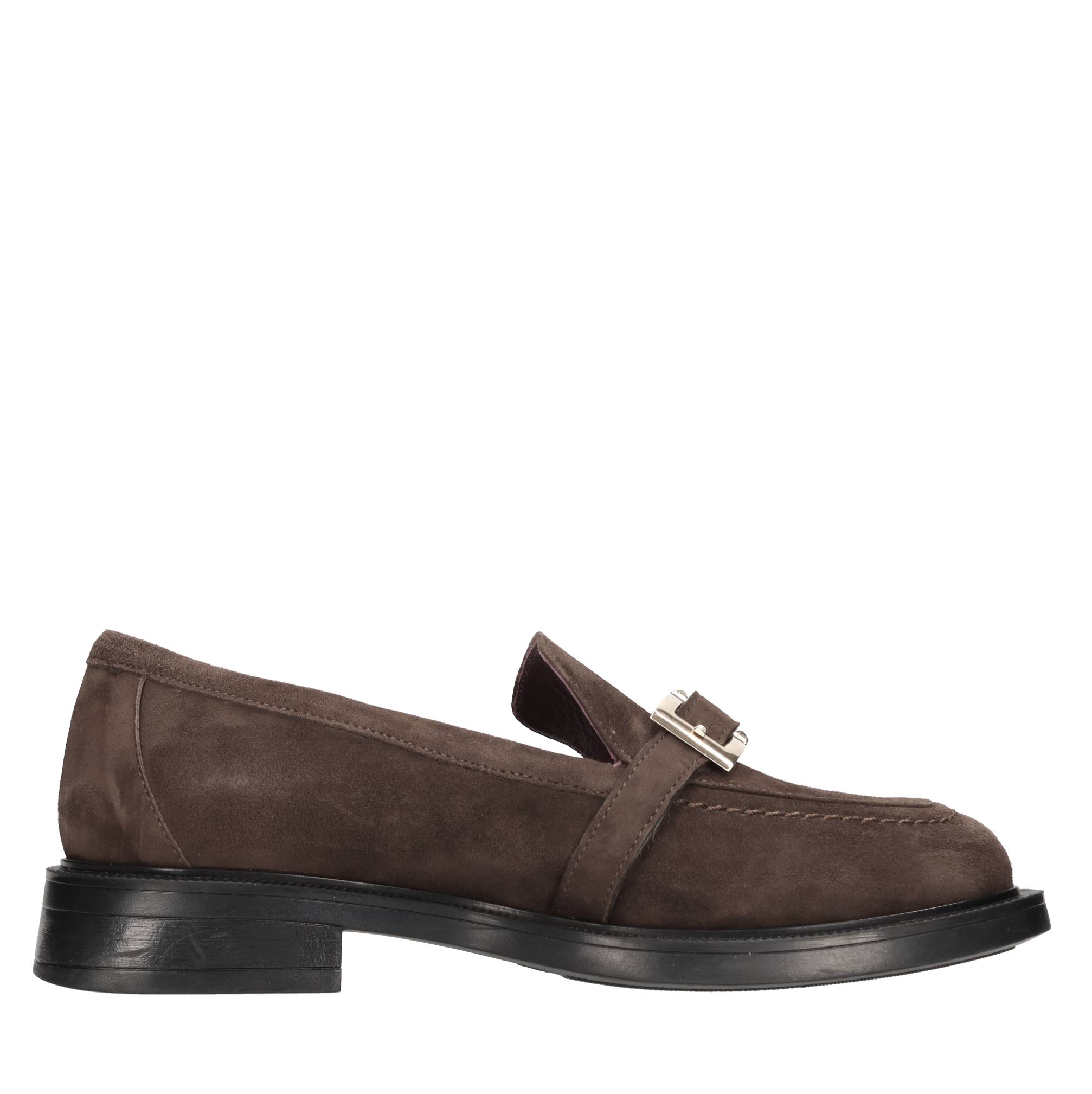 Suede moccasins. Inner upper in leather. Outer sole in rubber.