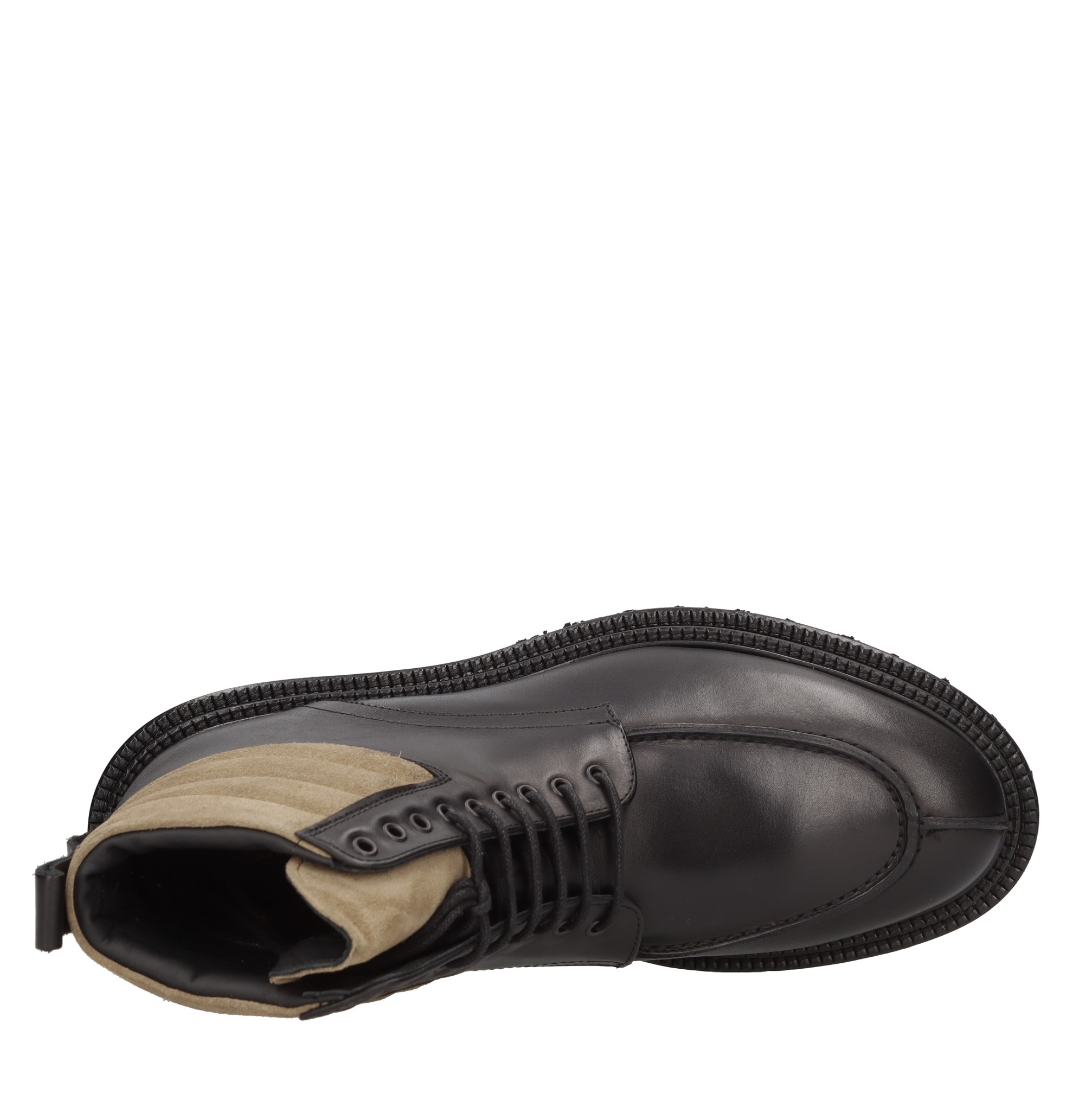 Leather ankle boots. Internal leather upper. Rubber outer sole.