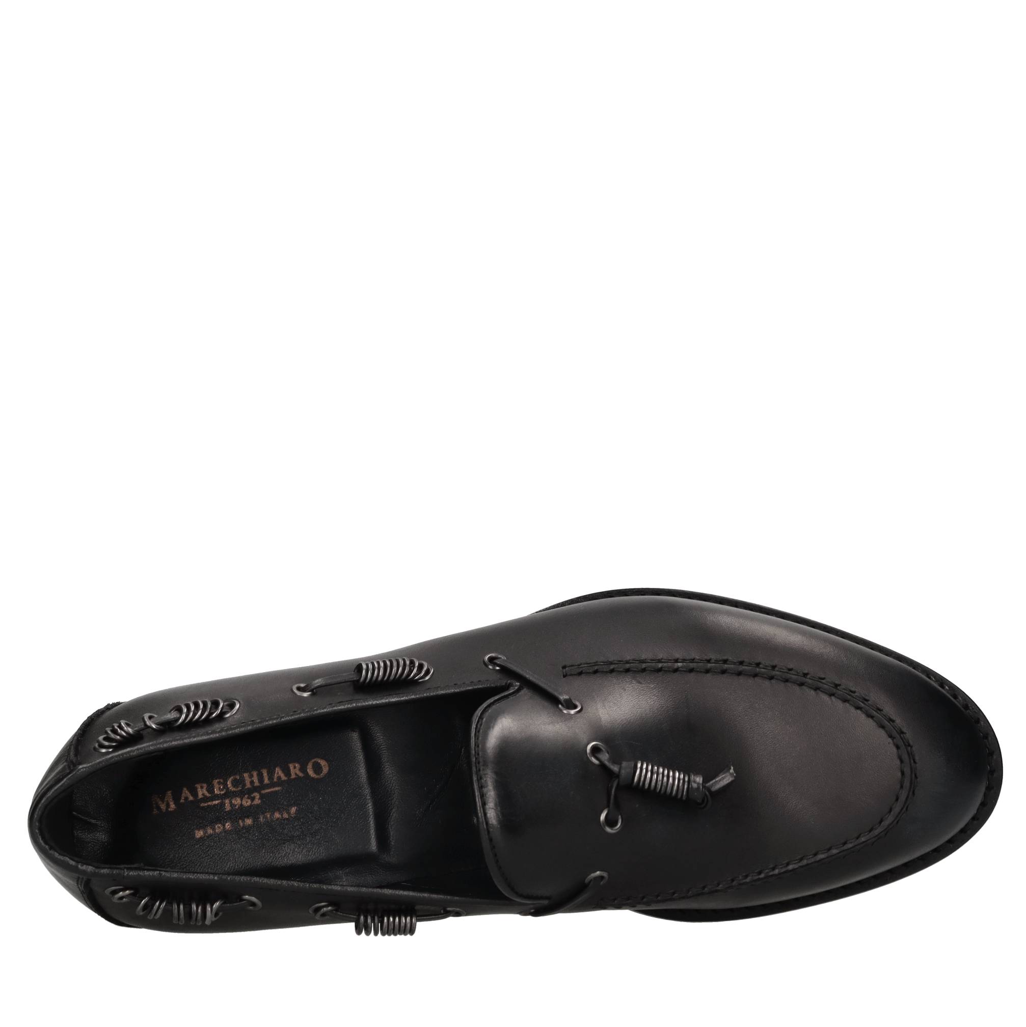 Leather loafers. Leather inner upper. Rubber and leather outer sole.