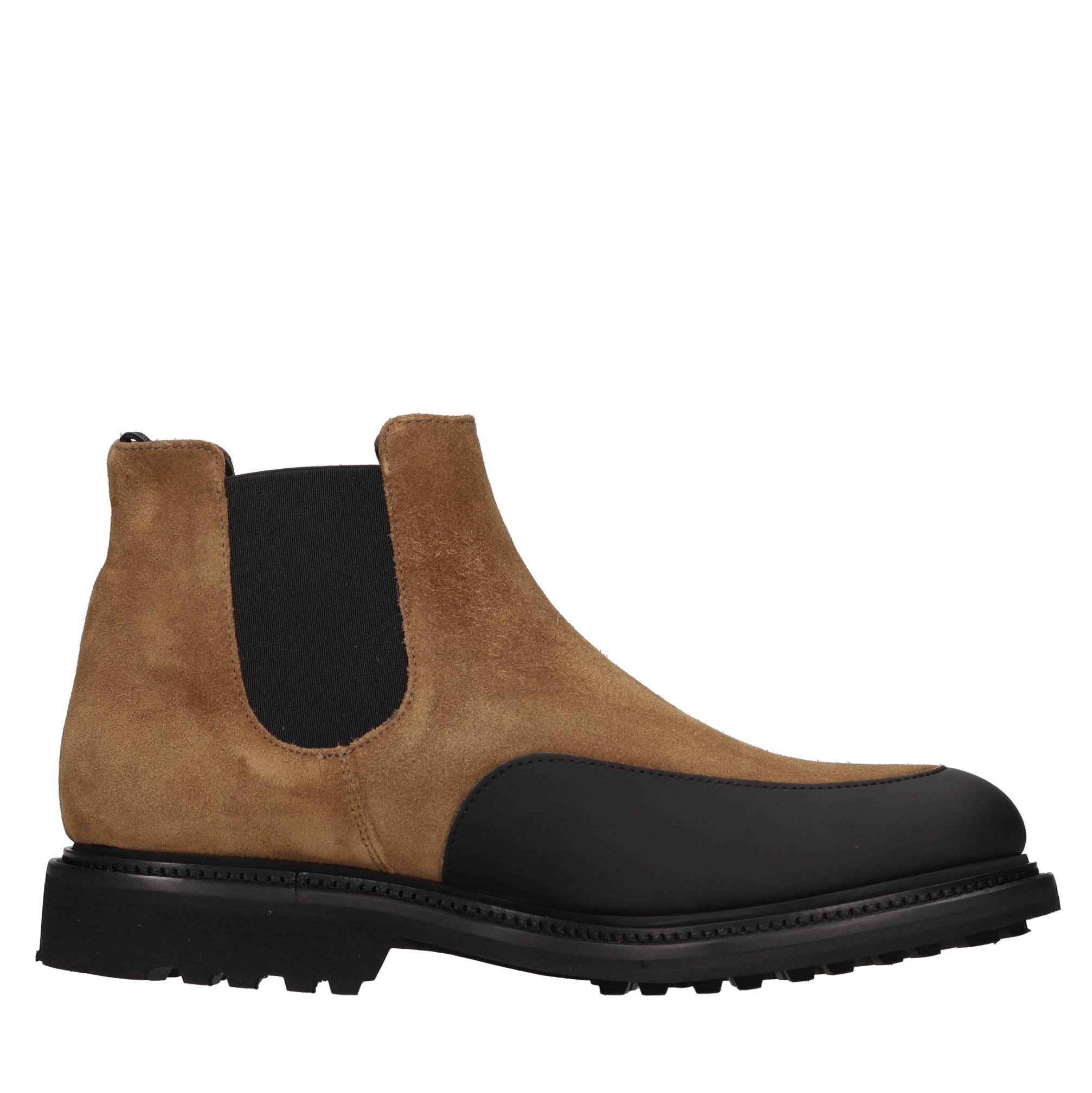 Suede and rubber Beatles boots. Side elastics. Rubber outsole. Leather and fabric inner upper.