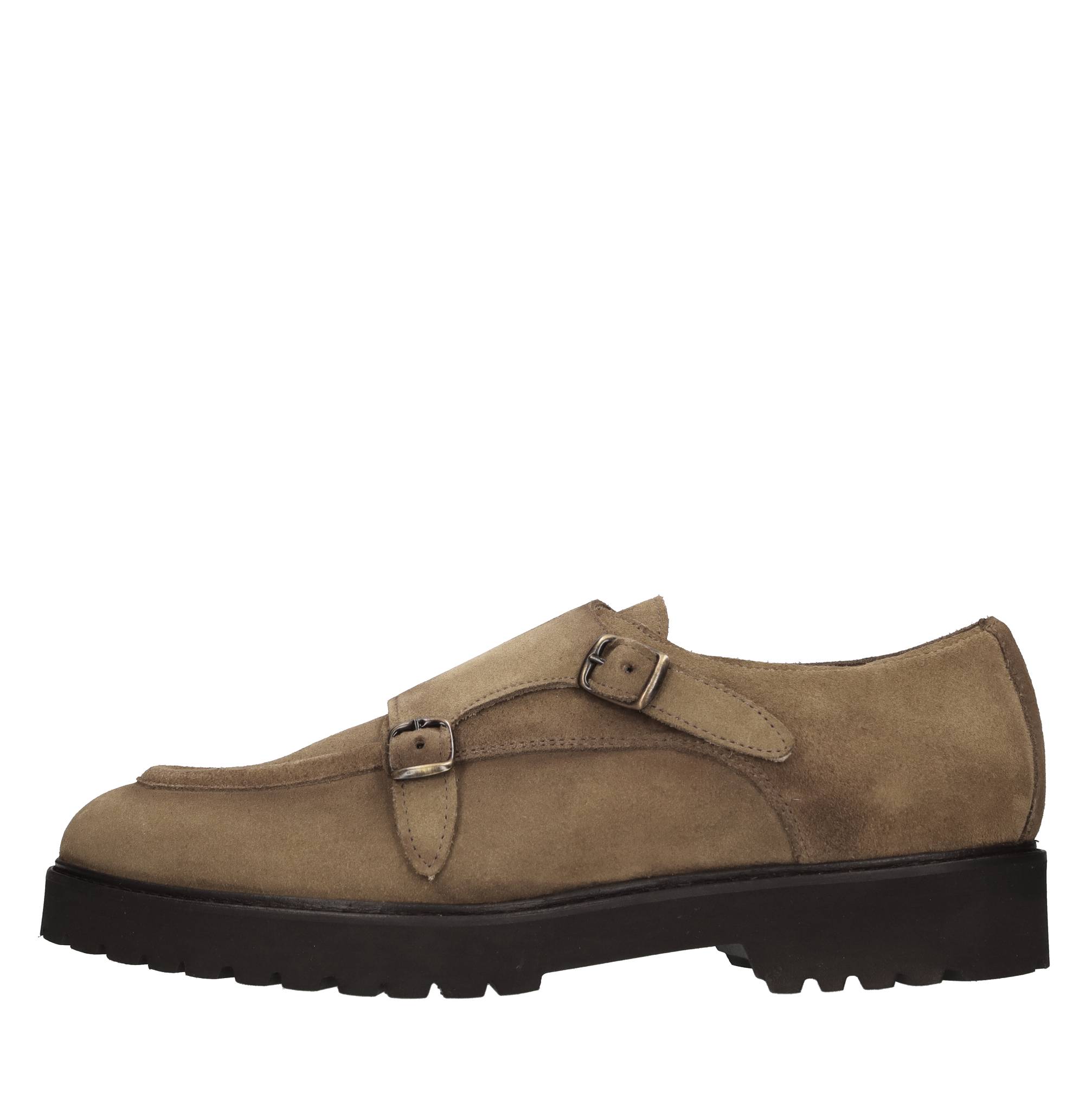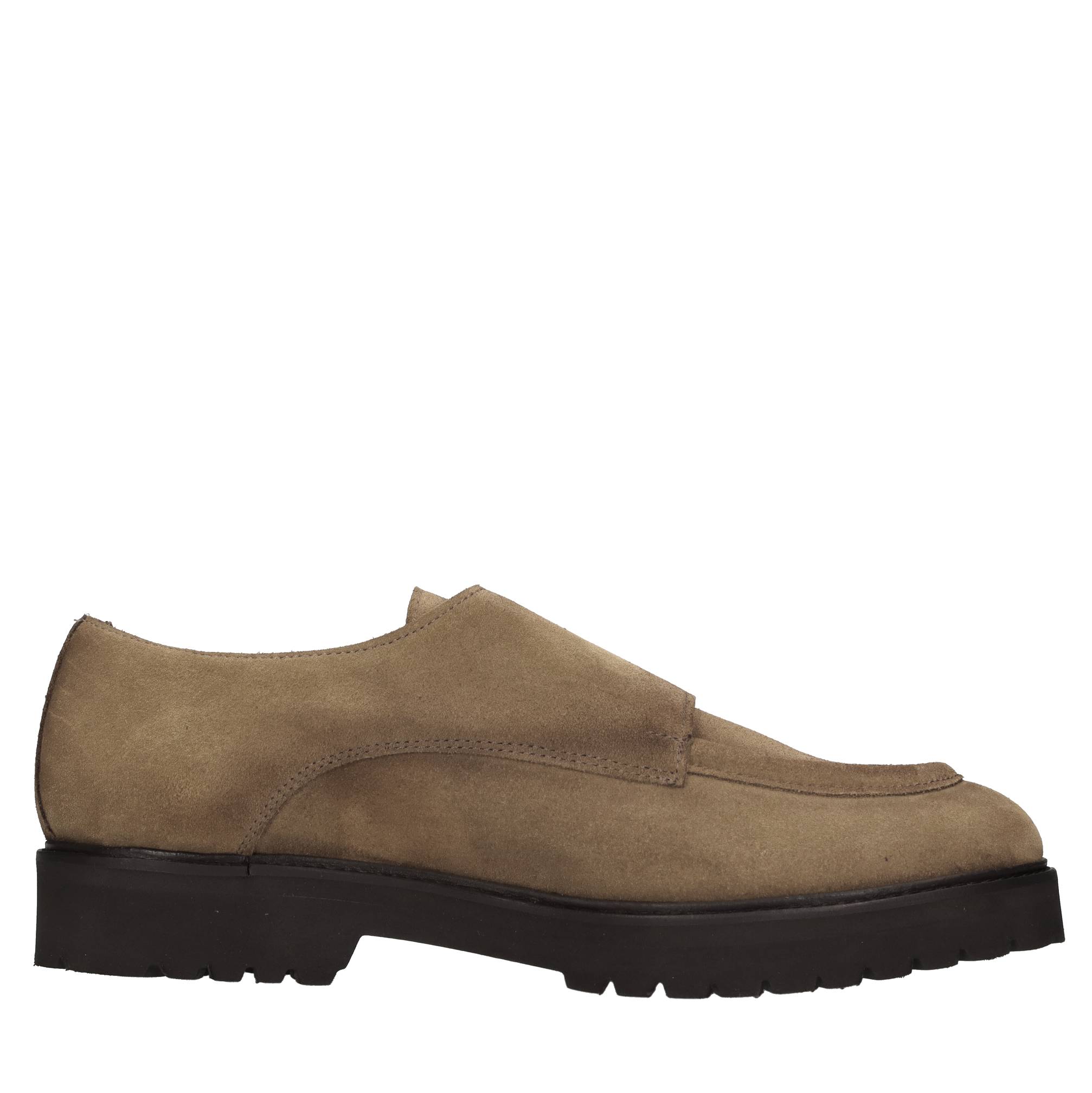 Suede loafers. Double buckle. Leather inner upper. Rubber outer sole.