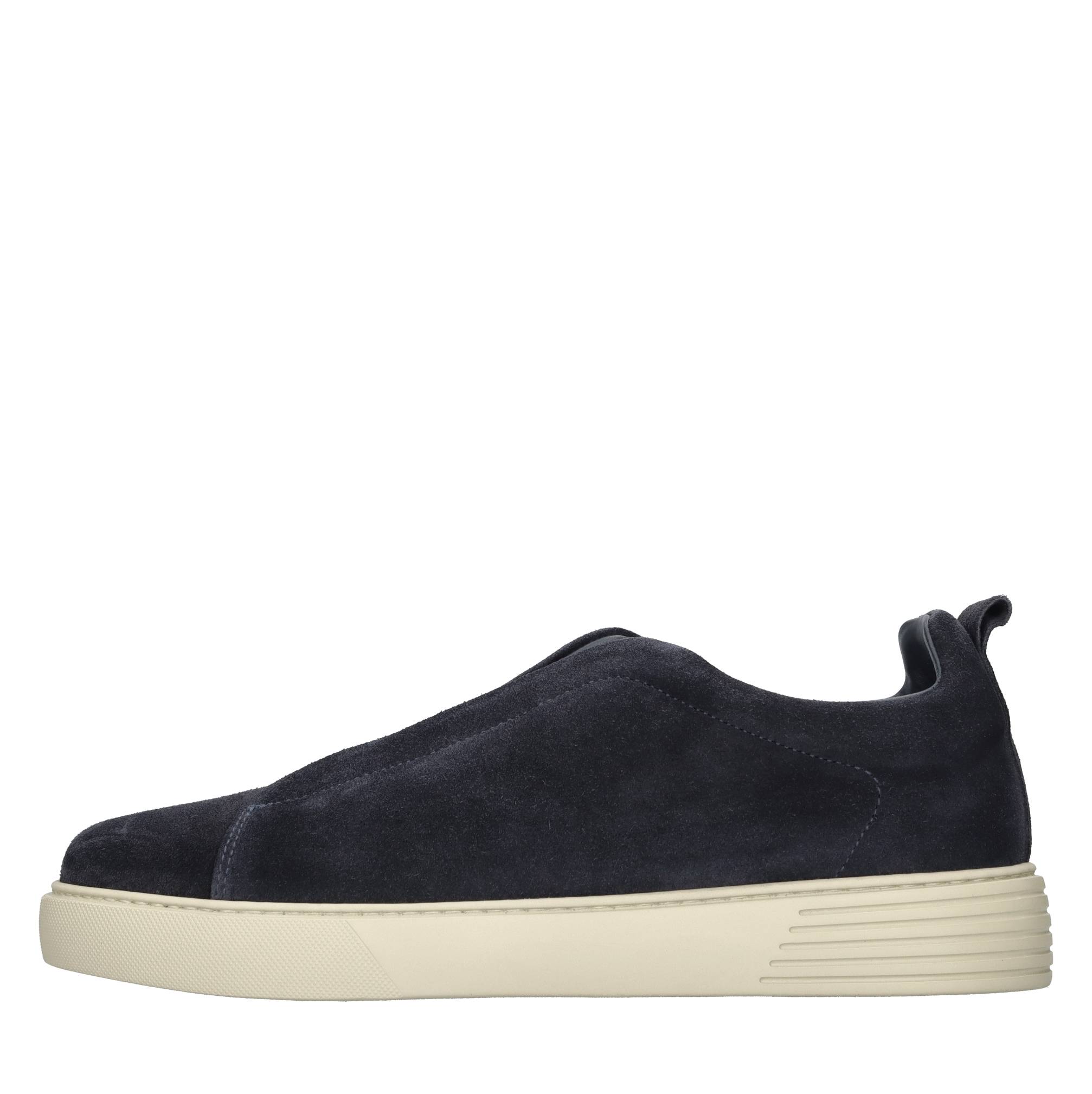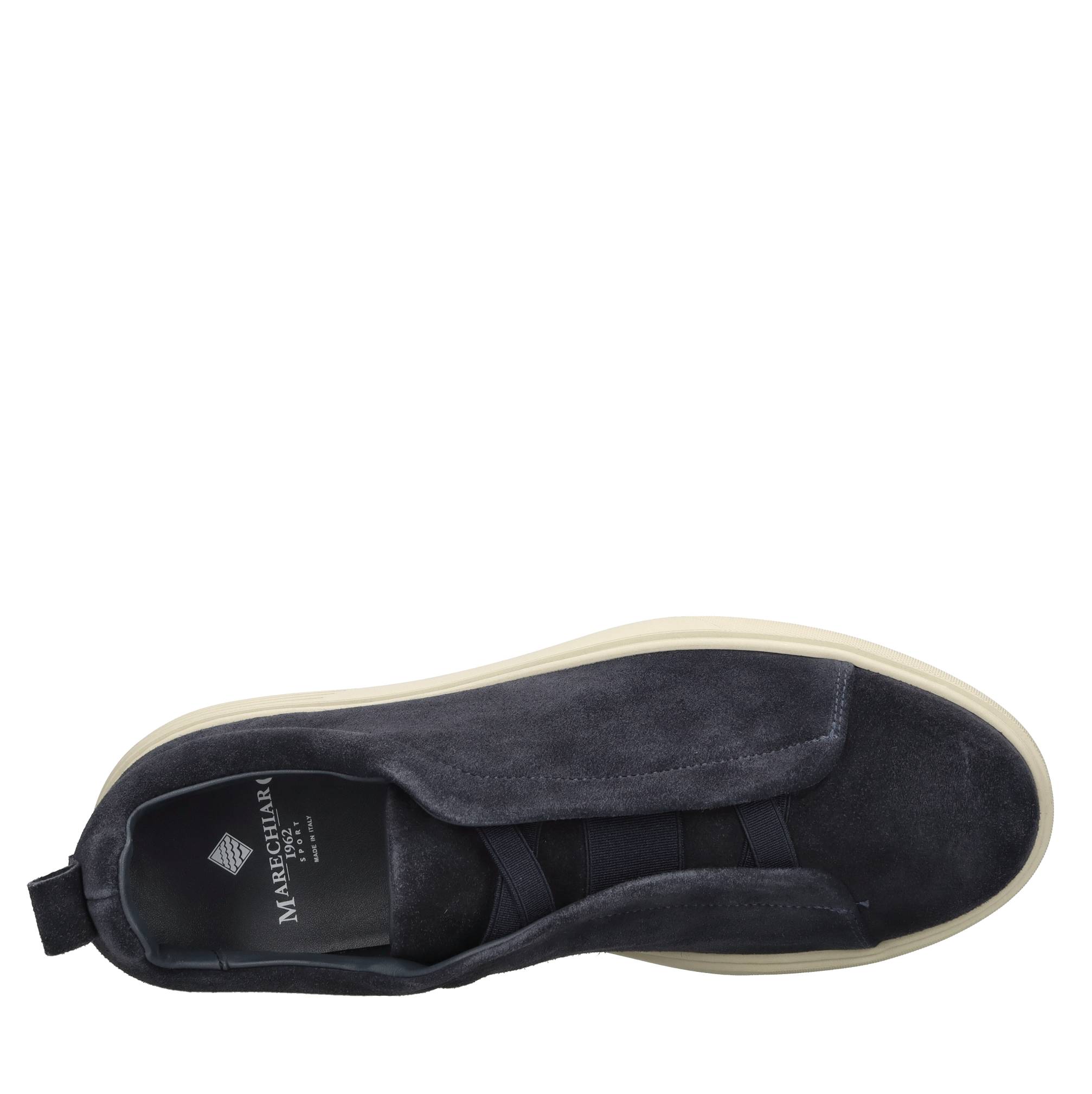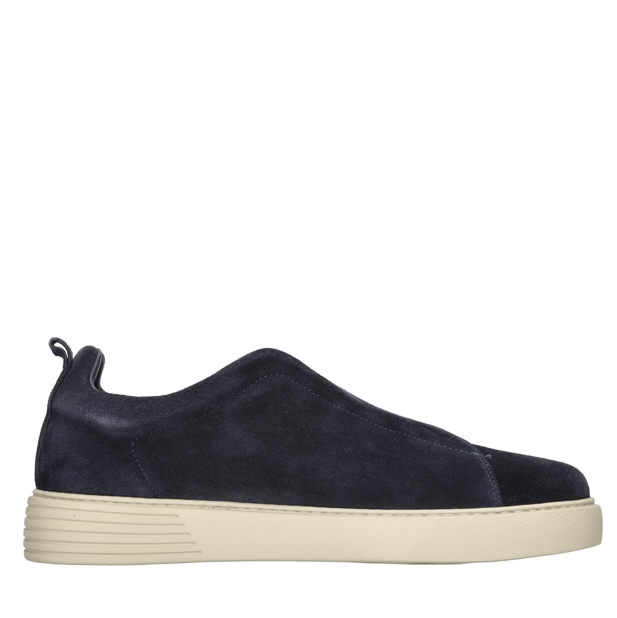 Suede trainers. Leather inner upper. Rubber outer sole. Elasticated fastening.
