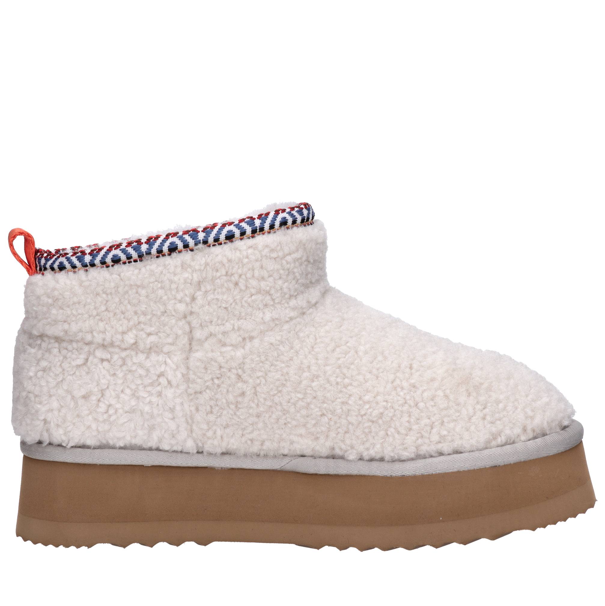 Suede ankle boots. Faux fur upper. Rubber outsole.