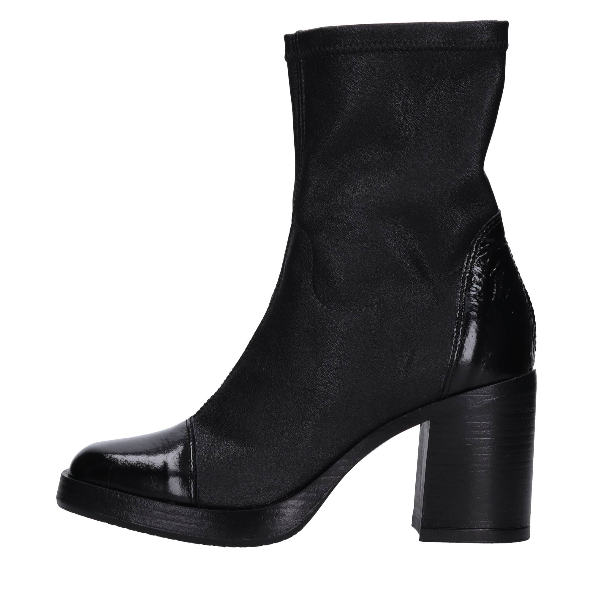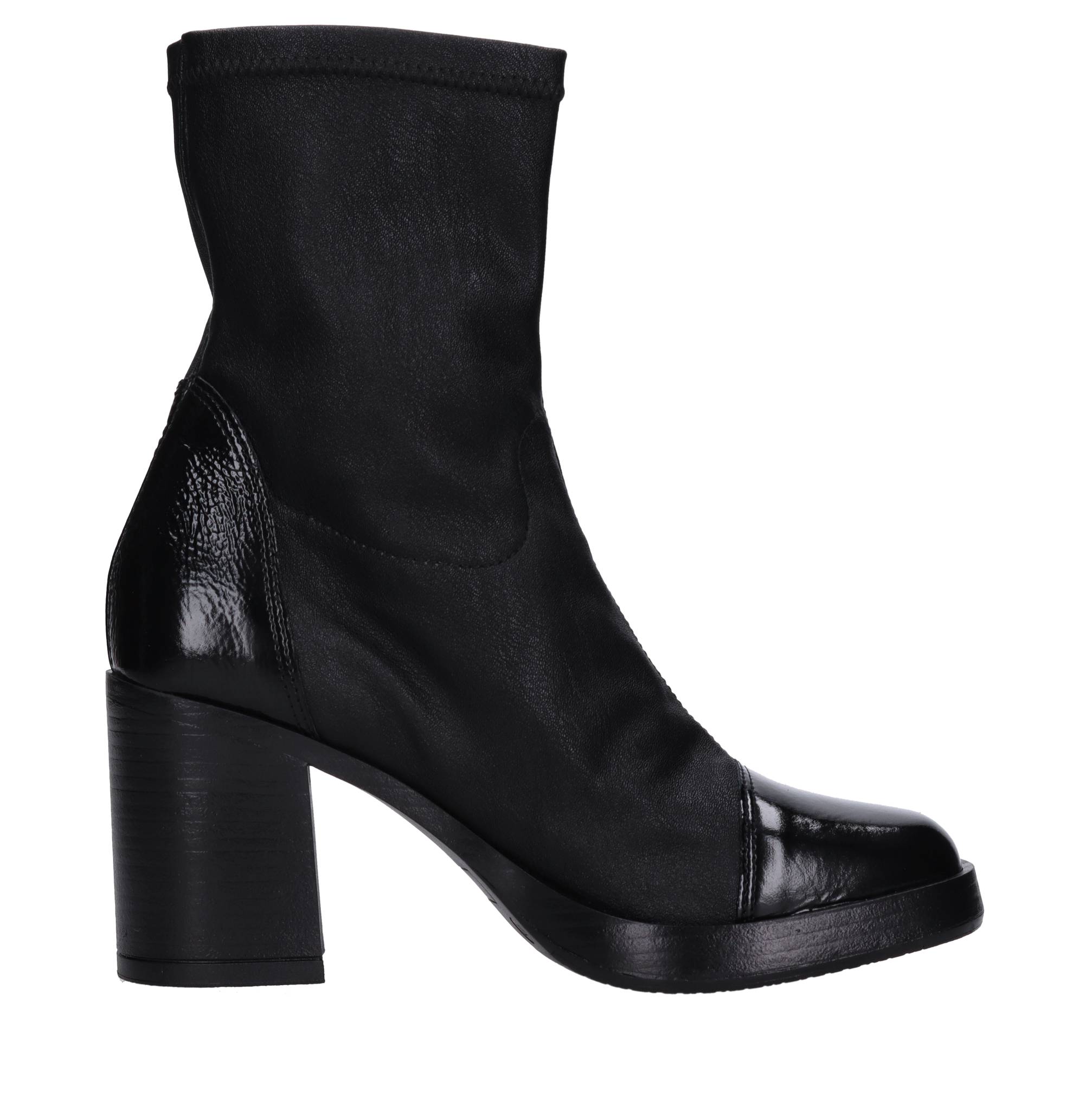 Leather ankle boots. Fabric upper. Rubber outsole.