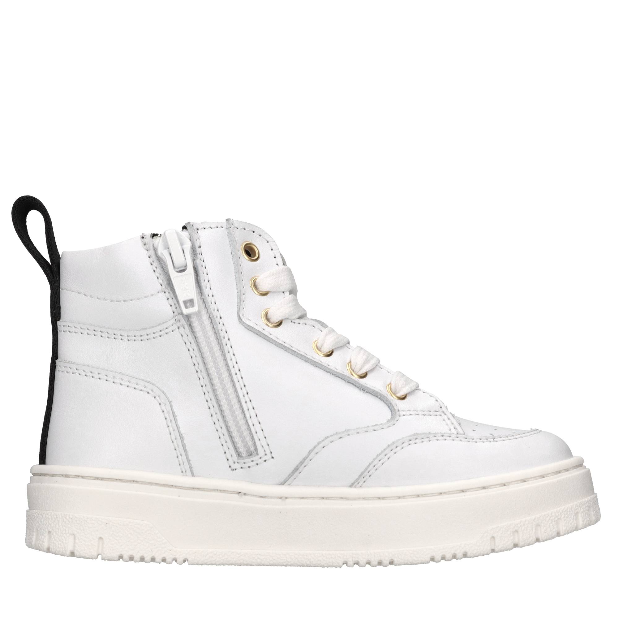 High-top leather sneakers. Gold-tone details. Leather upper. Rubber outsole.