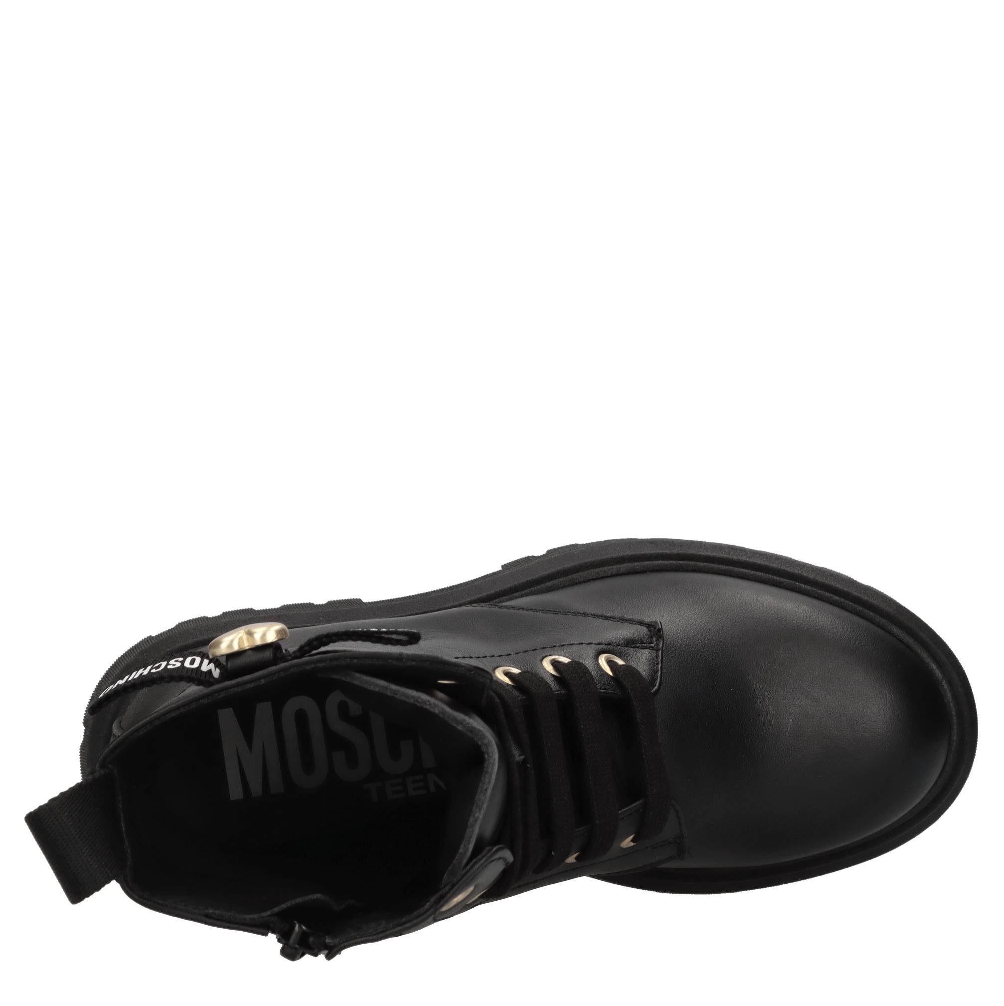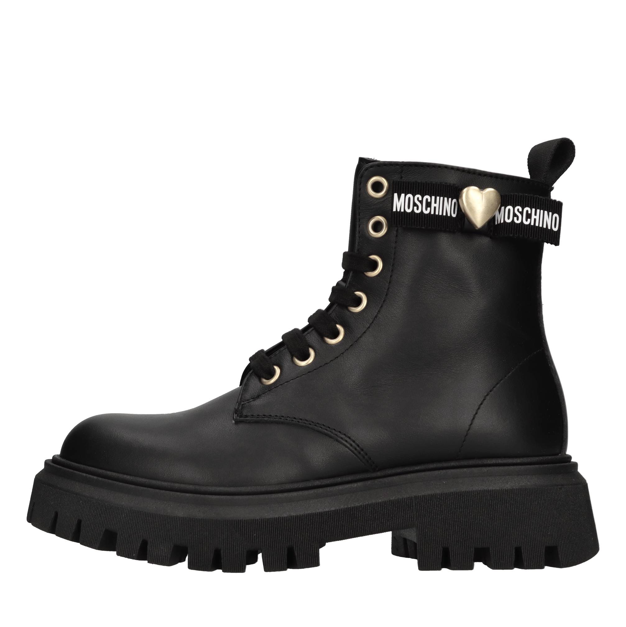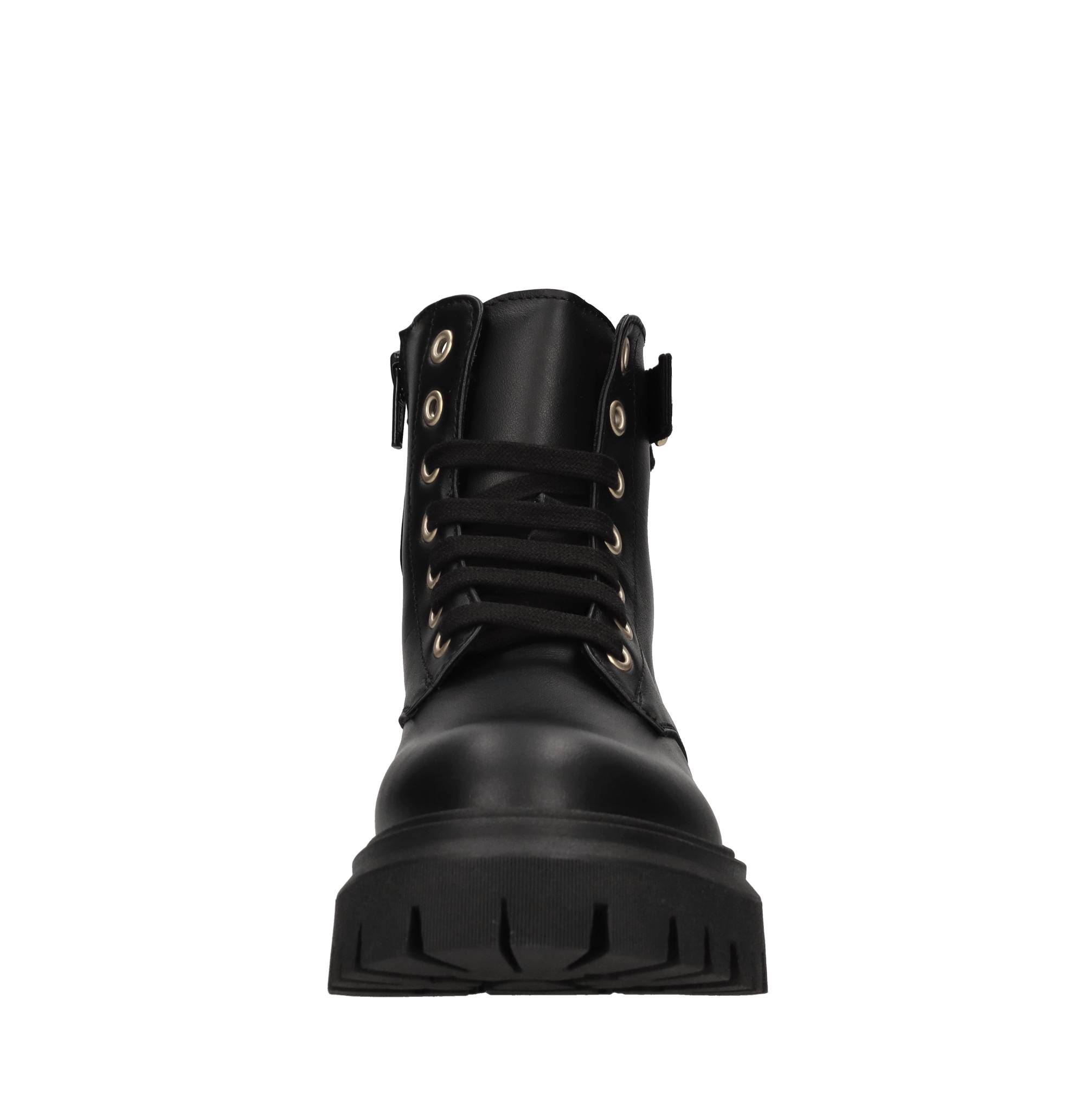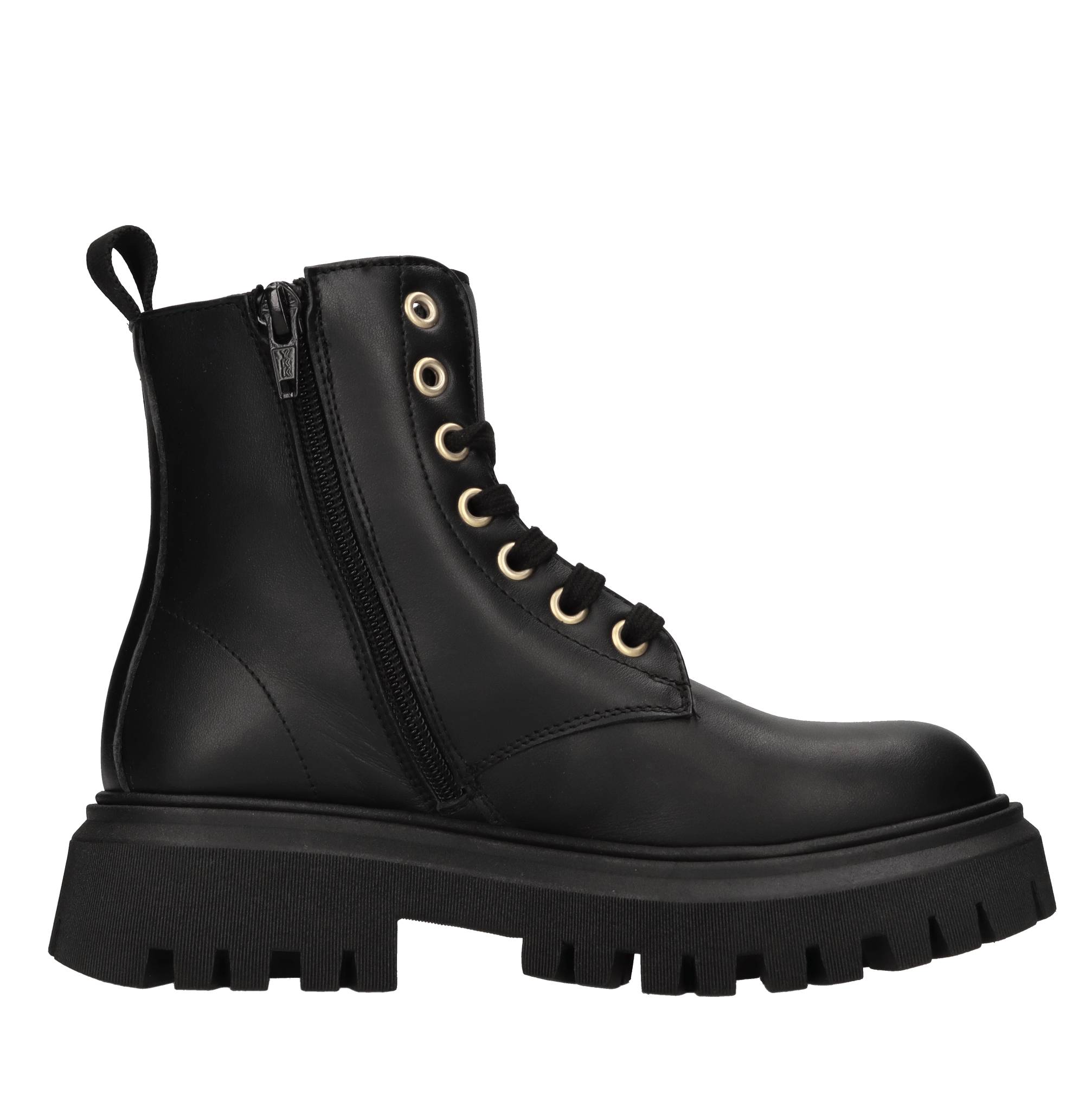 Leather ankle boots. Gold-colored details. Leather upper. Rubber outsole.