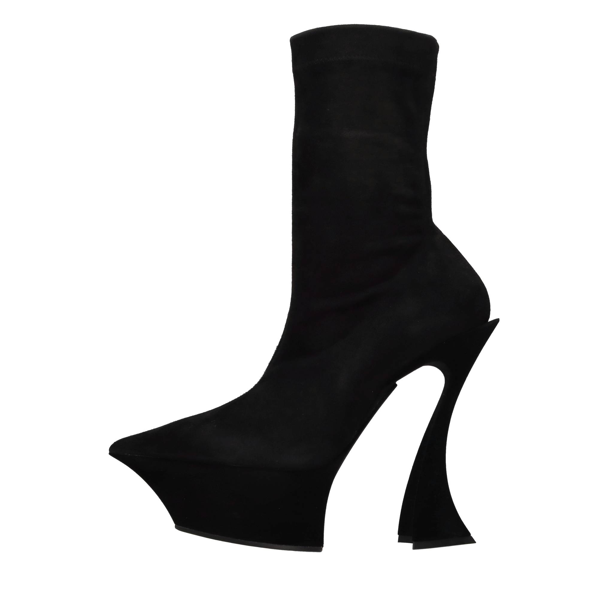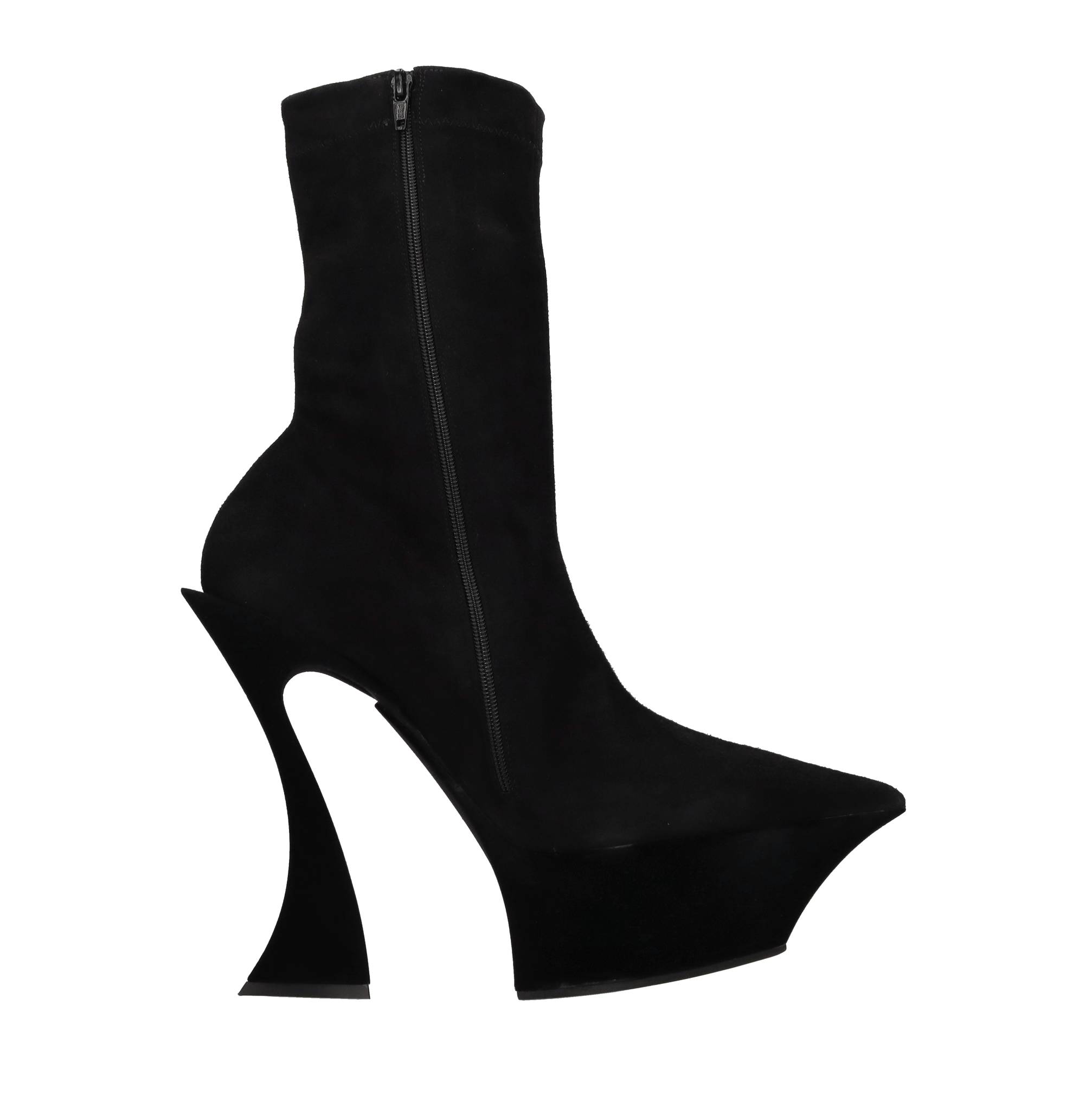 Suede ankle boots. Leather and fabric inner upper. Rubber and leather outer sole. Platform: 5.5 cm. Minor imperfections on the inner fabric. Sample. Internal side zip. Shipped in a plain box.