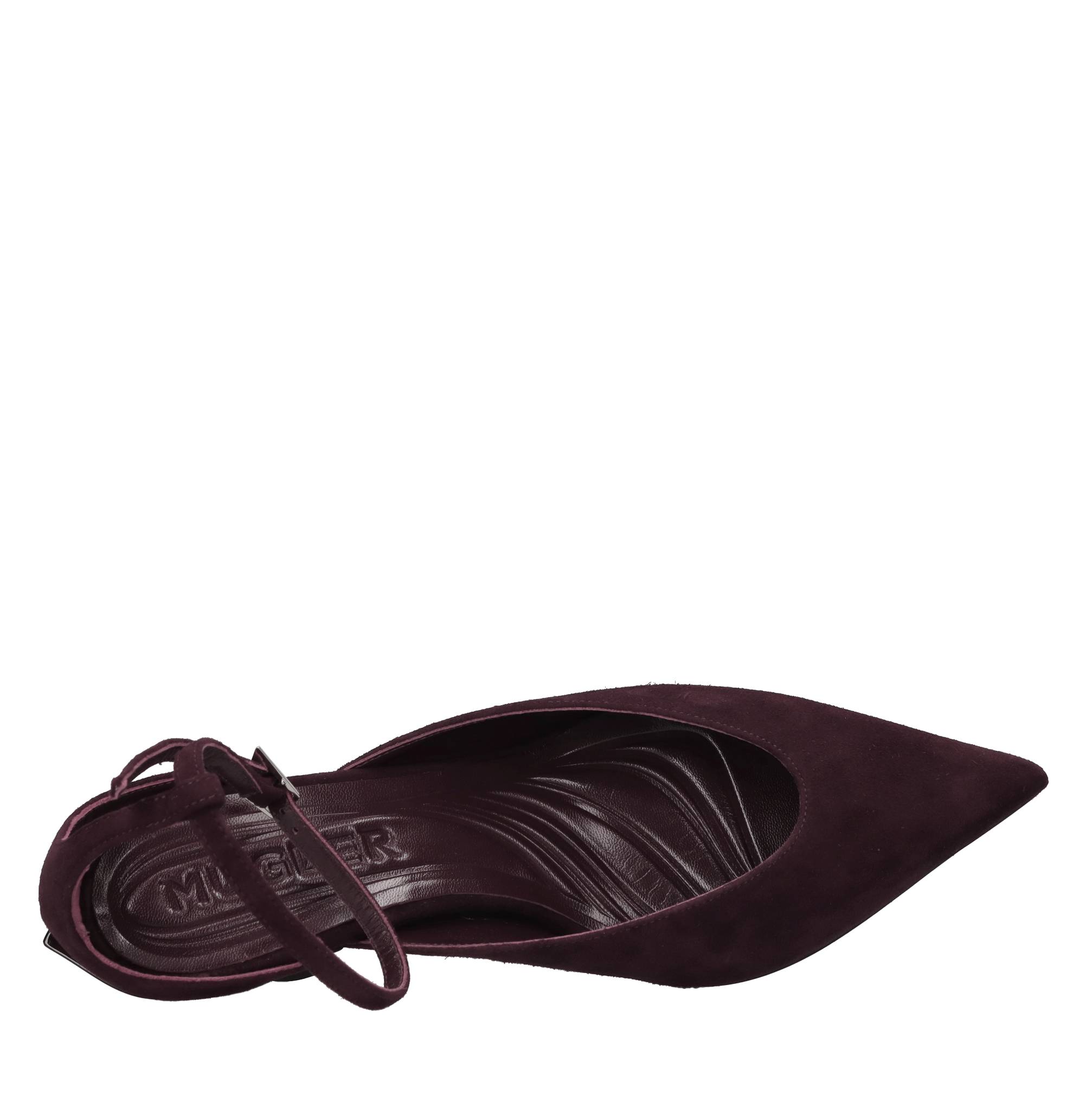 Suede pumps. Leather inner upper. Leather and rubber sole.
