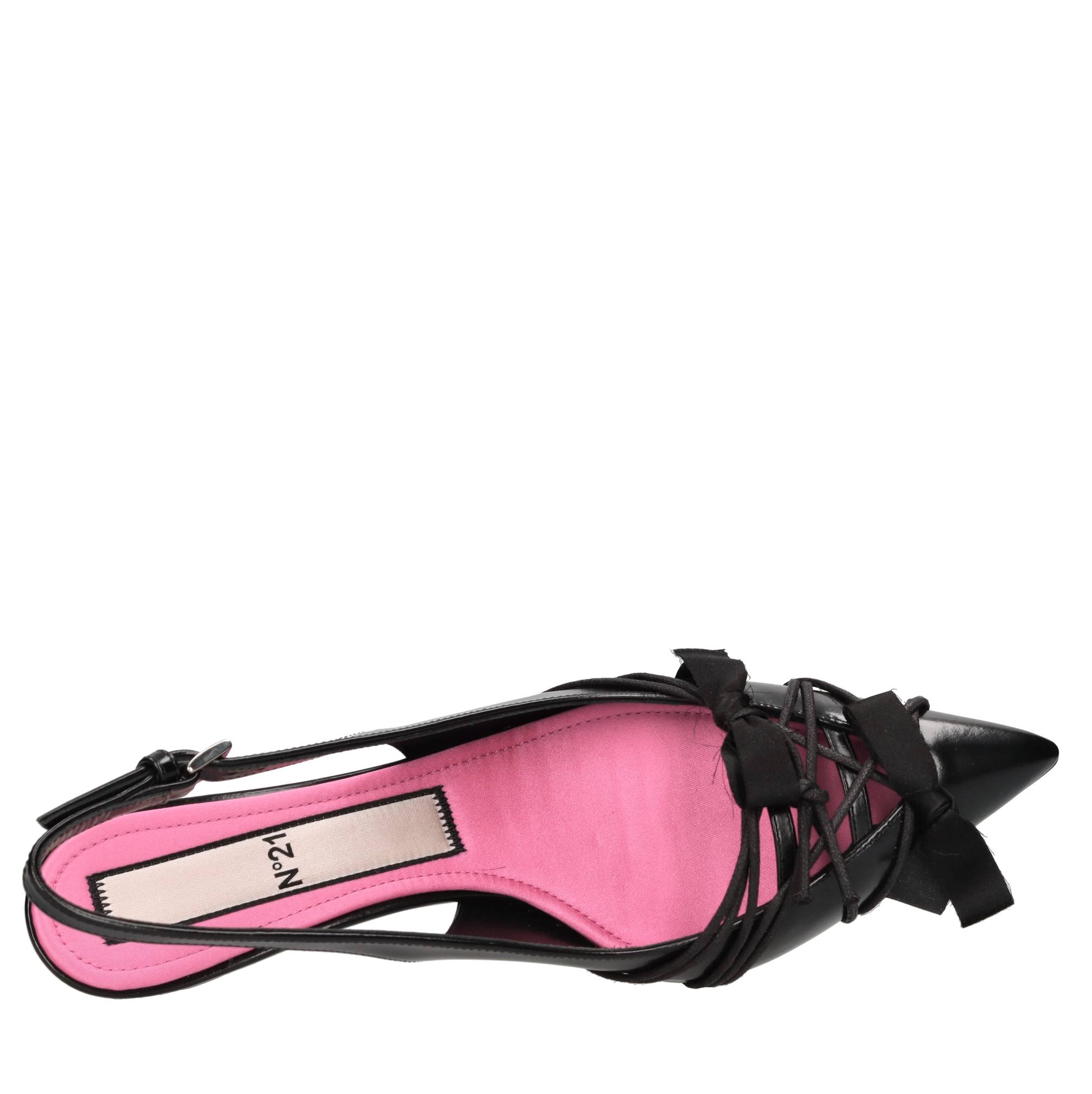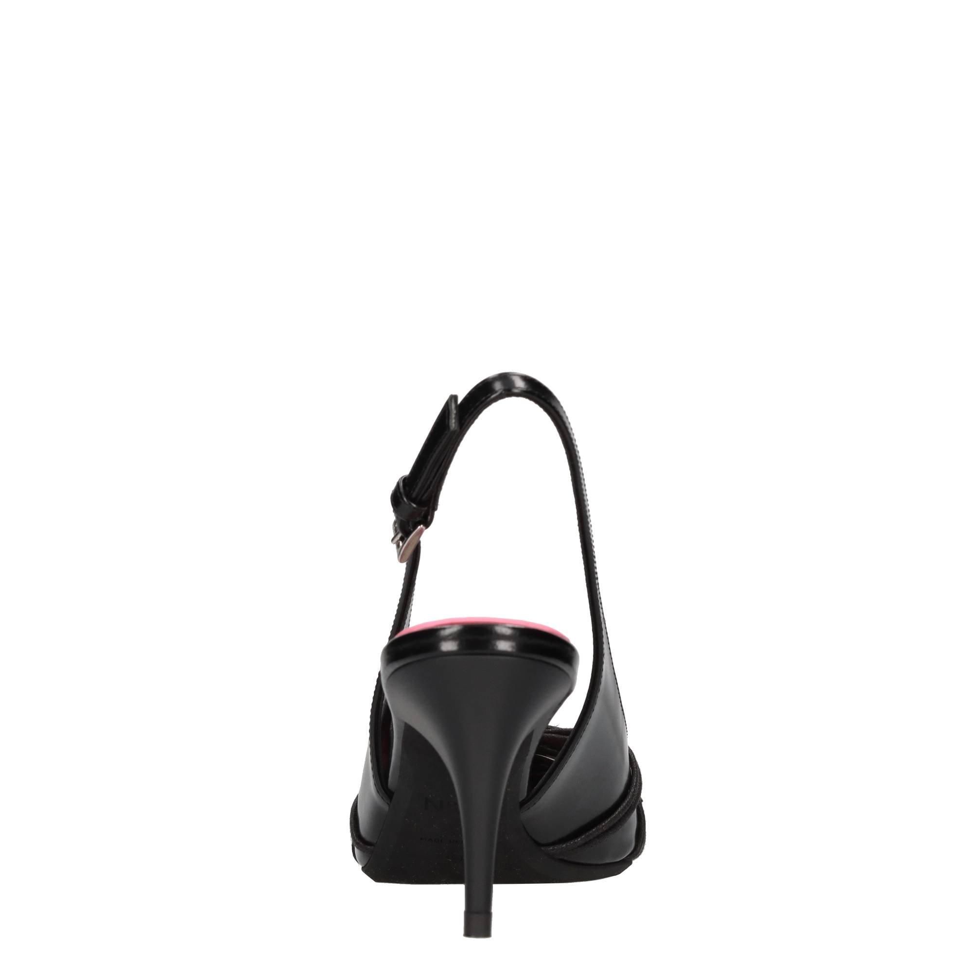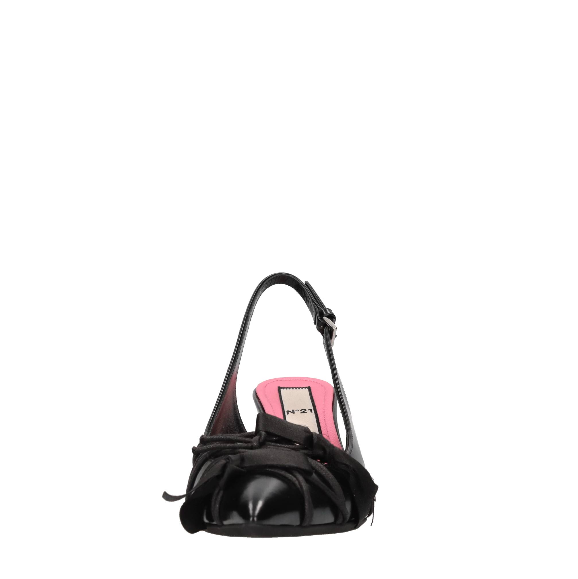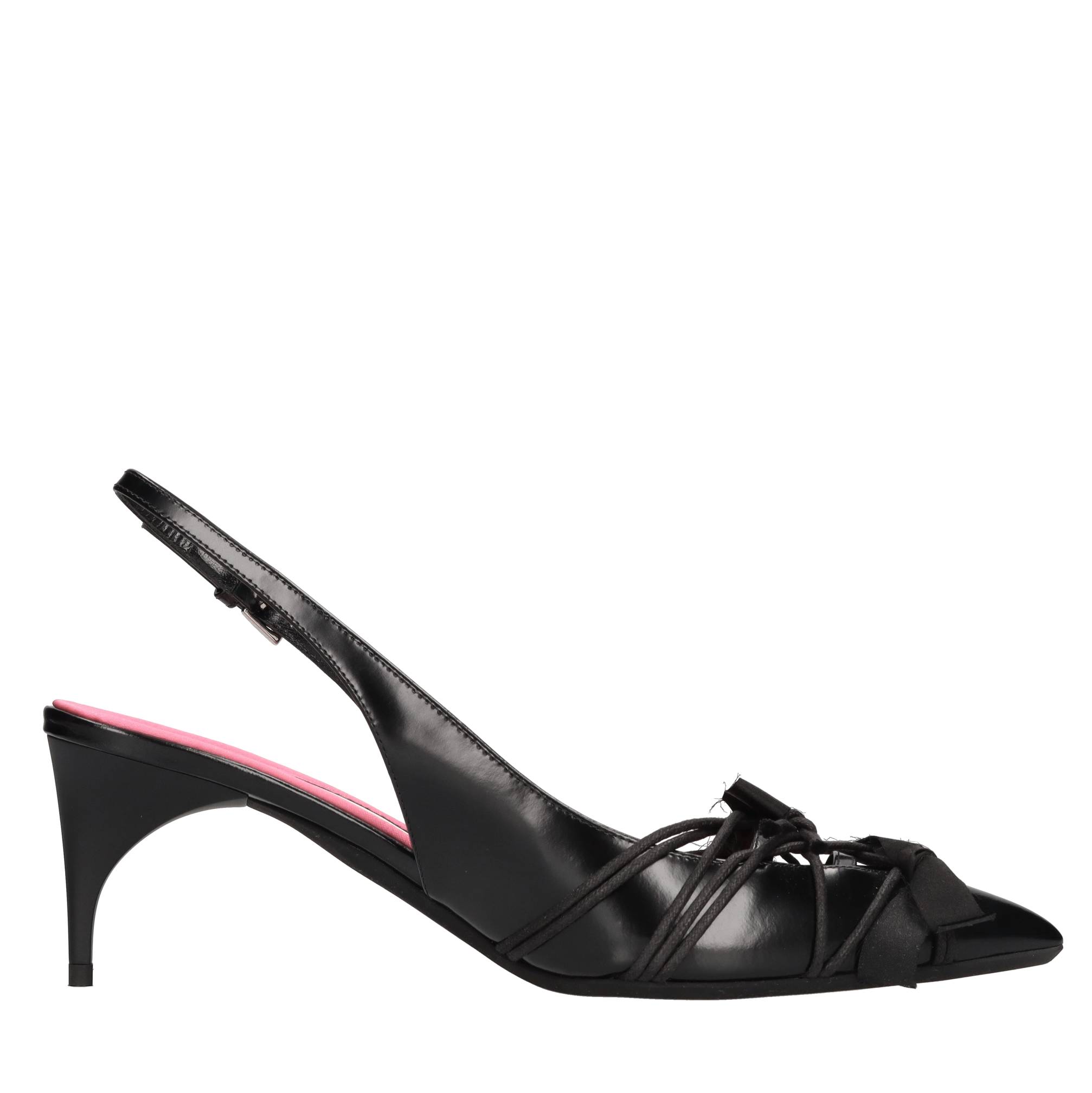 Leather slingback pumps. Fabric upper. Rubber outsole.