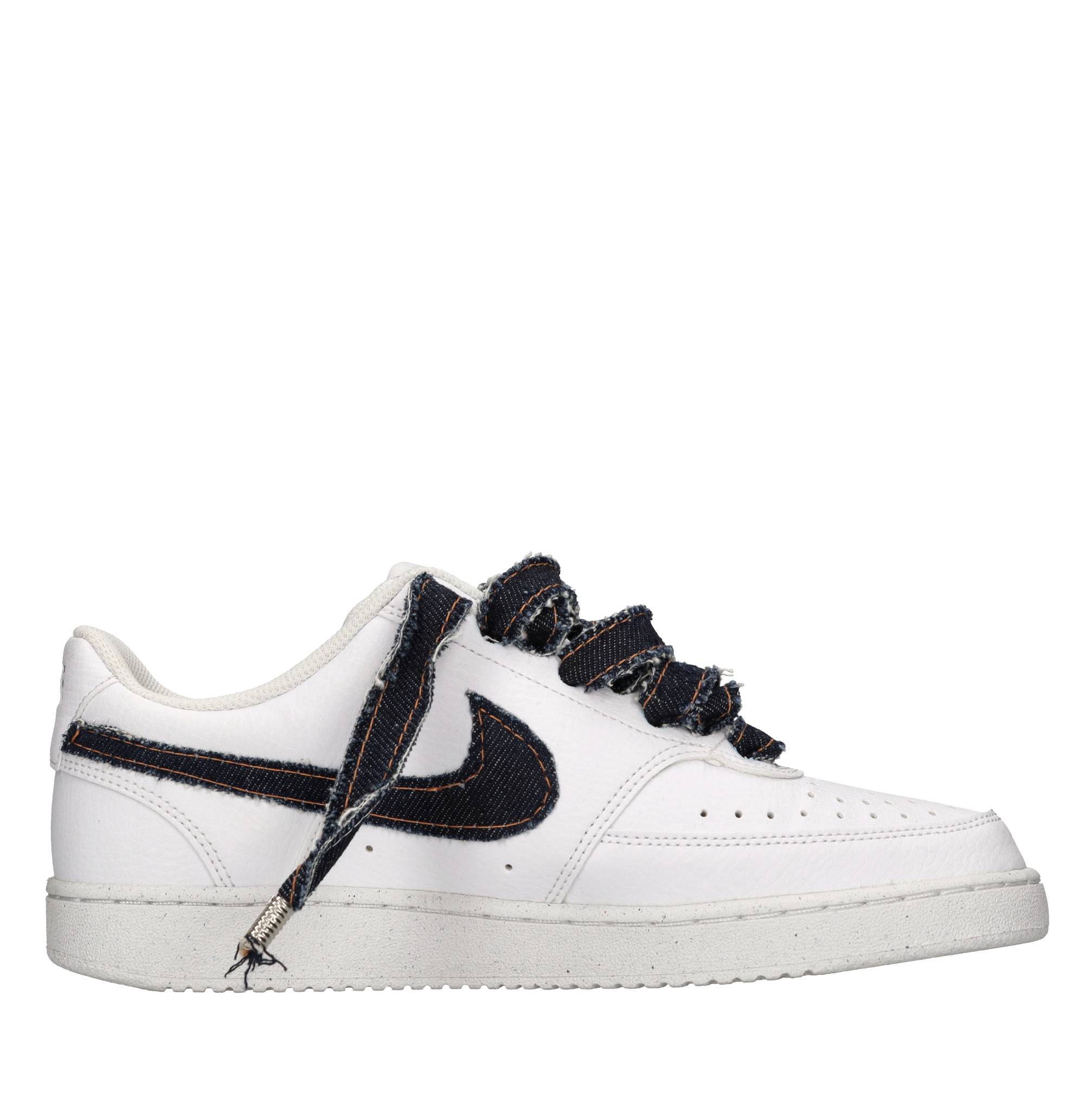 Faux leather sneakers. Denim details. Fabric inner upper. Rubber outer sole.