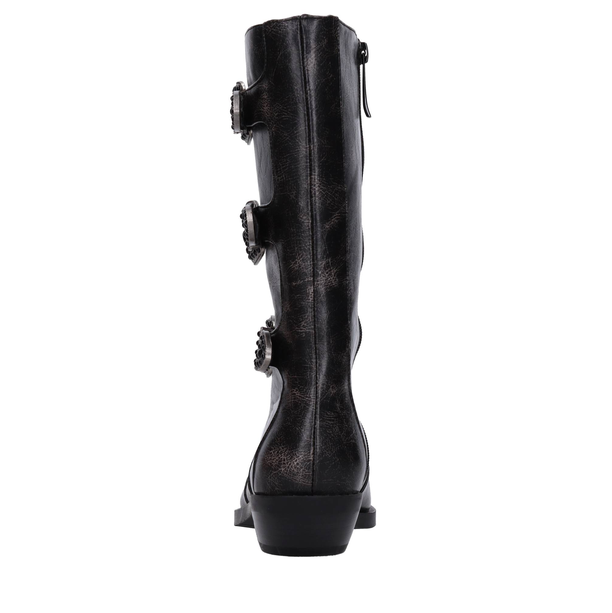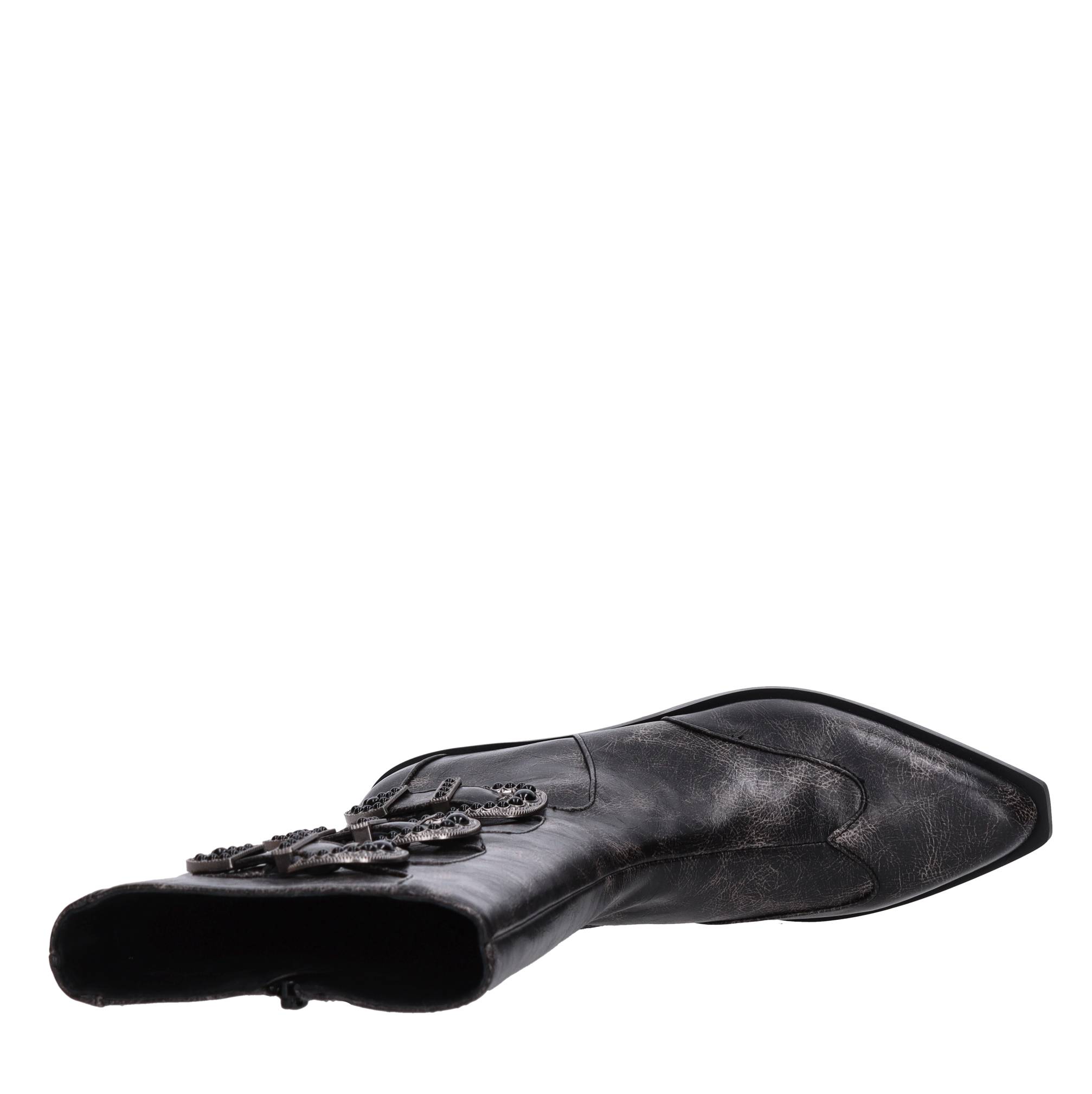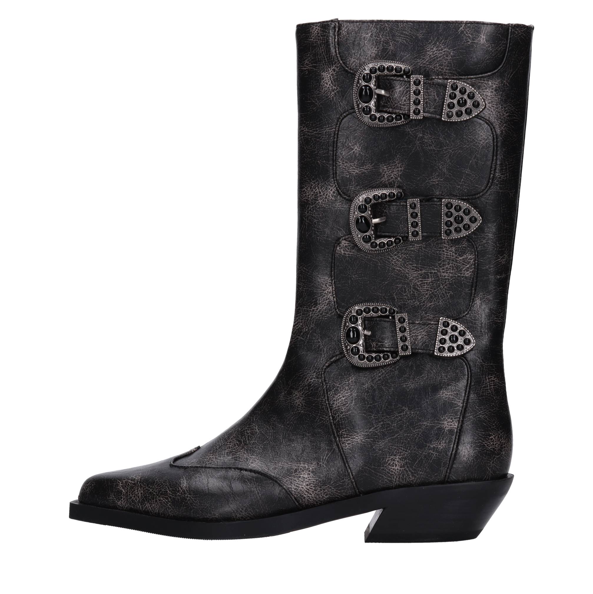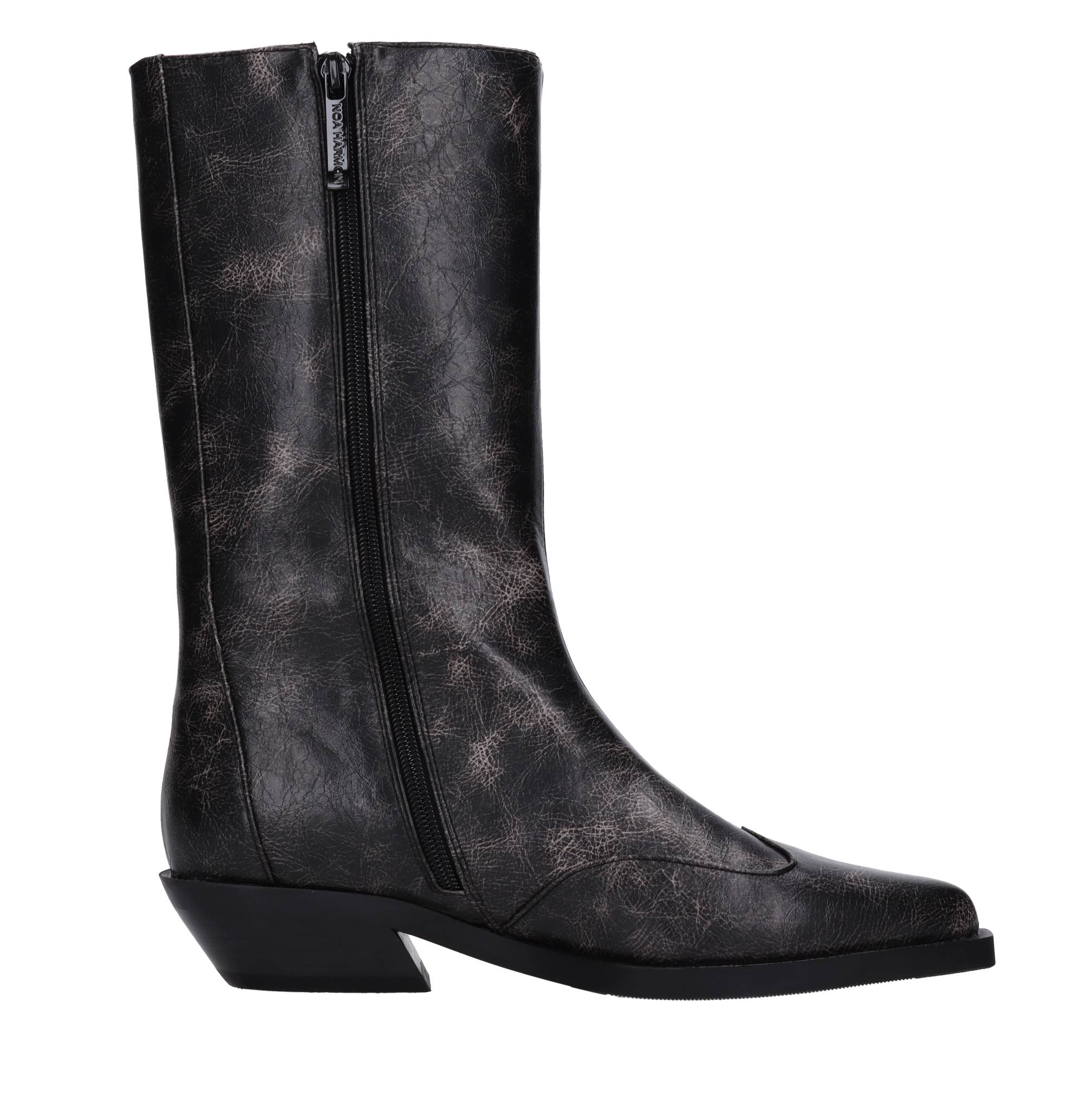 Faux leather boots. Leather and fabric inner upper. Rubber outsole. Inner side zip.