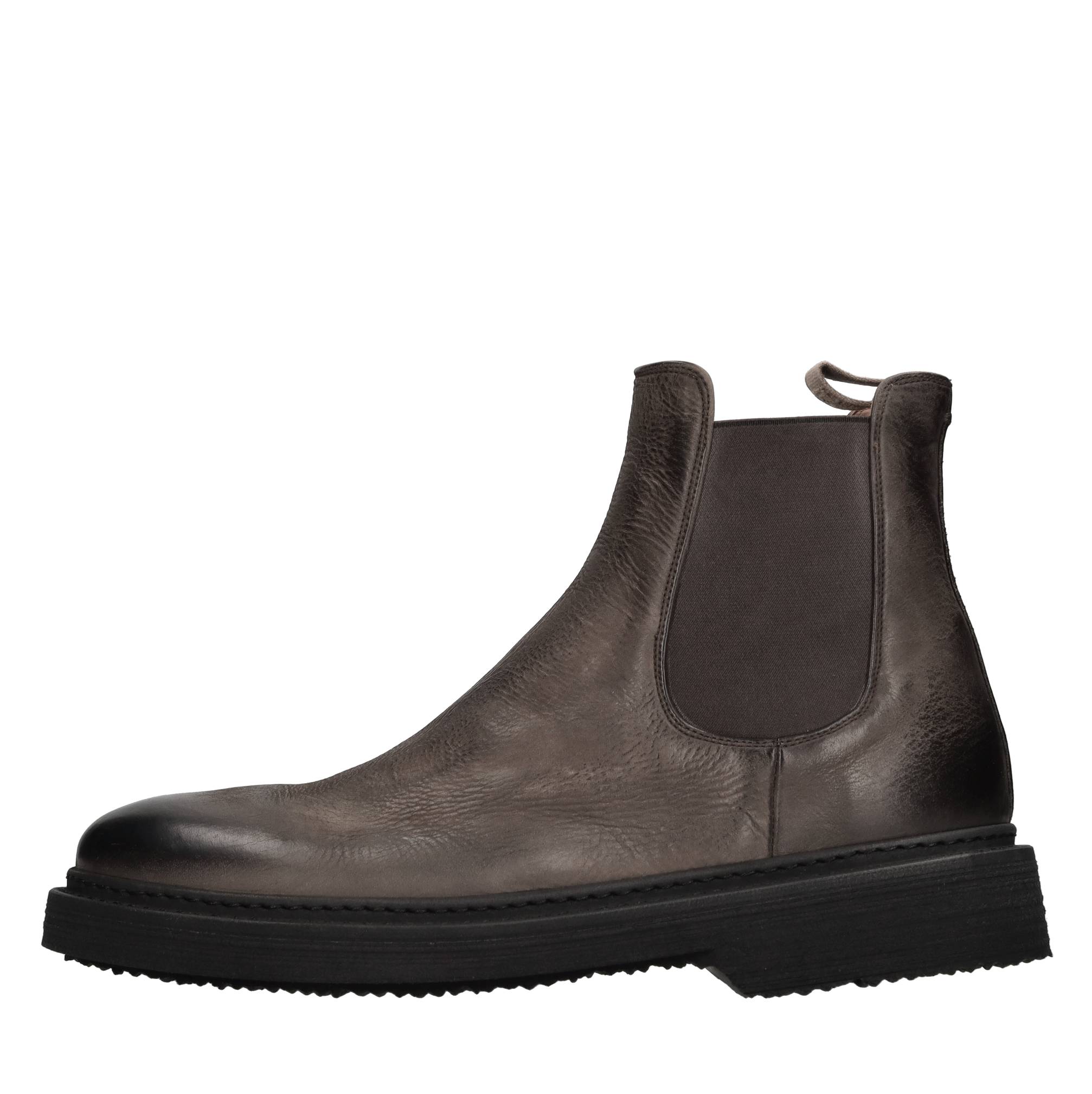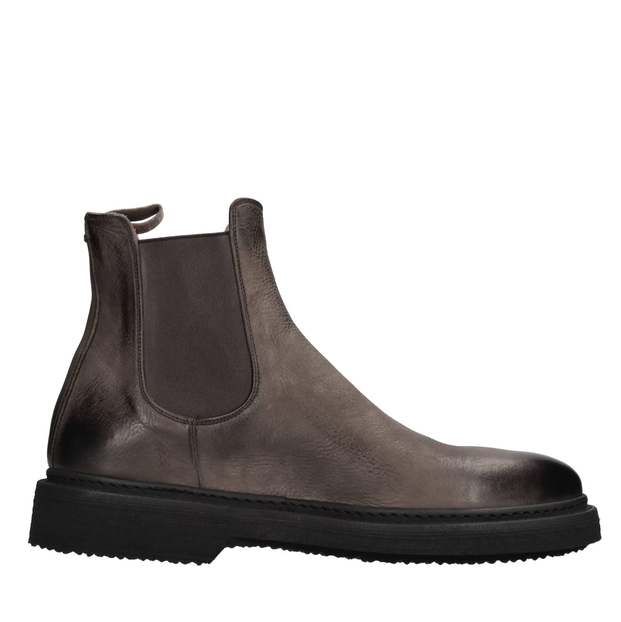 Leather lace-ups. Leather upper. Rubber outer sole. Side elastic. Vintage effect.