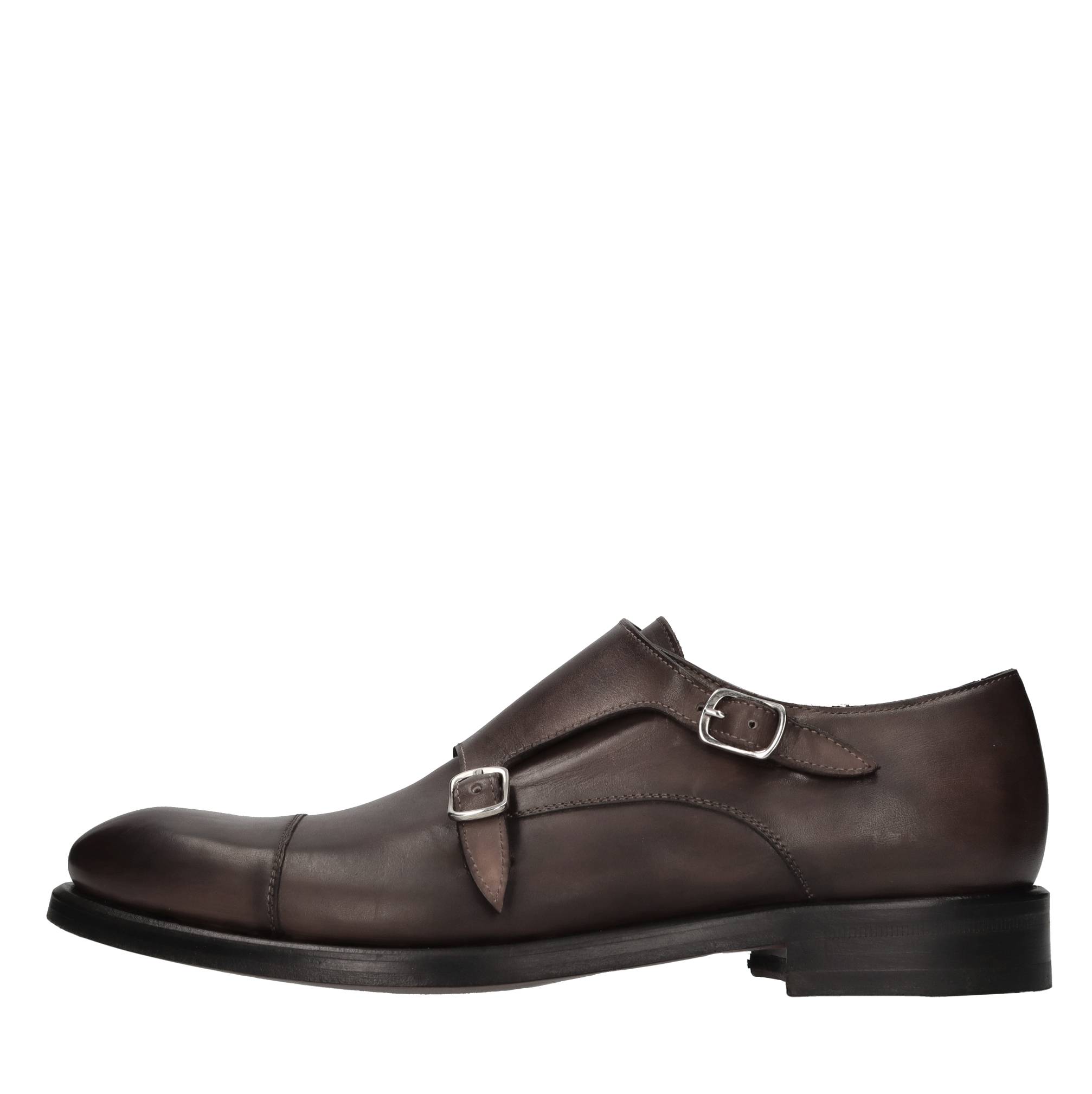 Leather loafers. Leather upper. Leather outer sole. Double buckle. Blake construction.