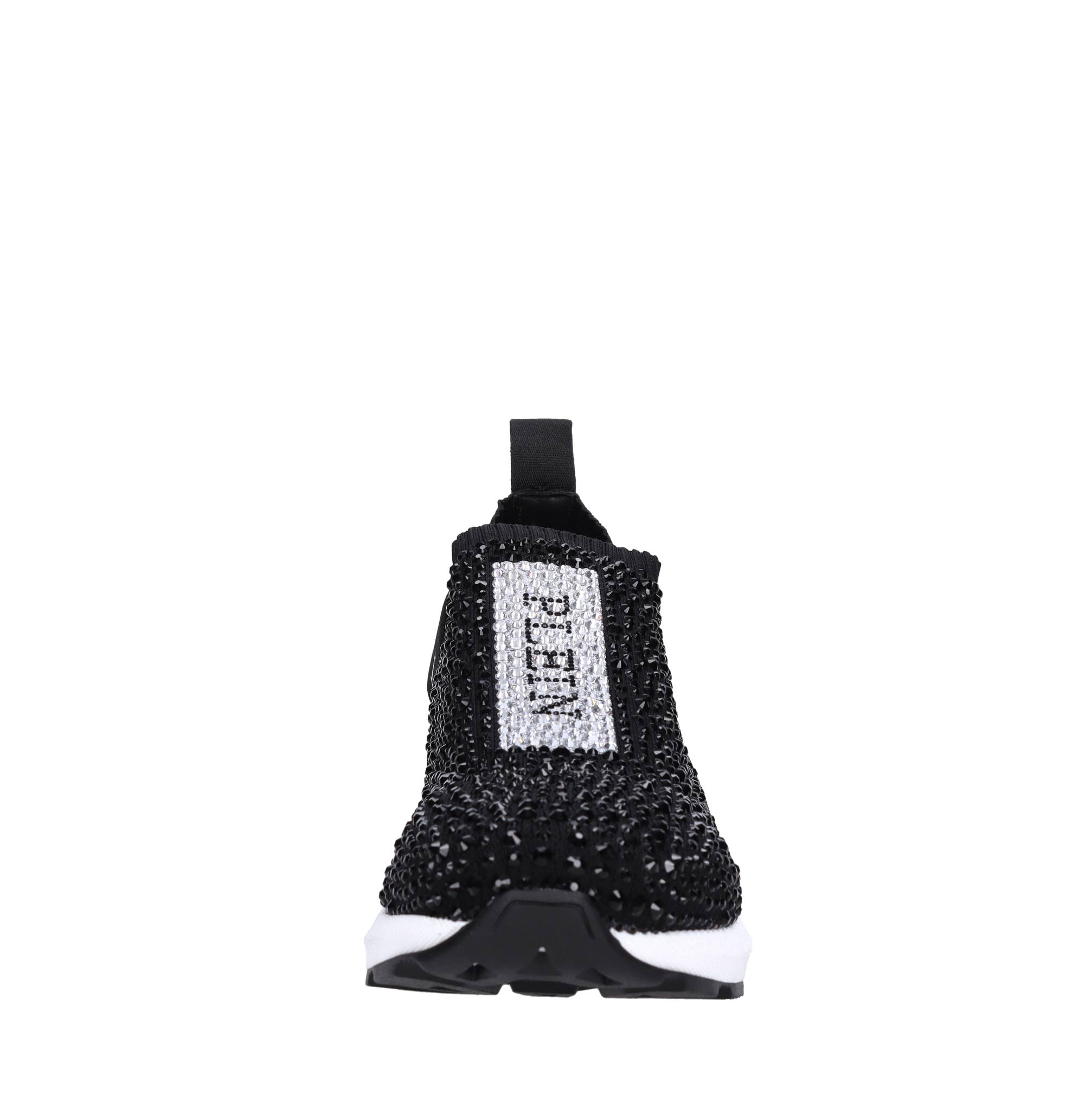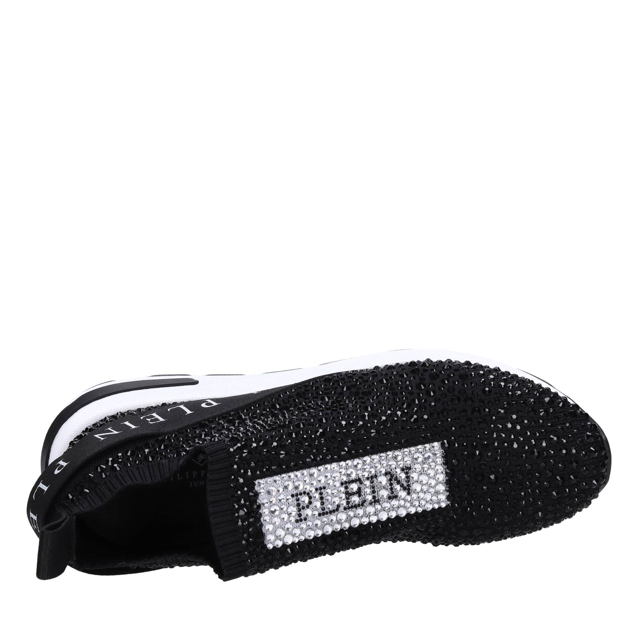 Fabric and rhinestone sneakers. Leather and fabric upper. Rubber outsole.