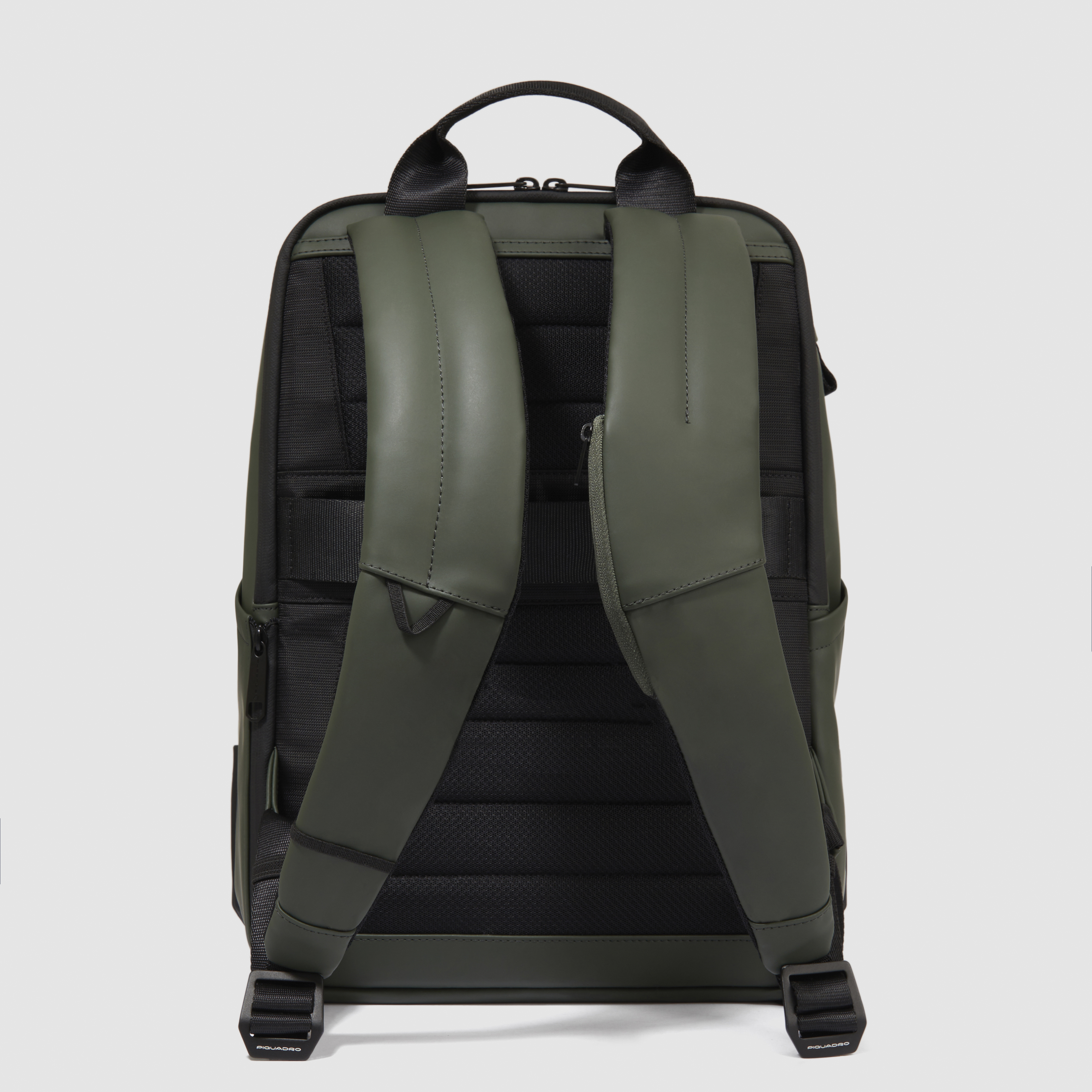 Backpack for laptop and iPad® with 2 compartments in water-resistant fabric with attachment for portable bike light, bottle pocket and RFID protection. Can hold: 14 laptop. Holds iPad® 10.2, Air 10.9 and Pro 11: fixed.