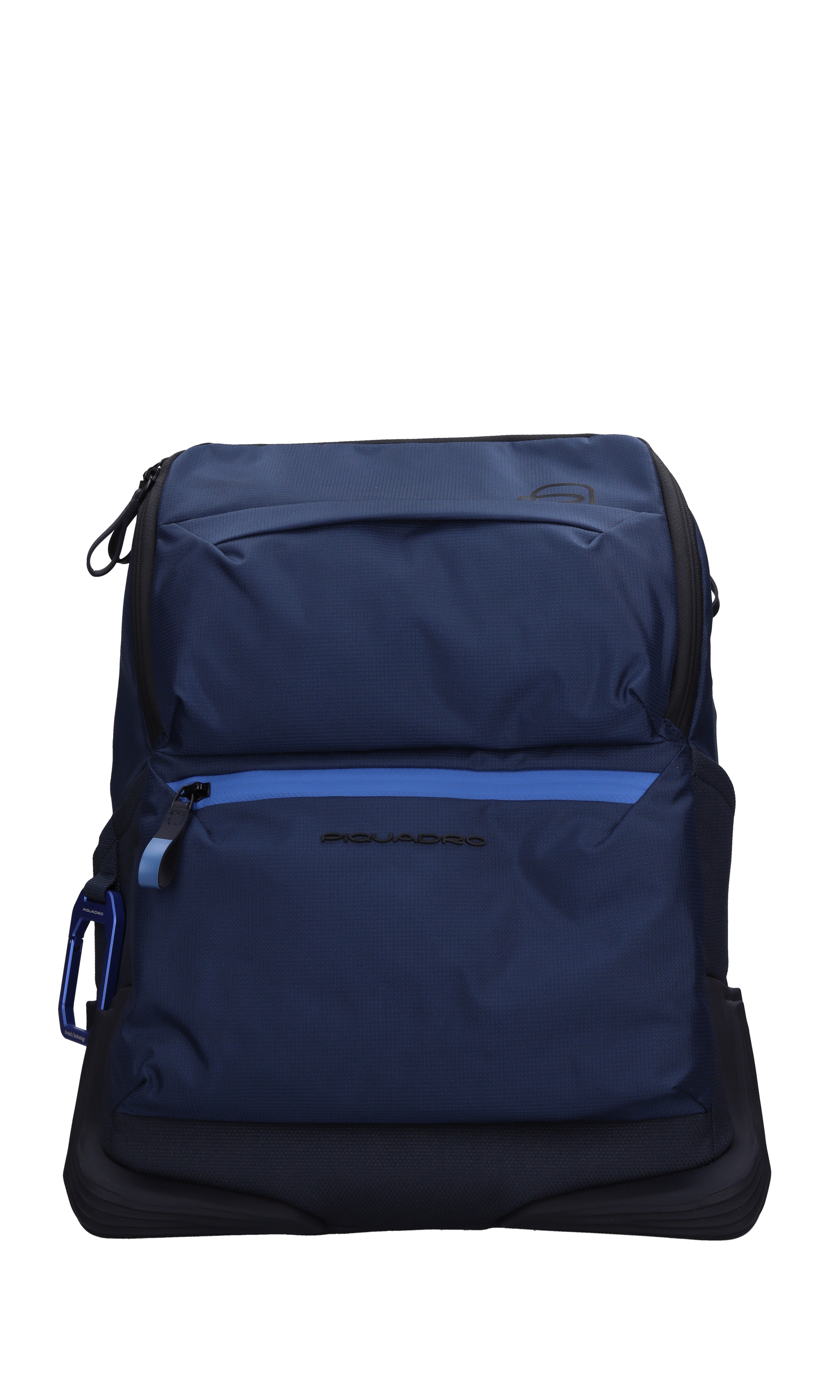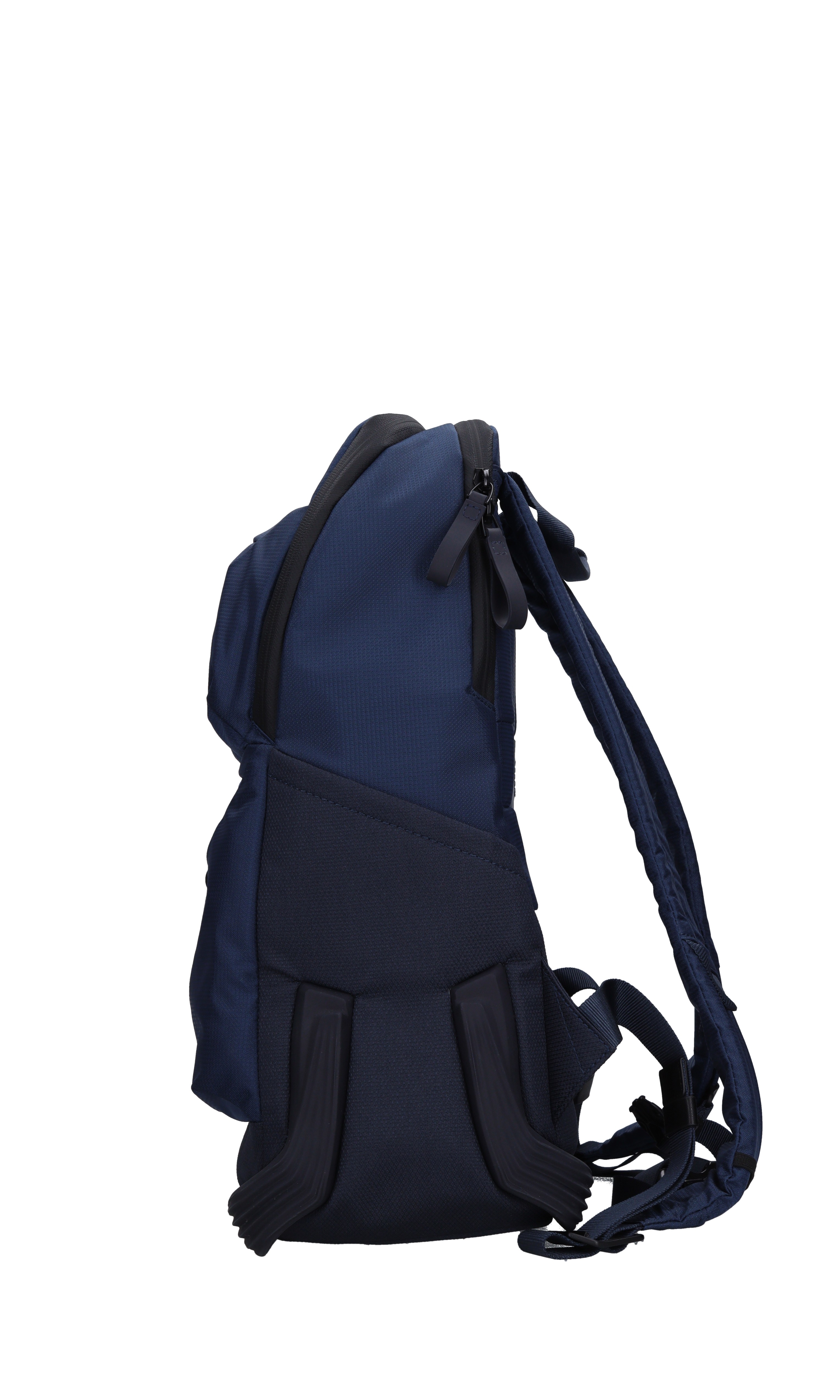 Backpack in technical fabric. 2 compartments. Zip closure. Front pocket with zip. 2 open side pockets. Padded compartment for 14" laptop. Trolley attachment system.
