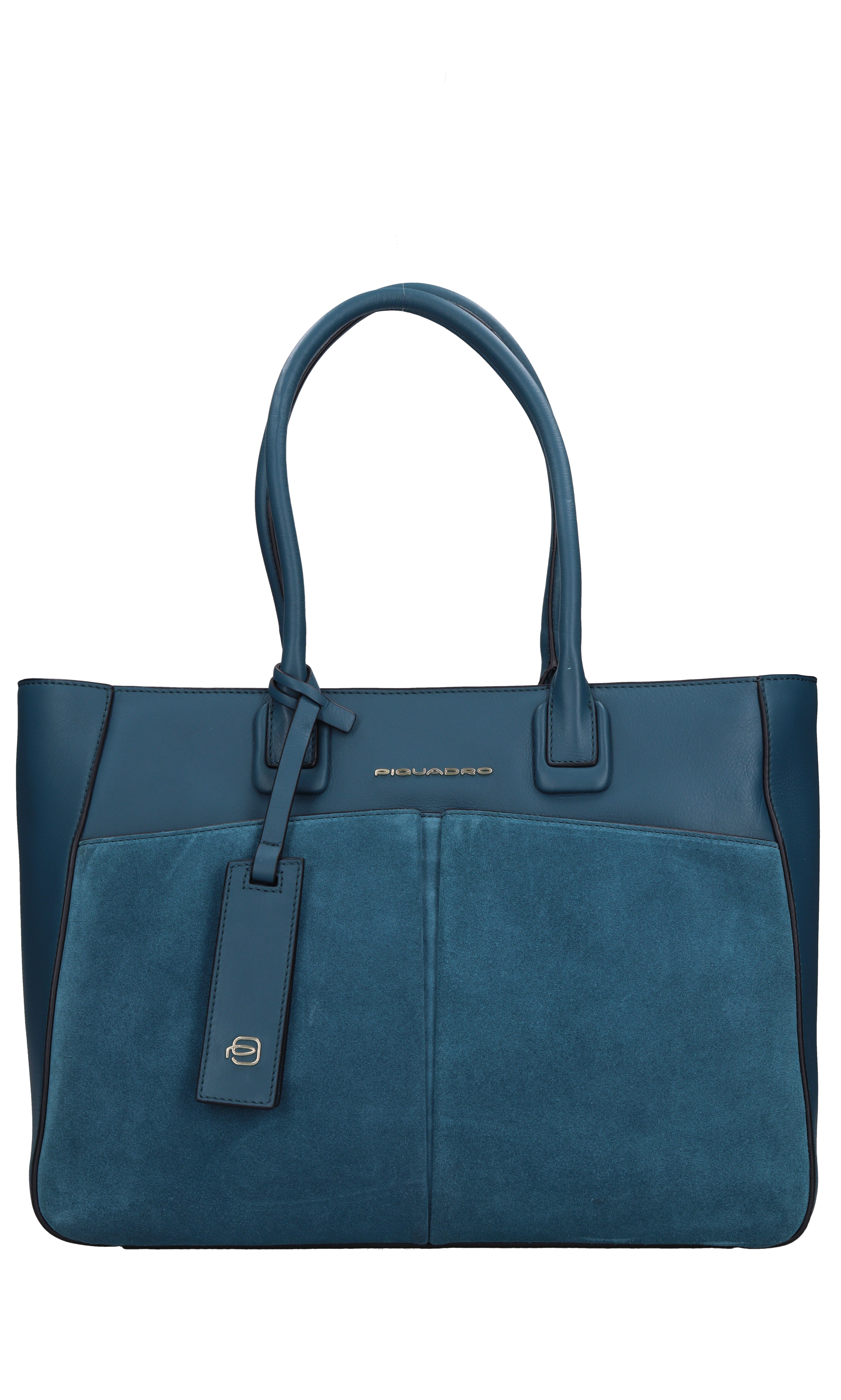 Leather and suede bag. Laptop compartment. 1 compartment. Zip closure. 3 external pockets: 1 rear zip pocket, 2 front pockets. Removable charm. Trolley attachment system strap. Adjustable. Imperceptible marks on the leather.