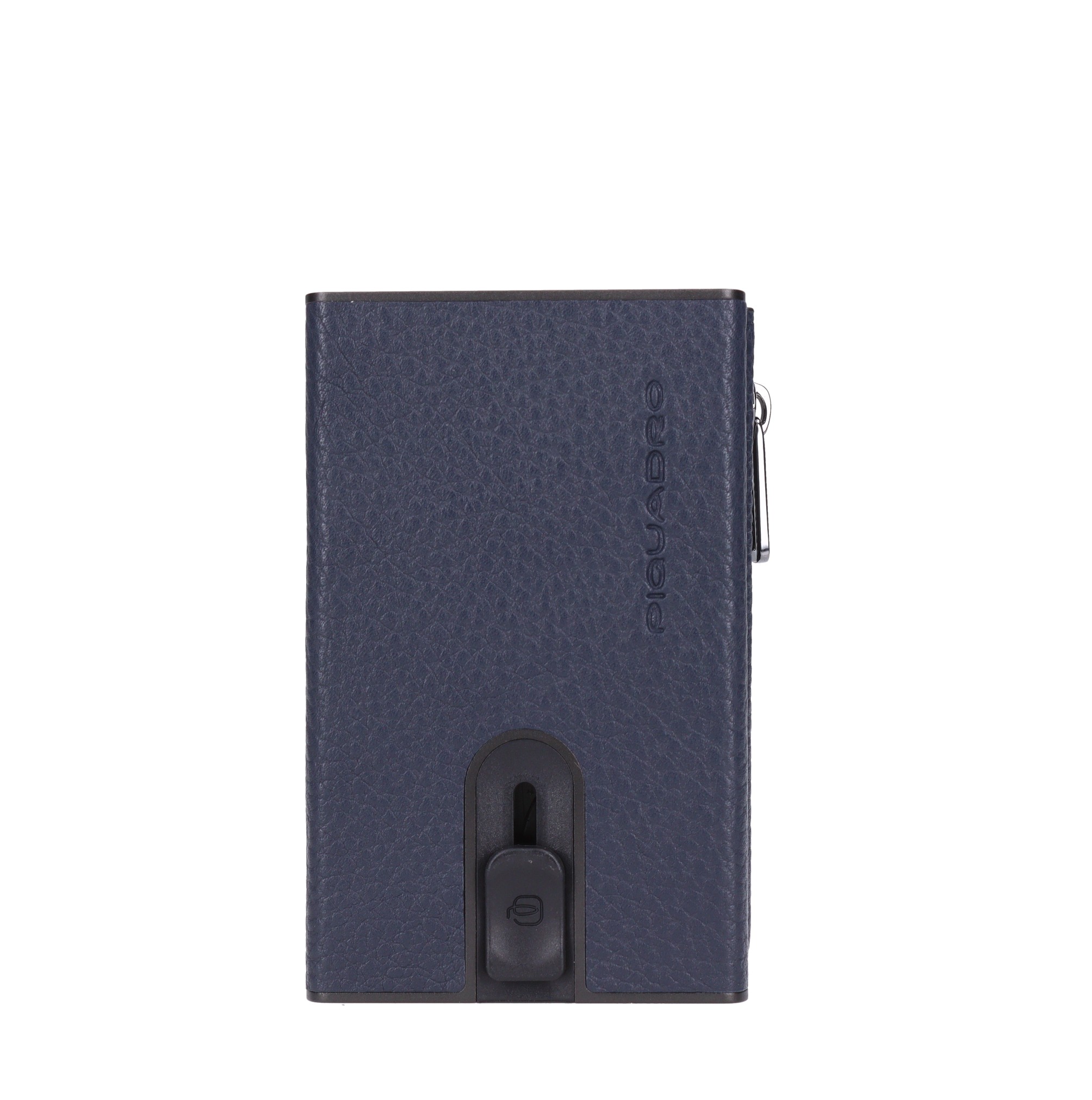 Leather wallet and card holder. Polyester and leather lining. 1 compartment. Snap button closure. RFID protection. Coin pocket.