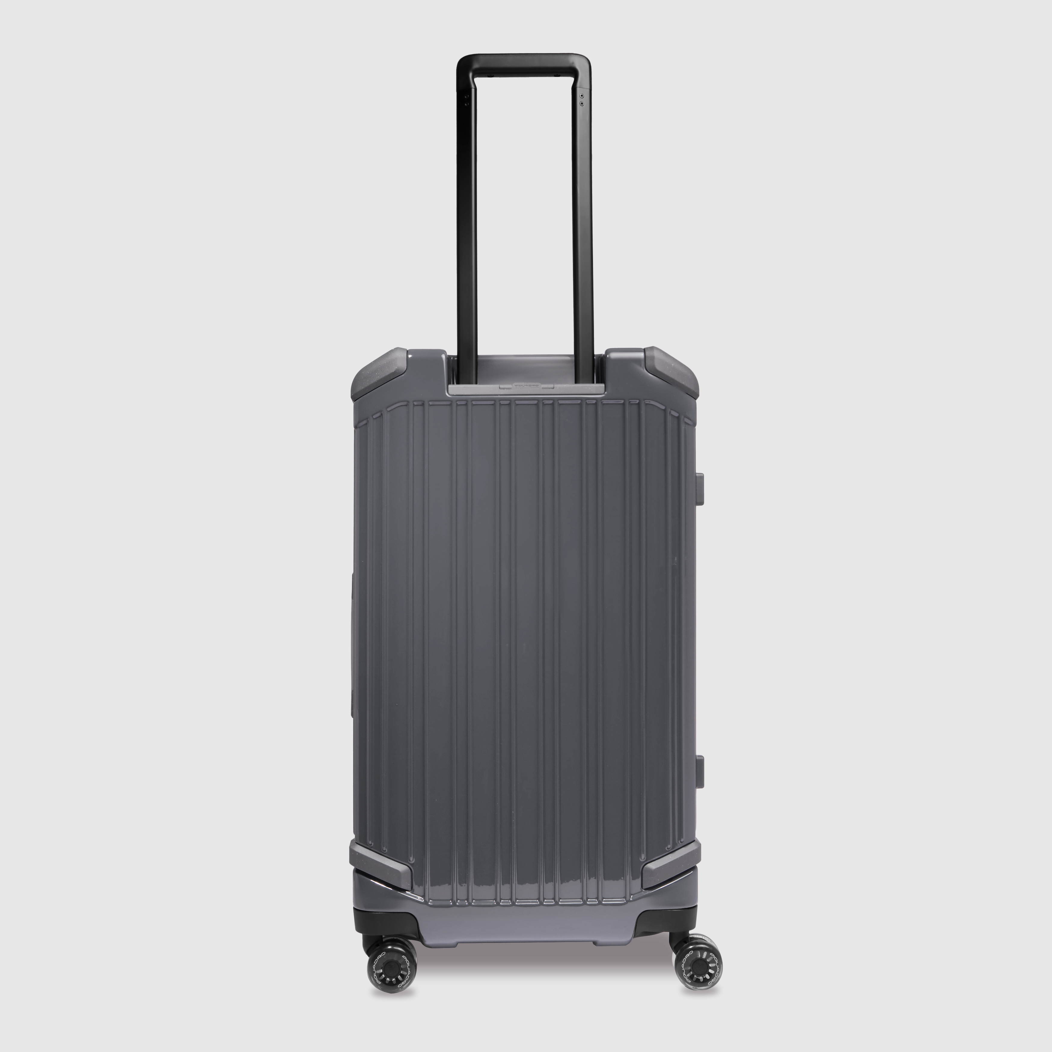 Small customisable hard polycarbonate trolley with 4 wheels, equipped with integrated TSA lock. 1 compartment. Inner lining: 100% polyester. Capacity: 95.23 litres. Clothes straps. Weight: 4,591 g.