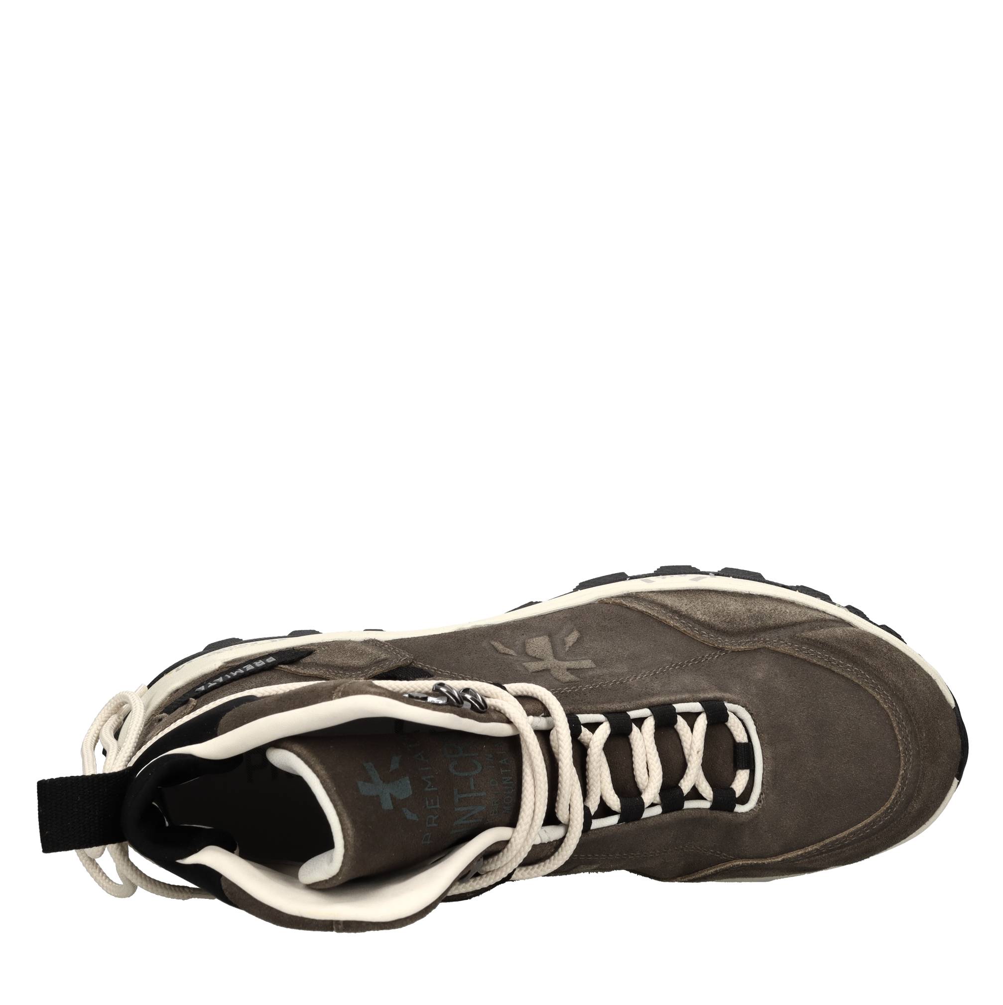 Suede ankle boots. Leather inner upper. Vibram rubber outsole.