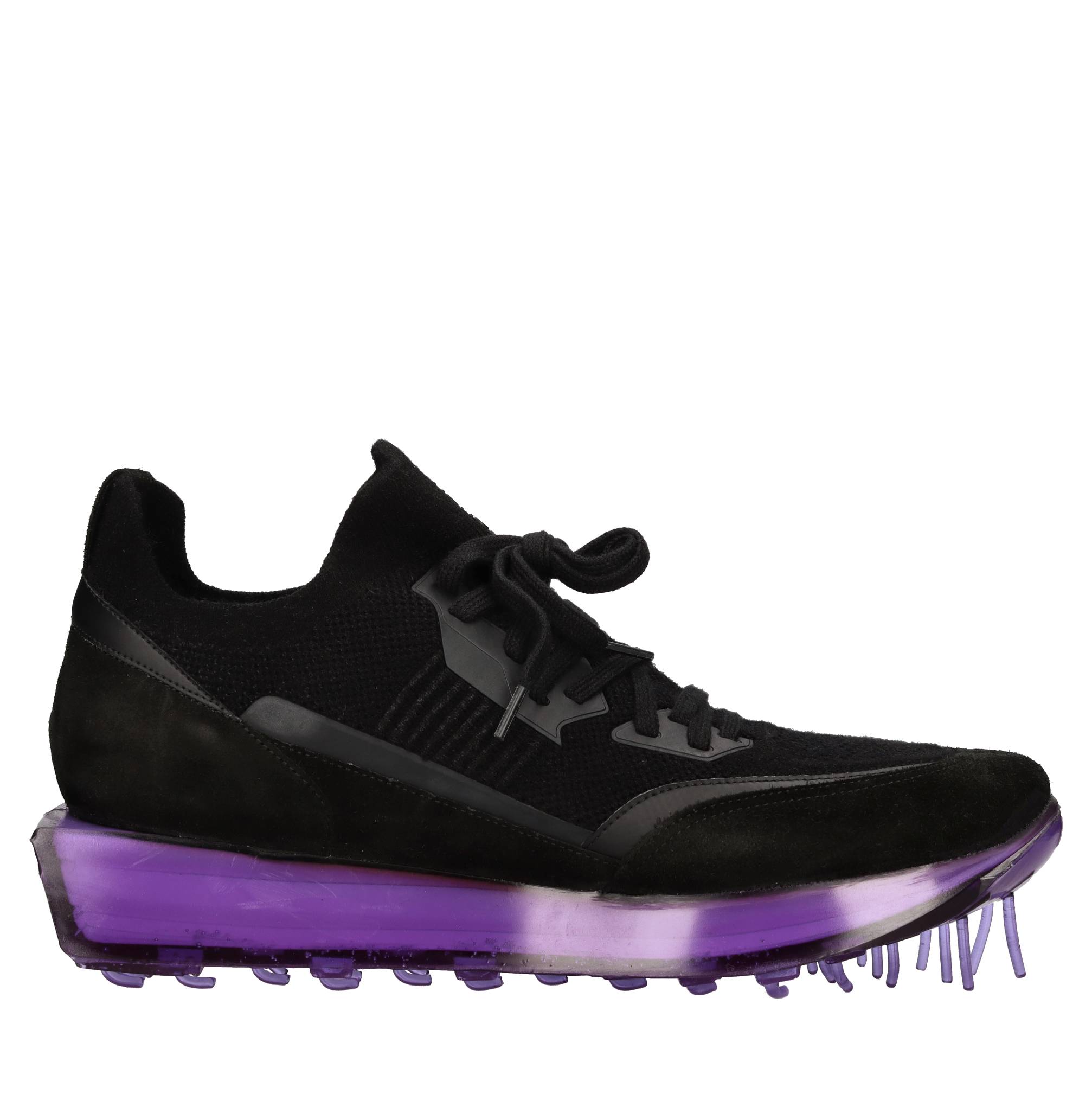Suede and fabric sneakers. Inner upper in leather and fabric. Outer sole in rubber. Produced through an innovative rubberizing process that gives it a unique sole.