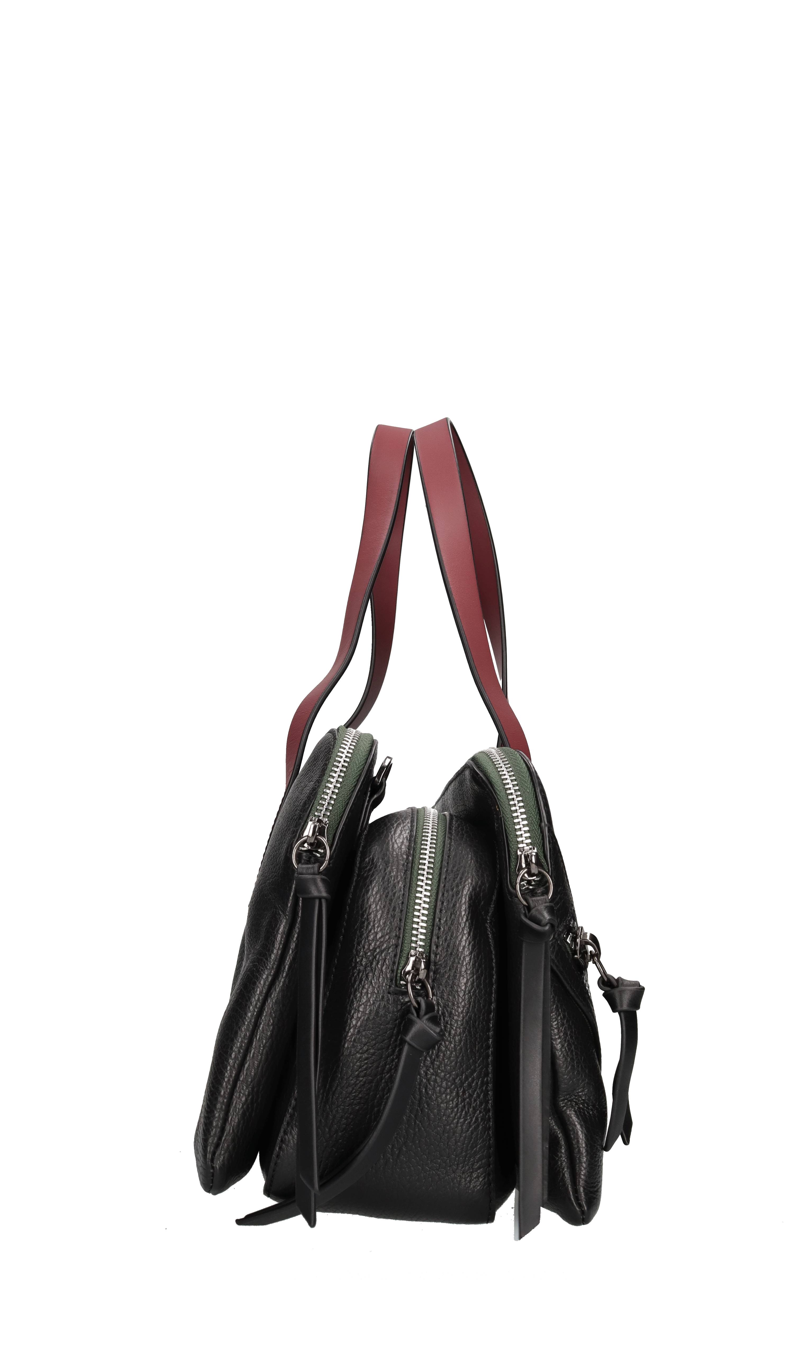 Leather bag. 3 compartments. Zip closure. Adjustable and removable silver chain and leather shoulder strap. Shipped in a clear bag.