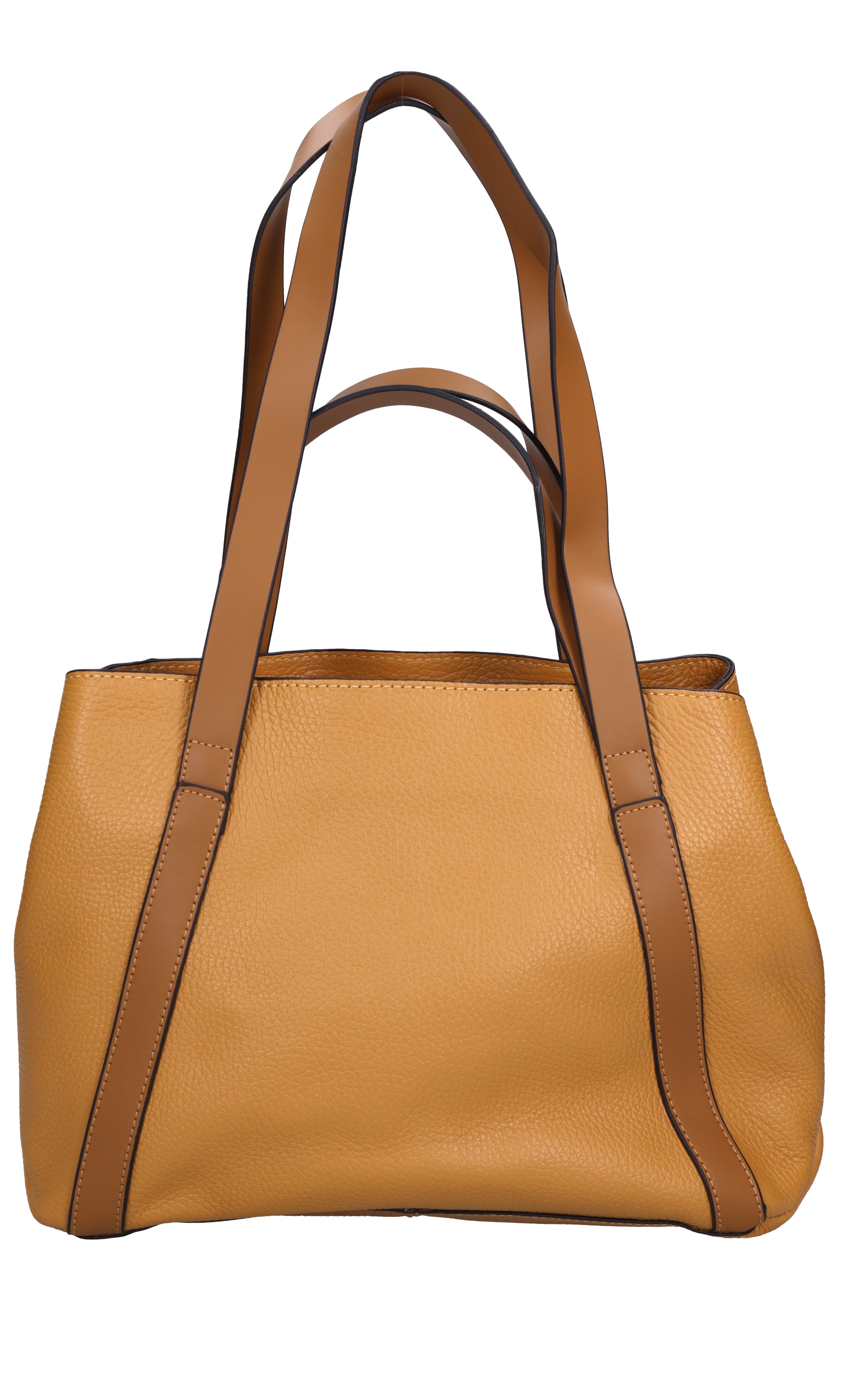 Leather bag. Hammered finish. 3 compartments. Zip closure. Adjustable and removable fabric shoulder strap. Shipped in a transparent bag.