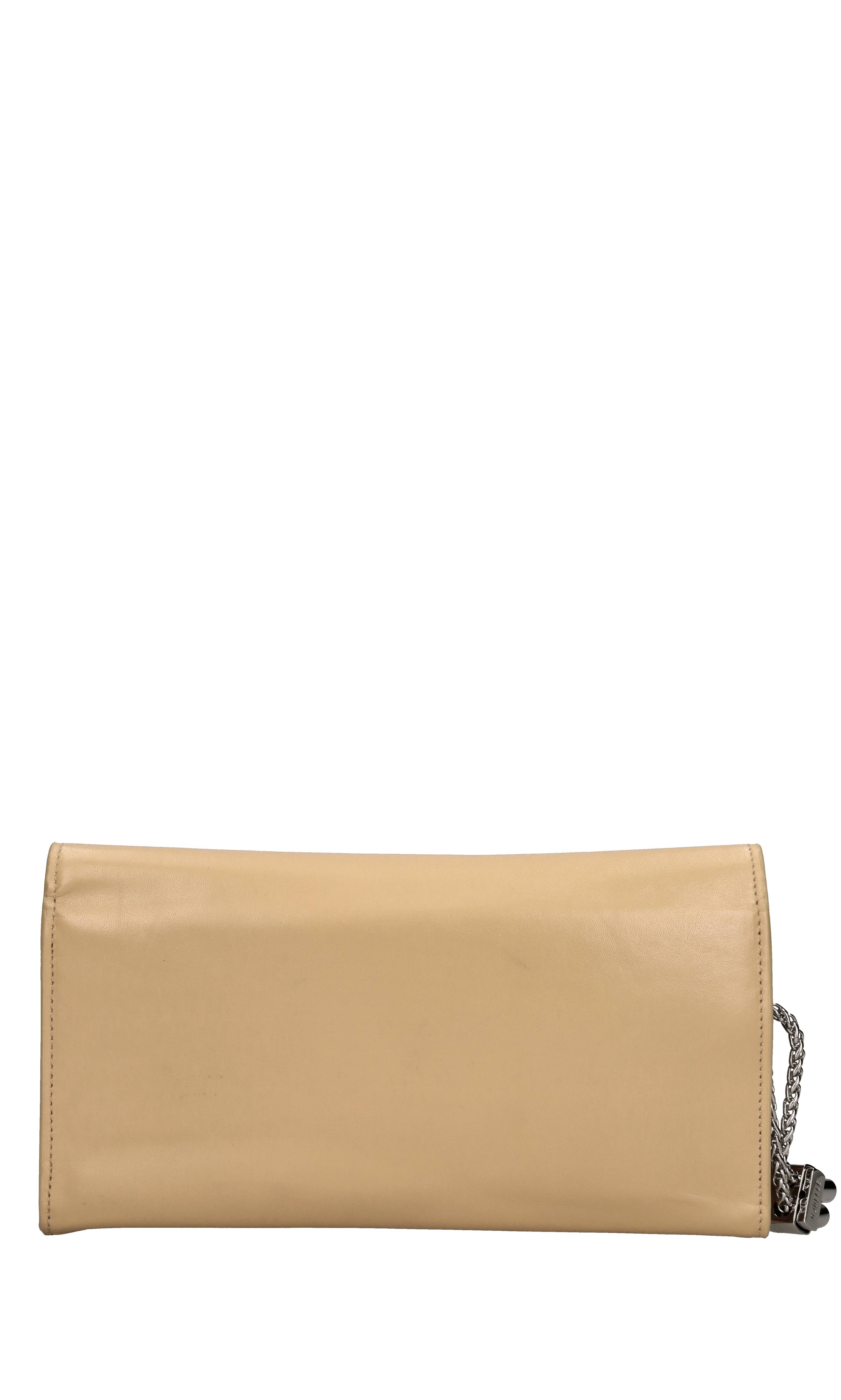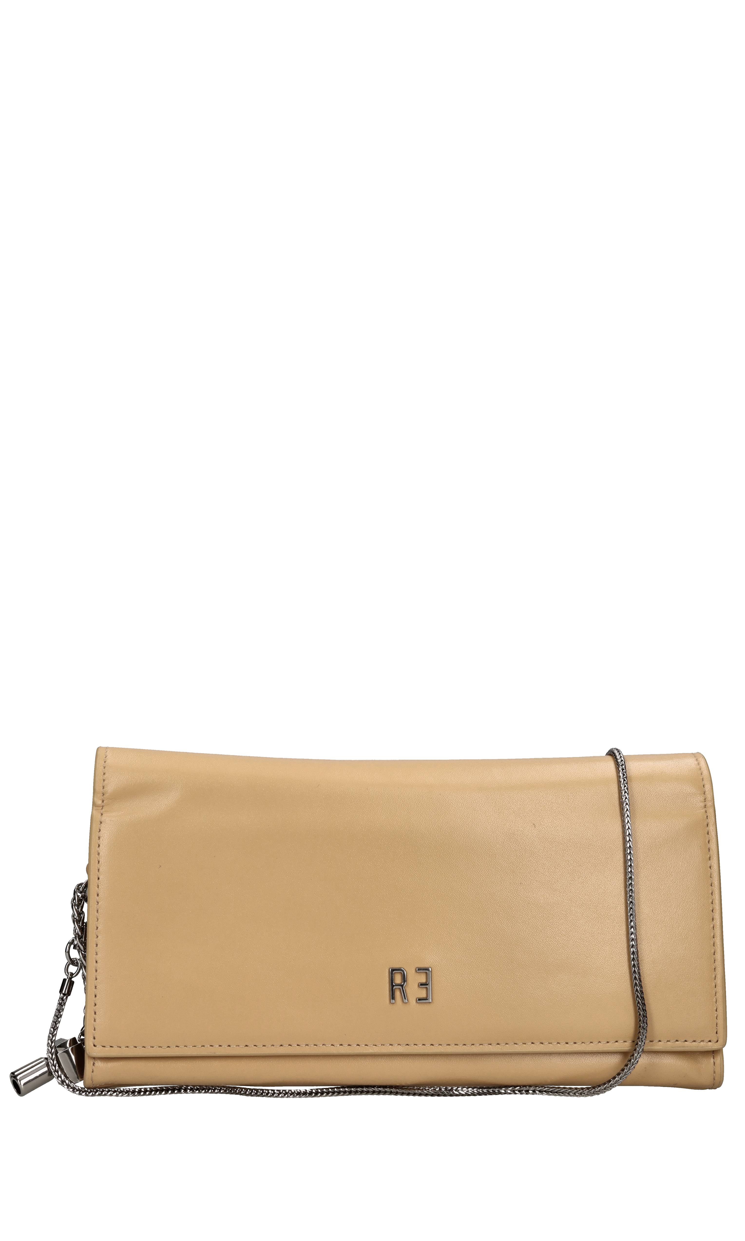 Leather bag. One compartment and two internal pockets. Automatic closure. Removable metal shoulder strap. Shipped in a transparent bag.
