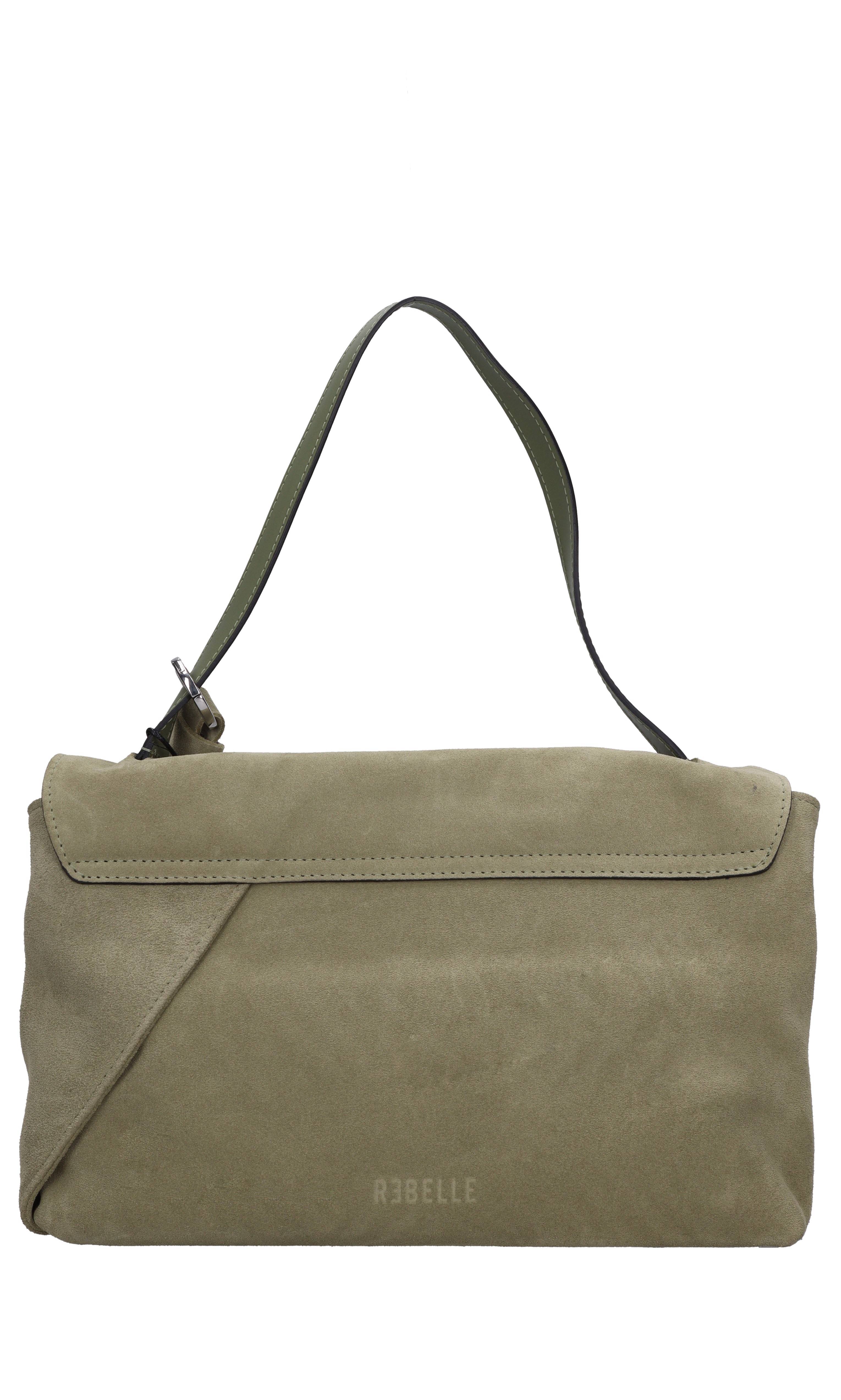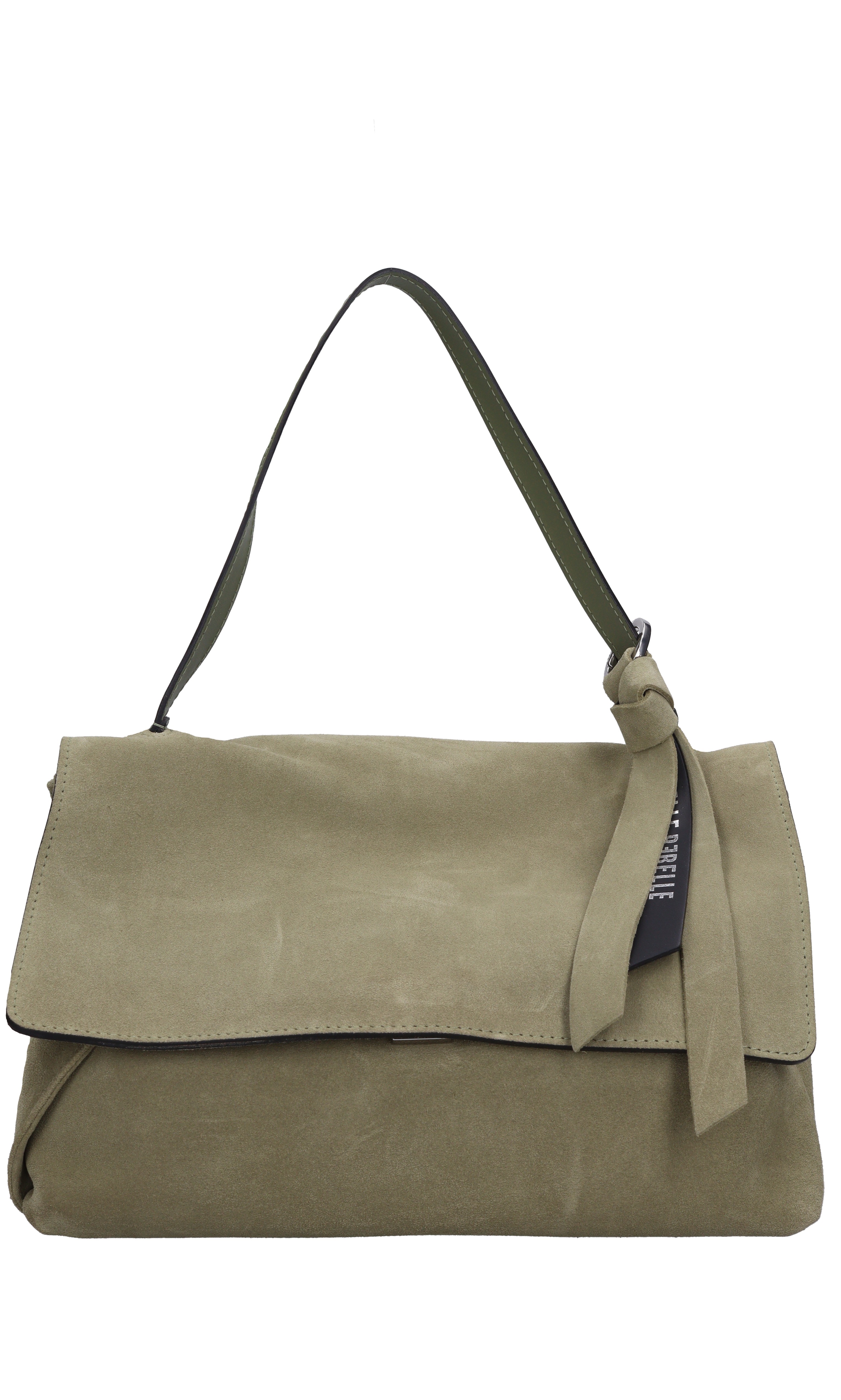 Suede bag. 2 compartments. Flap closure with snap button. Adjustable and removable shoulder strap. Shipped in a transparent bag.