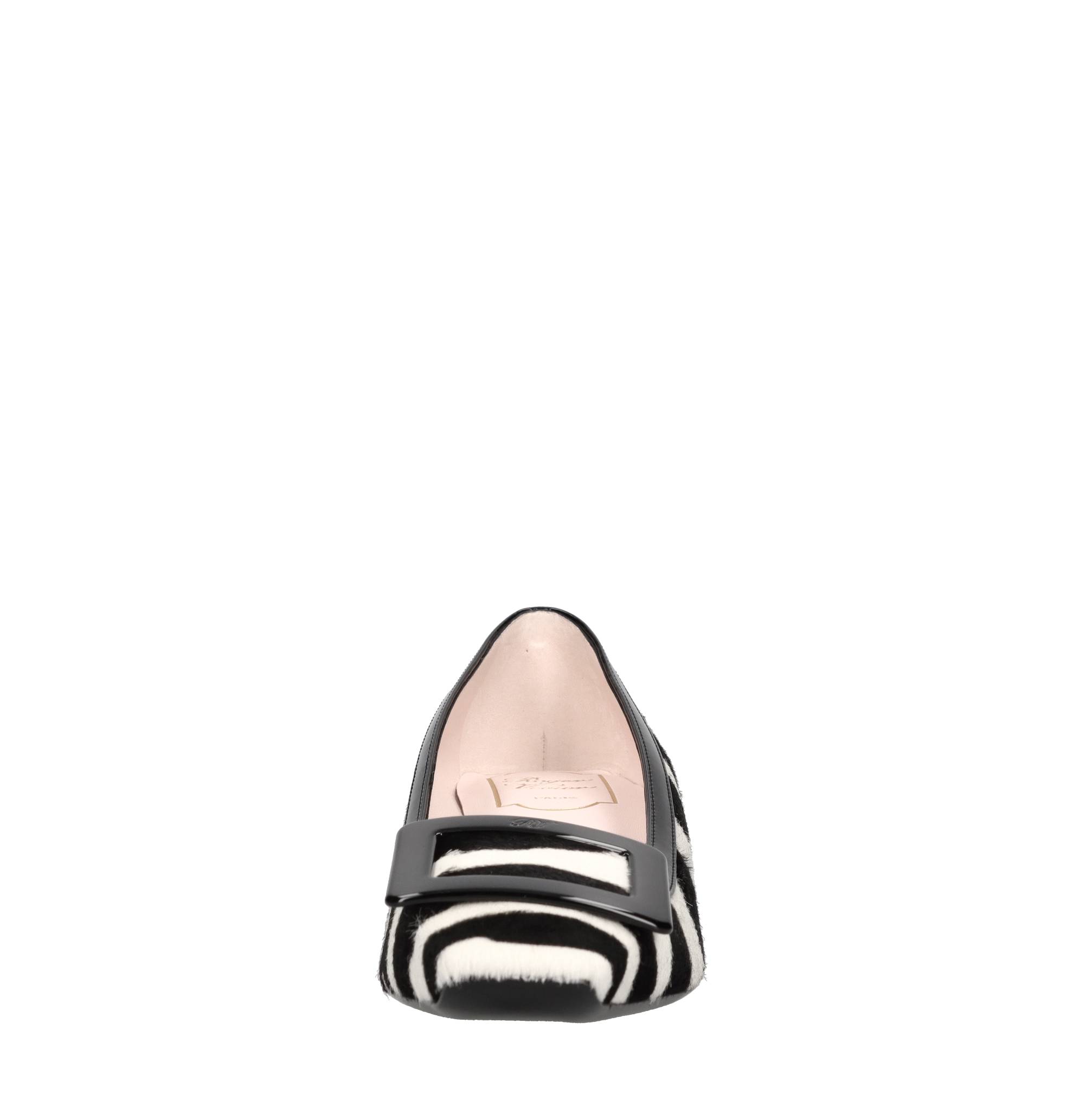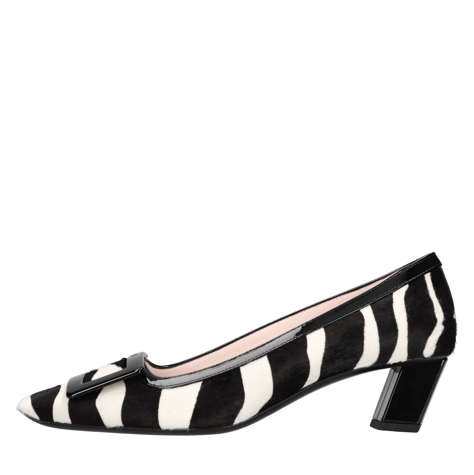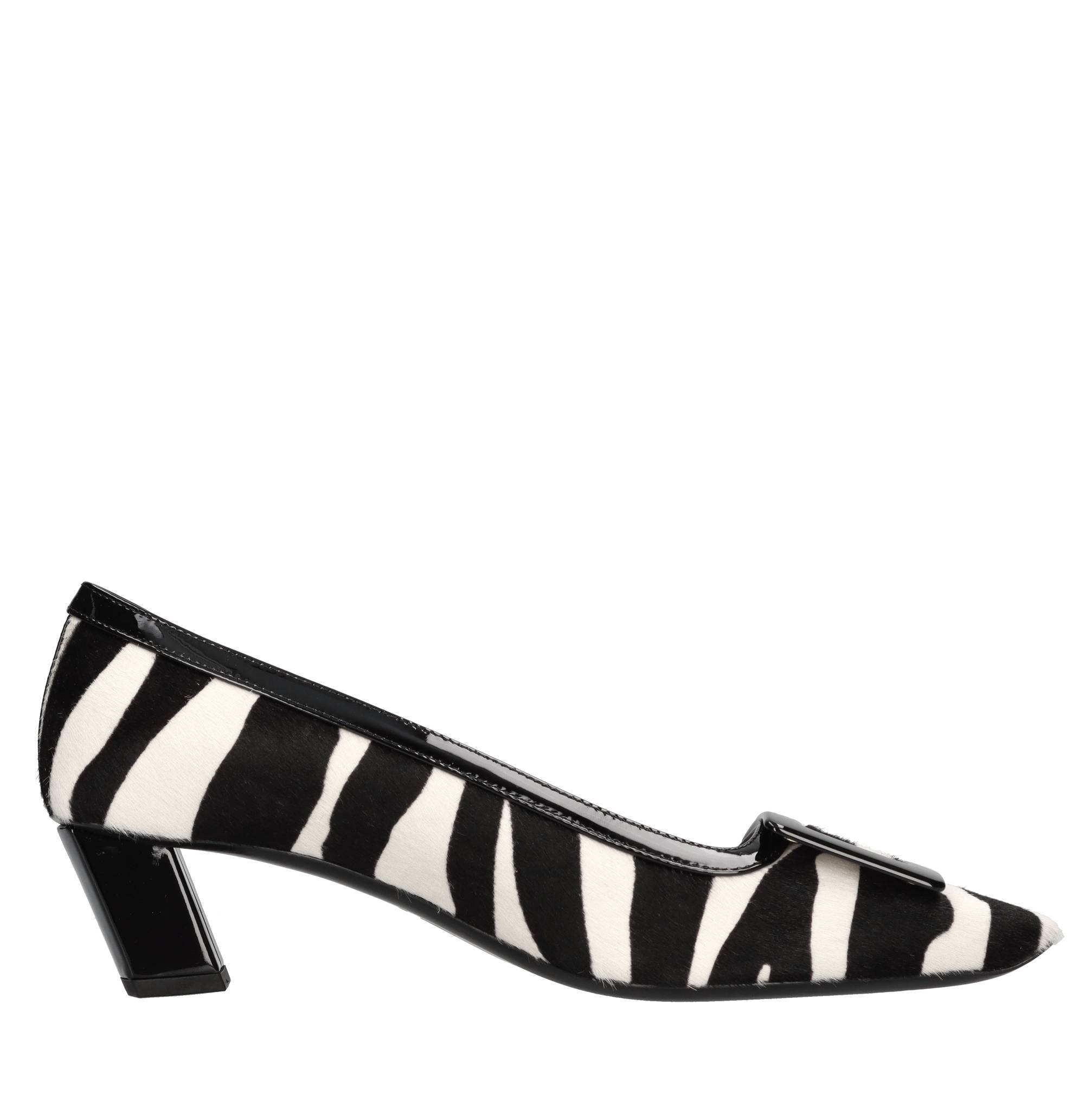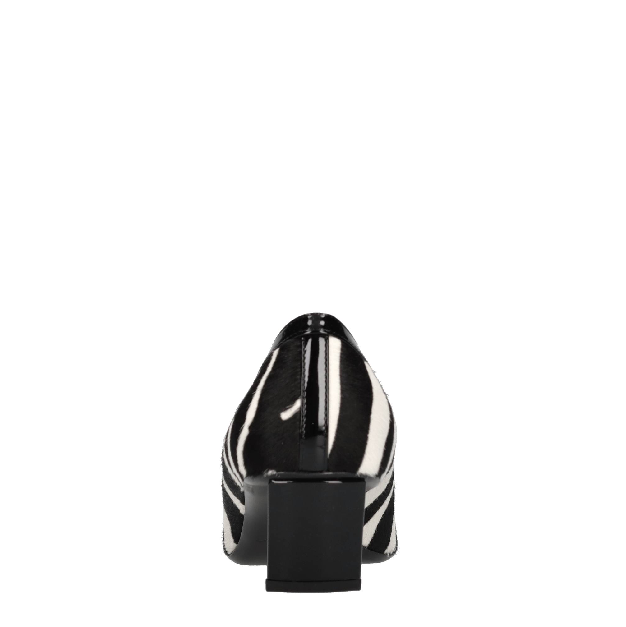 Pony hair and patent leather pumps. Leather outsole. Leather upper.