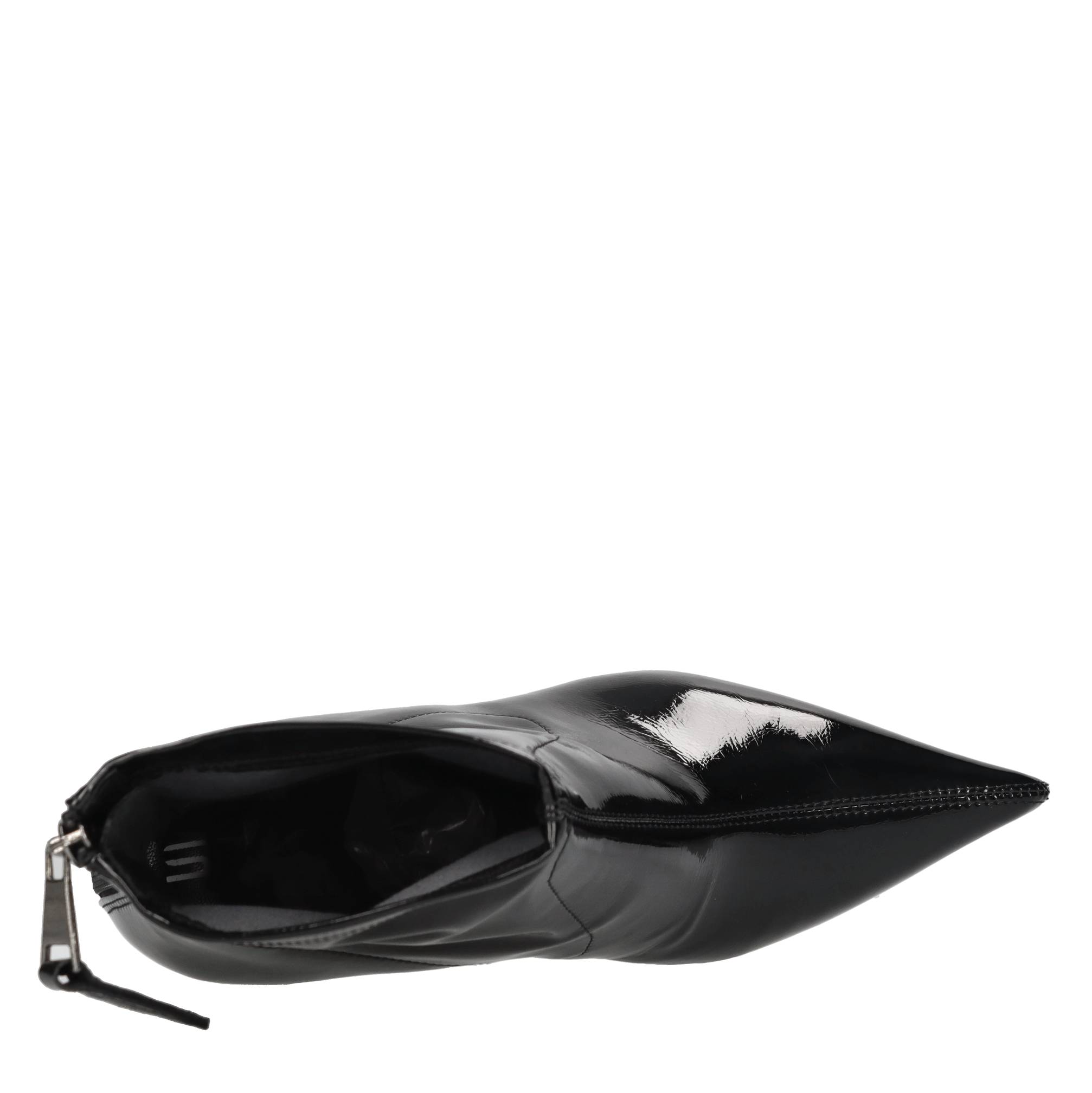 Fabric ankle boots. Vinyl effect. Leather upper. Leather and rubber outsole.