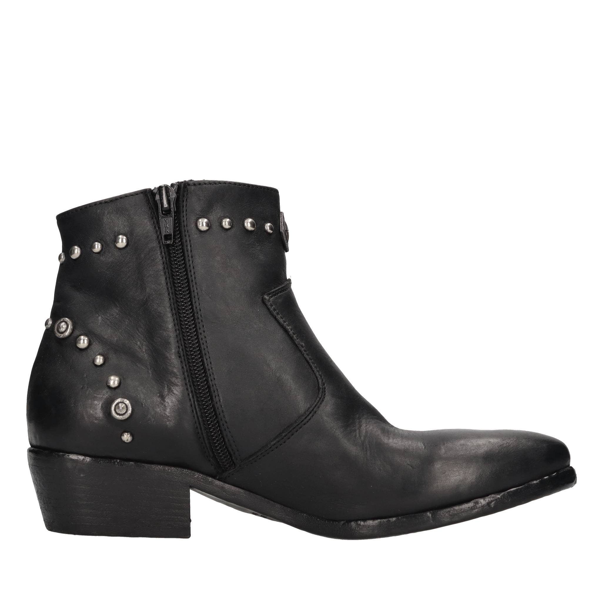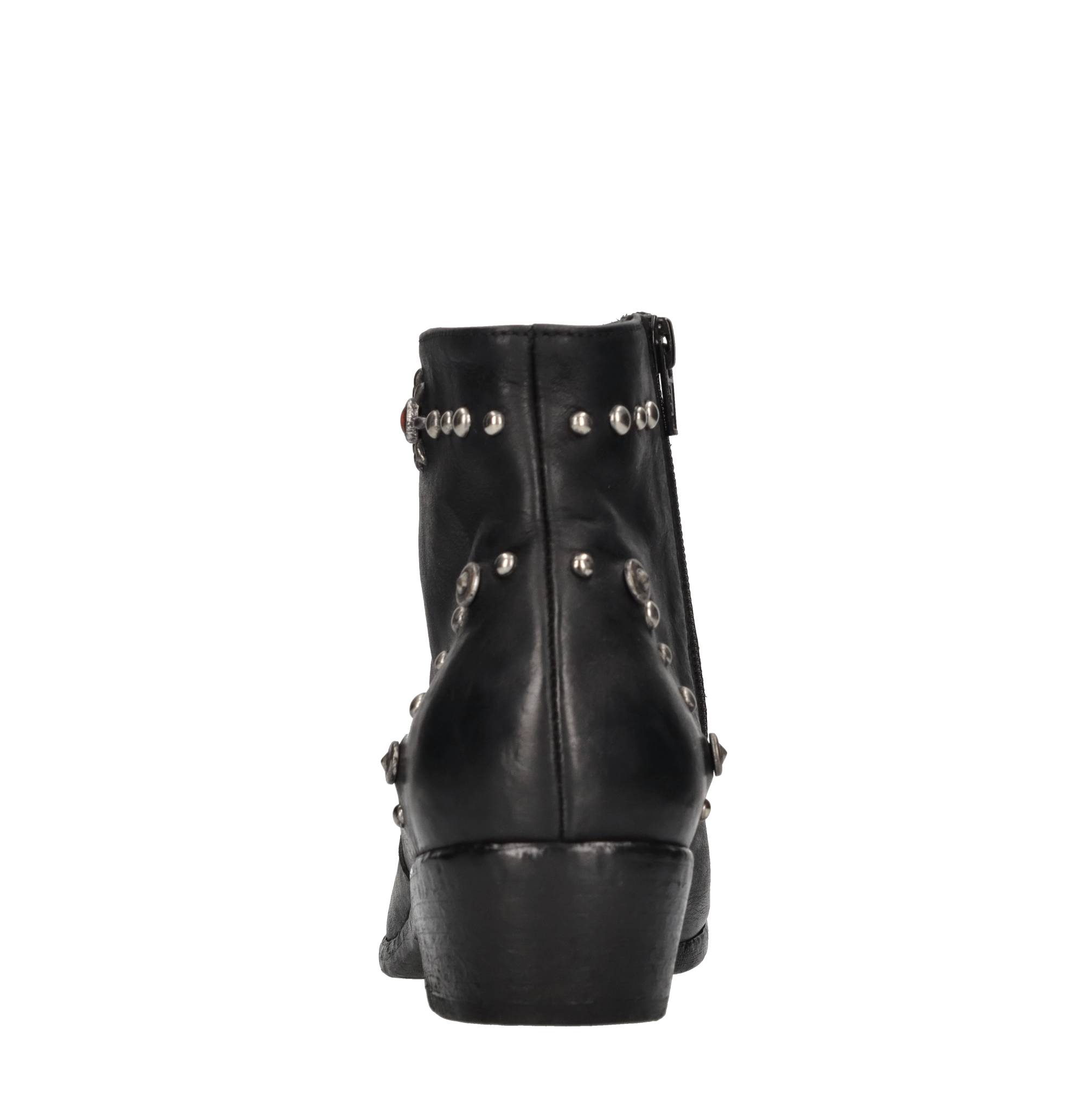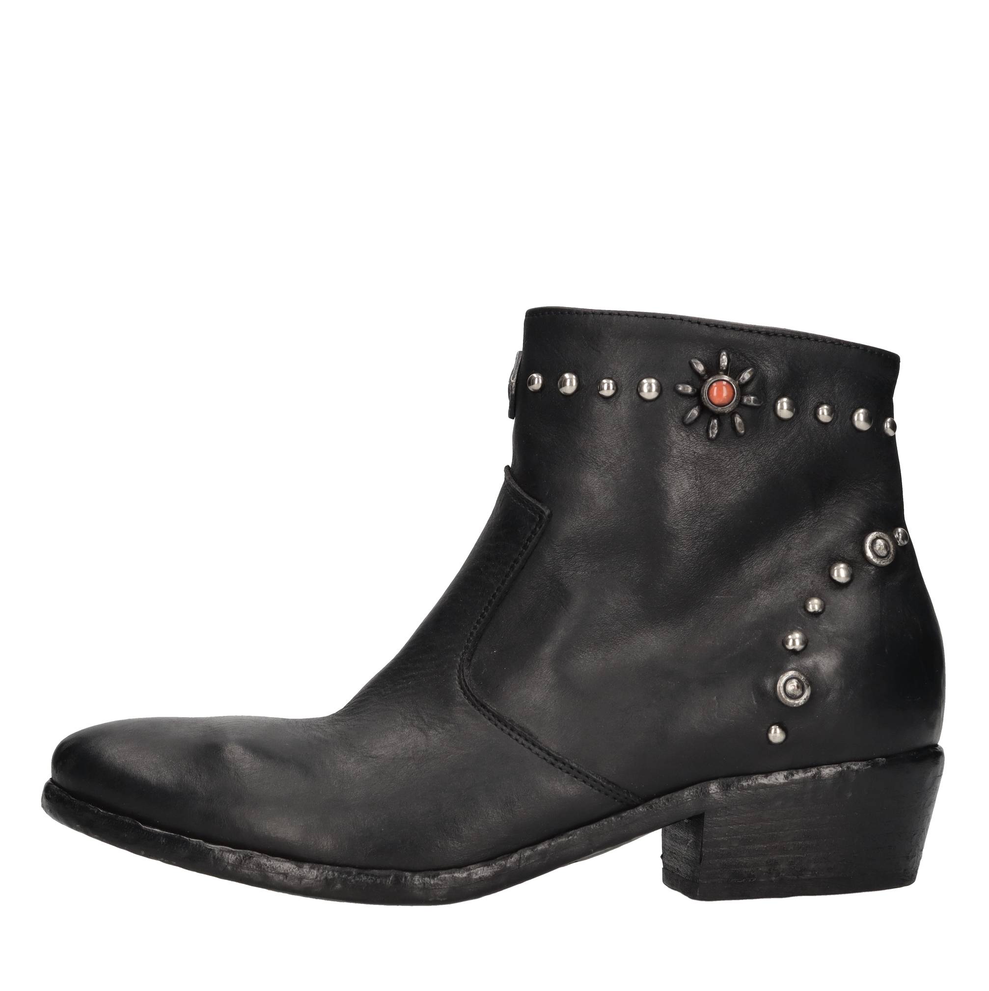 Leather ankle boots. Antique silver-tone appliques. Leather upper. Leather outsole.
