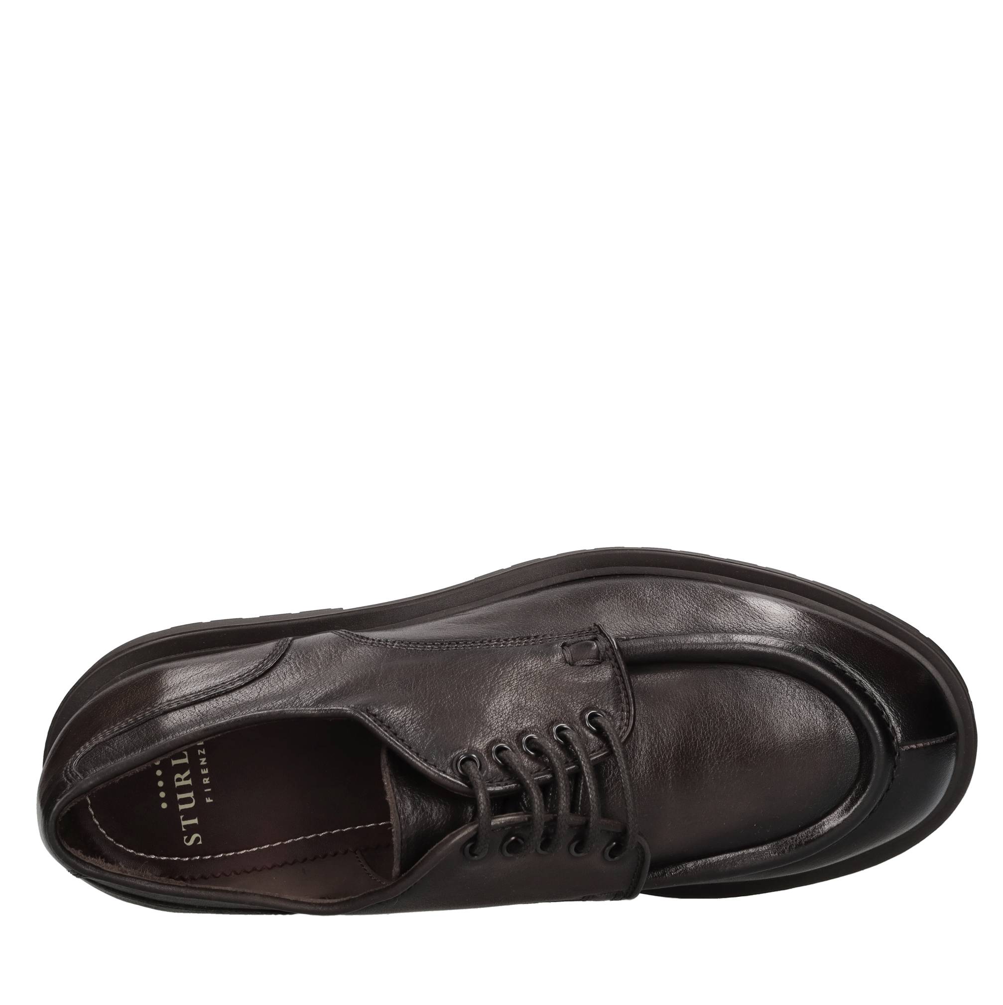Leather lace-ups. Leather upper. Rubber outer sole.