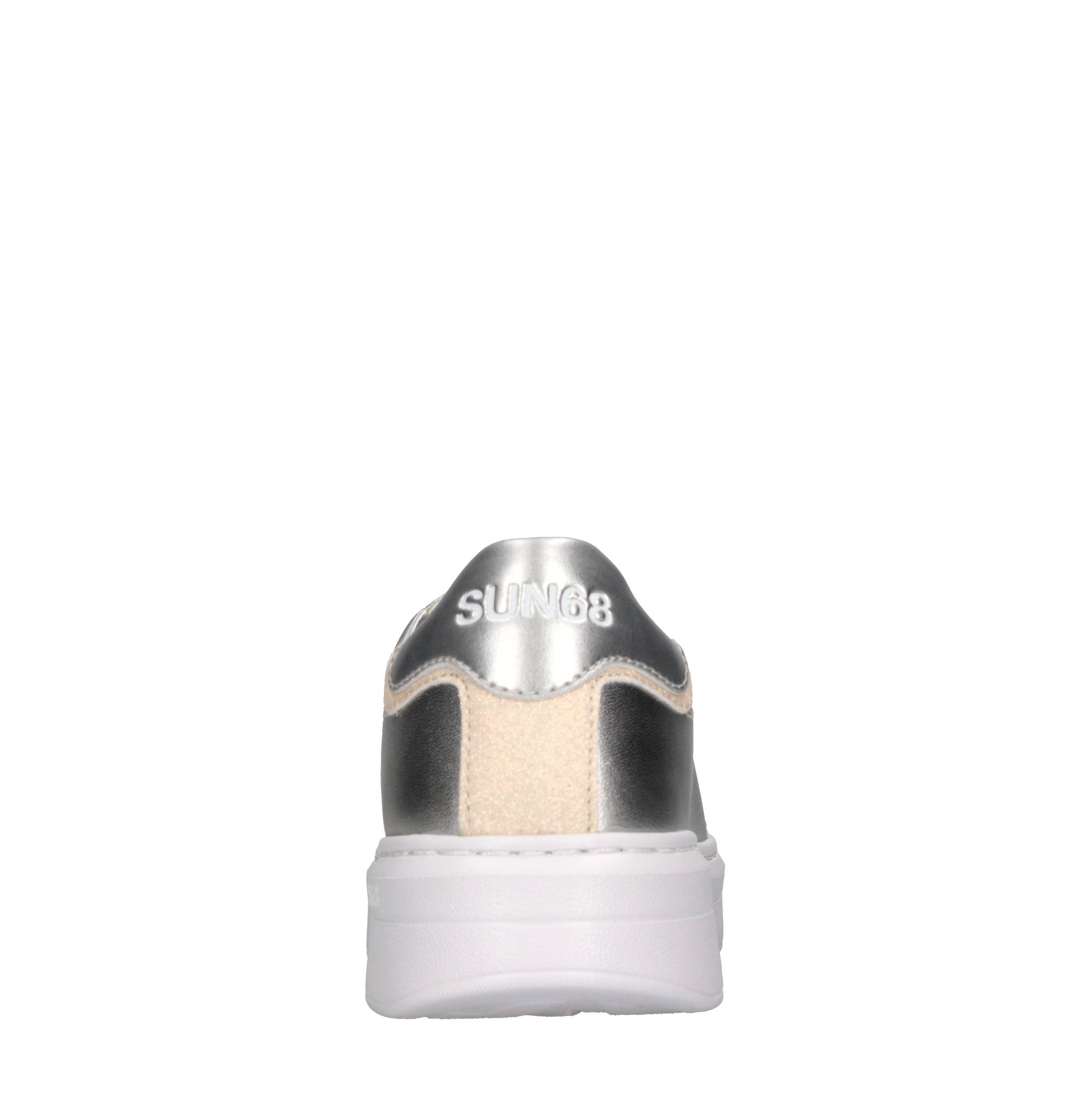 Leather and fabric trainers. Multi-material upper. Rubber outer sole. Minor imperfections.