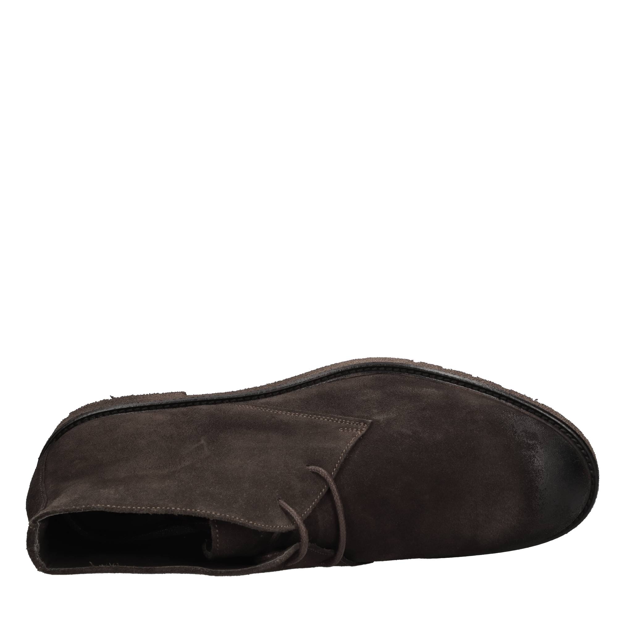 Suede ankle boots. Leather inner upper. Rubber outer sole. Vintage effect.