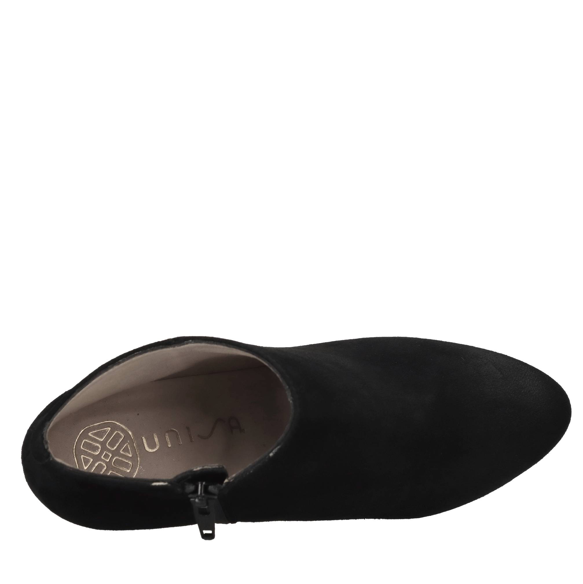 Suede ankle boots. Leather upper. Rubber outsole.