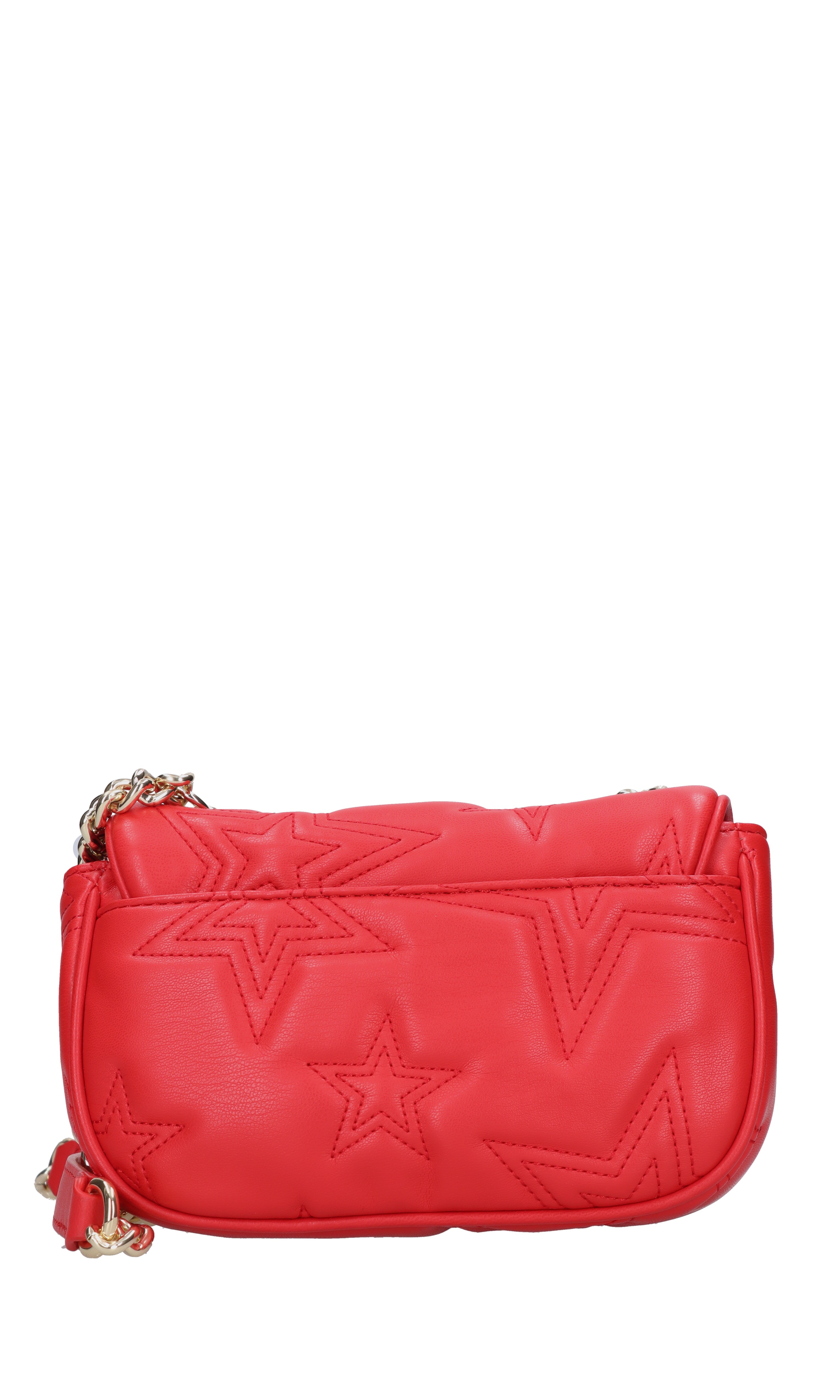 Faux leather bag. Flap and snap button closure. 1 sub-fund. Non-adjustable shoulder strap. Shipped in a transparent bag.