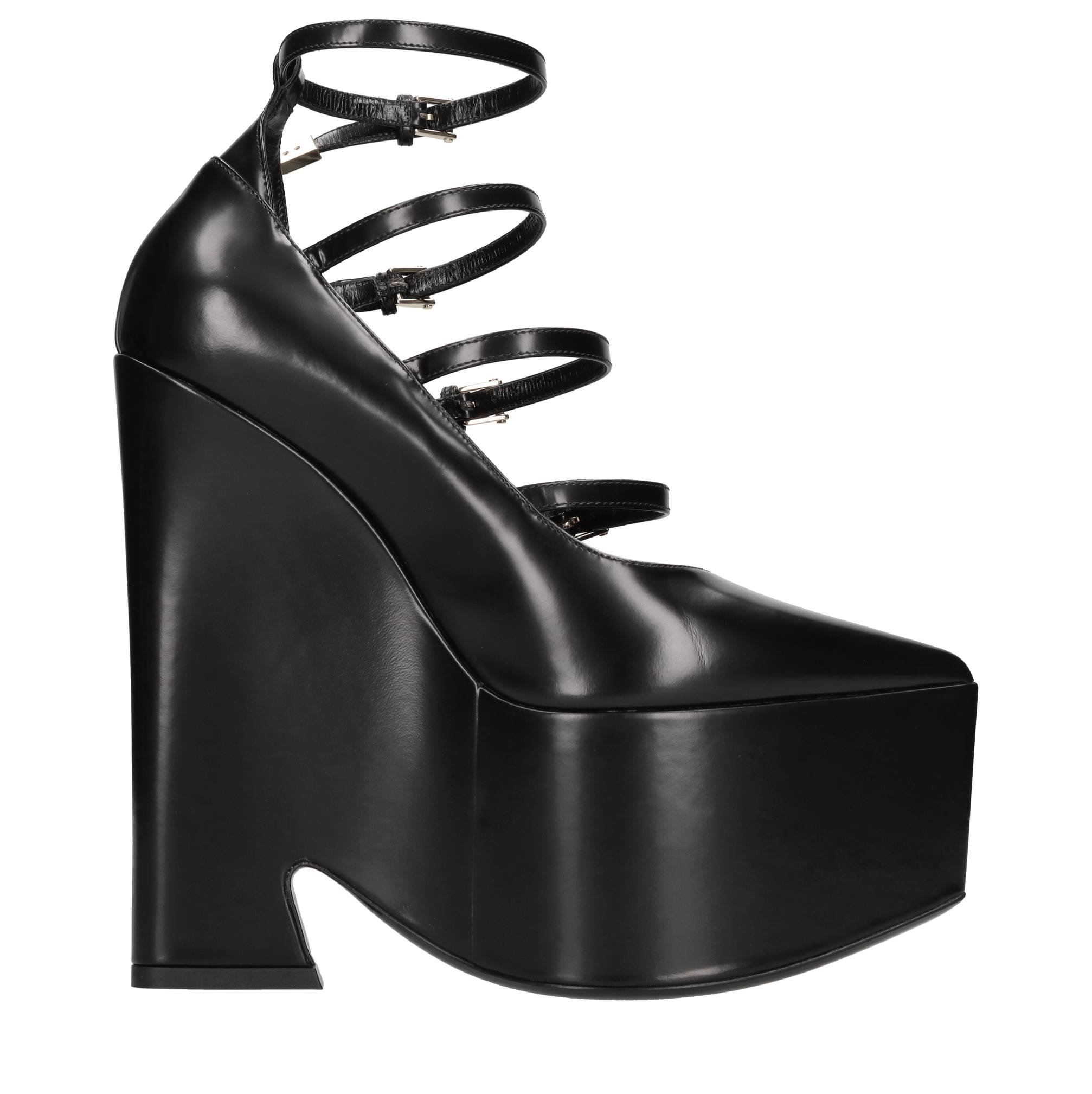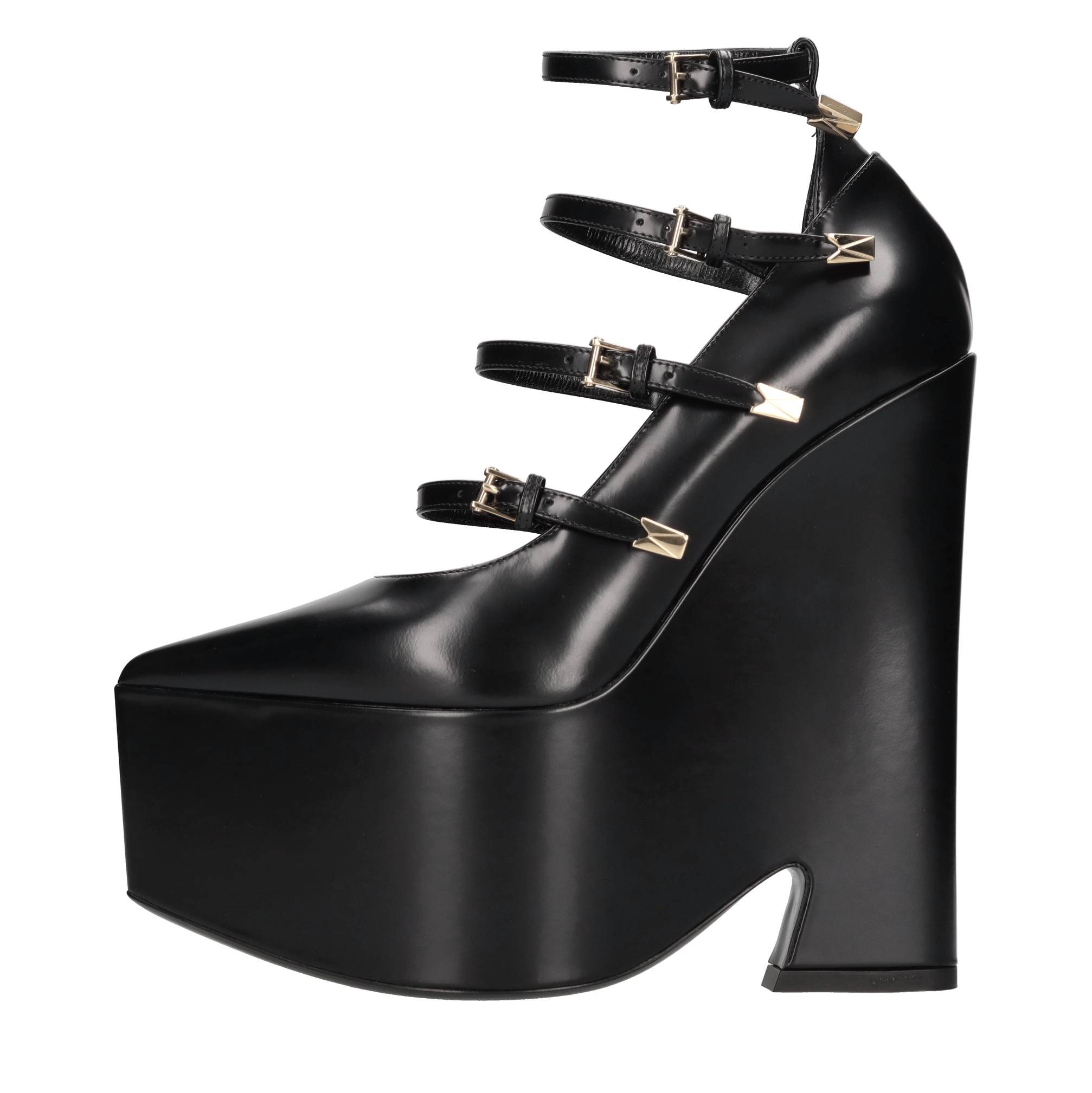 Leather pumps. Gold-tone details. Leather upper. Leather and rubber outsole. Platform: 7 cm.