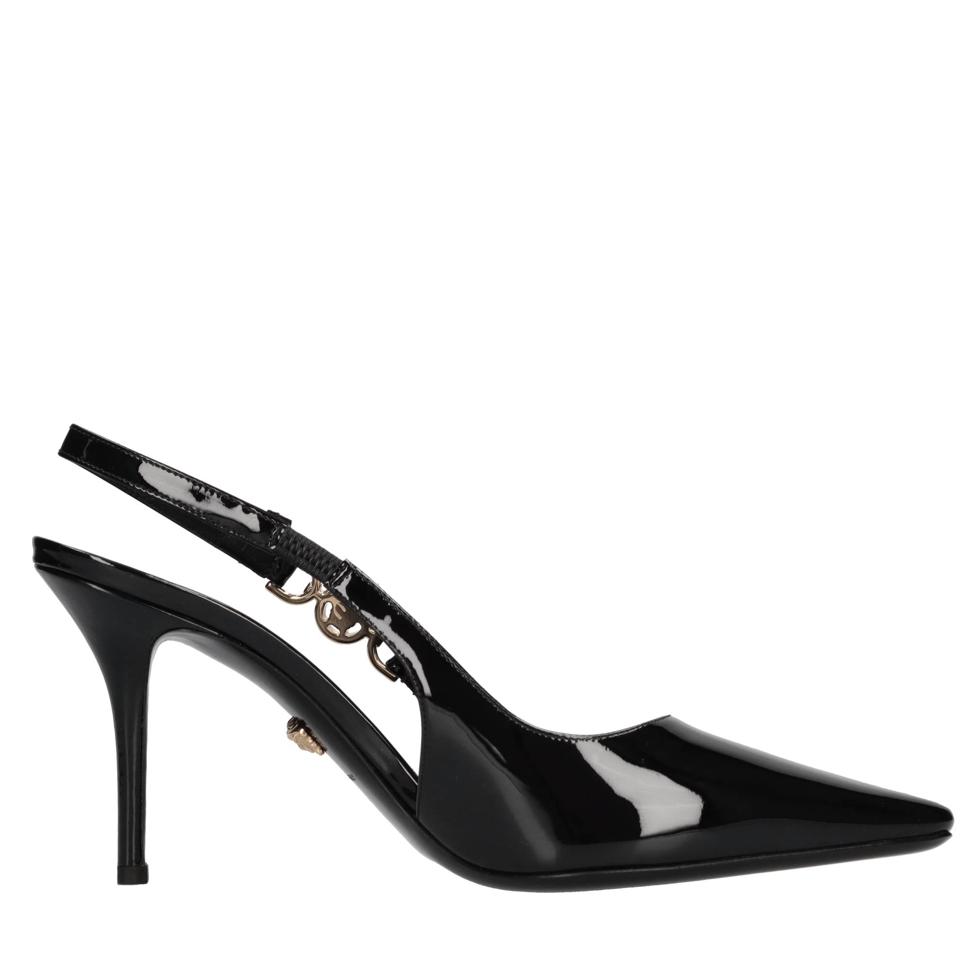Slingback pumps in shiny leather. Gold detail. Leather upper. Leather outsole.