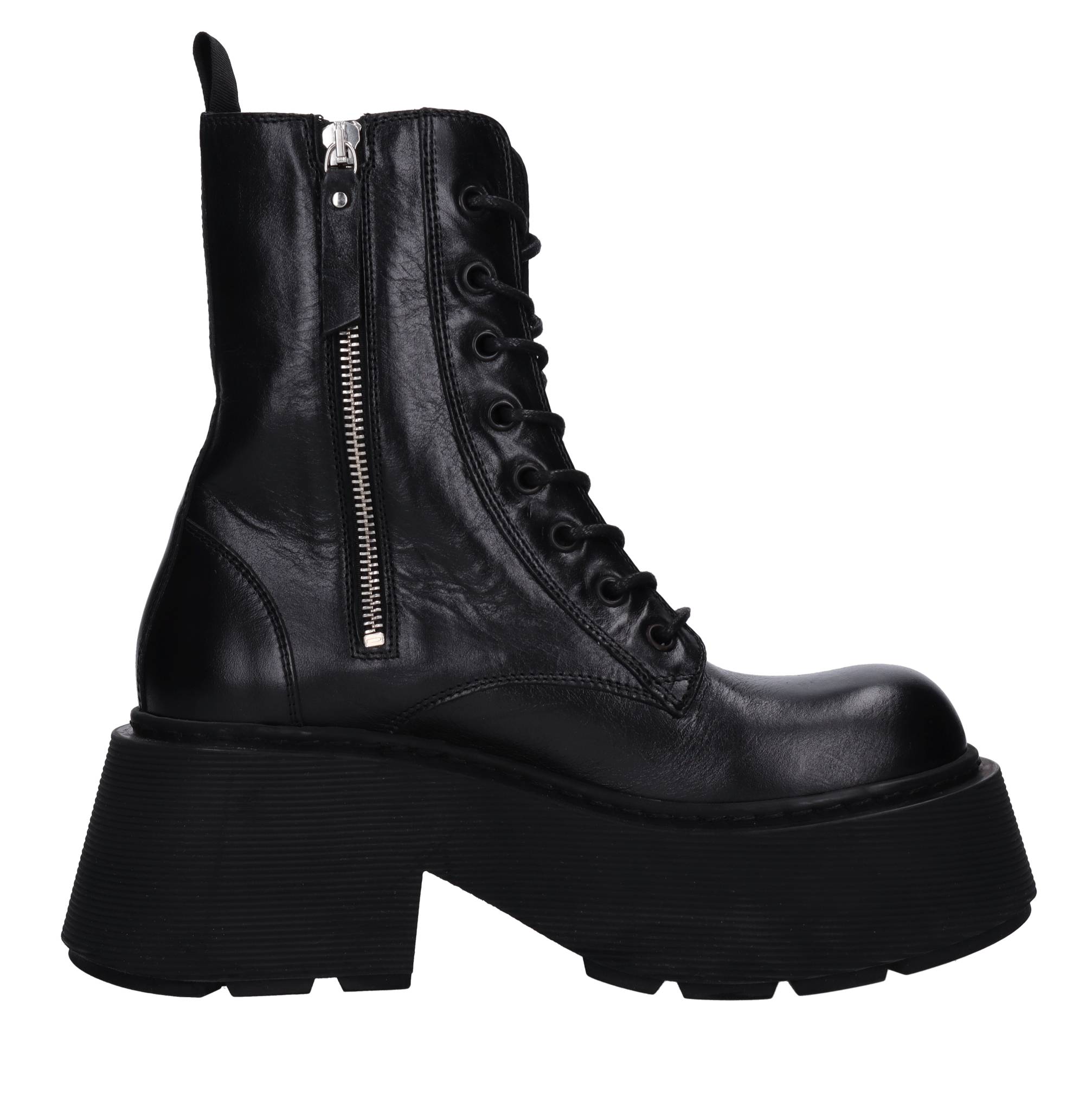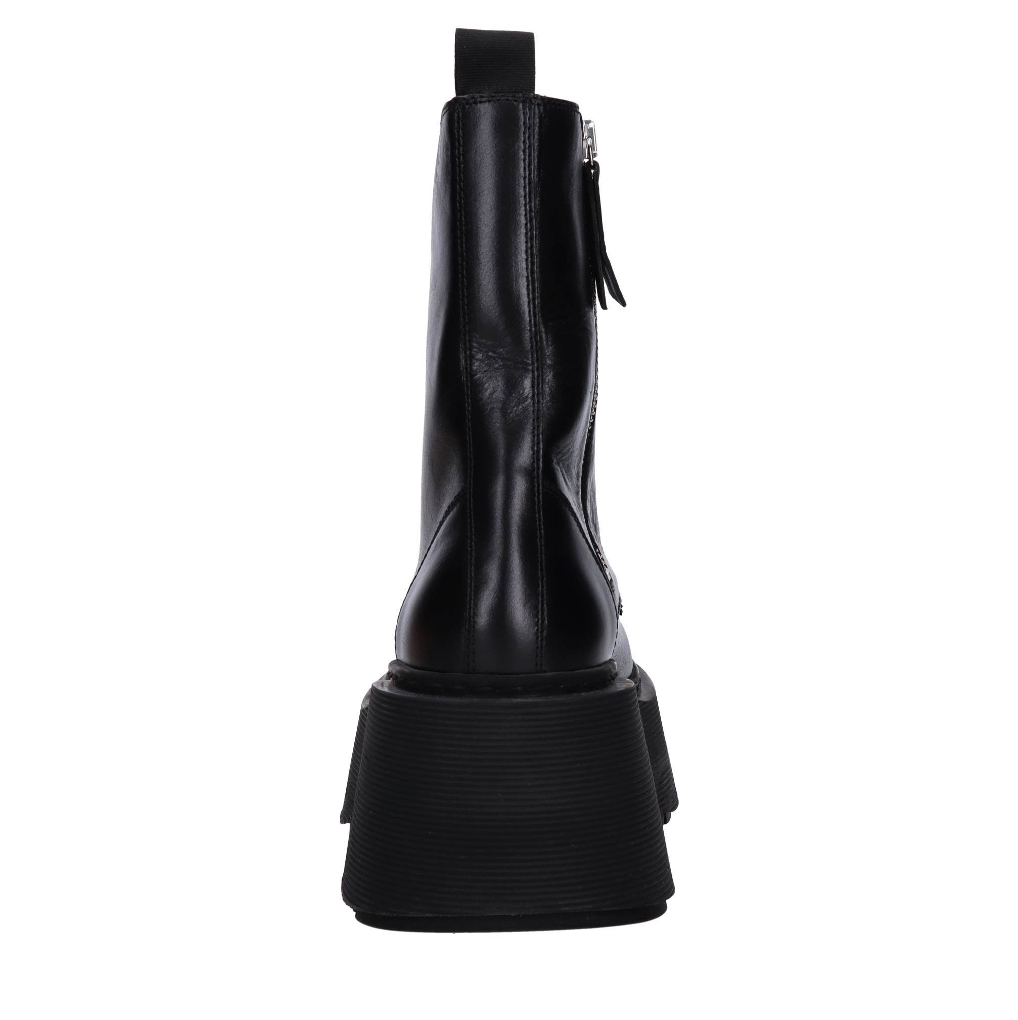 Leather ankle boots. Leather inner upper. Rubber outsole. Zip side zip inside.