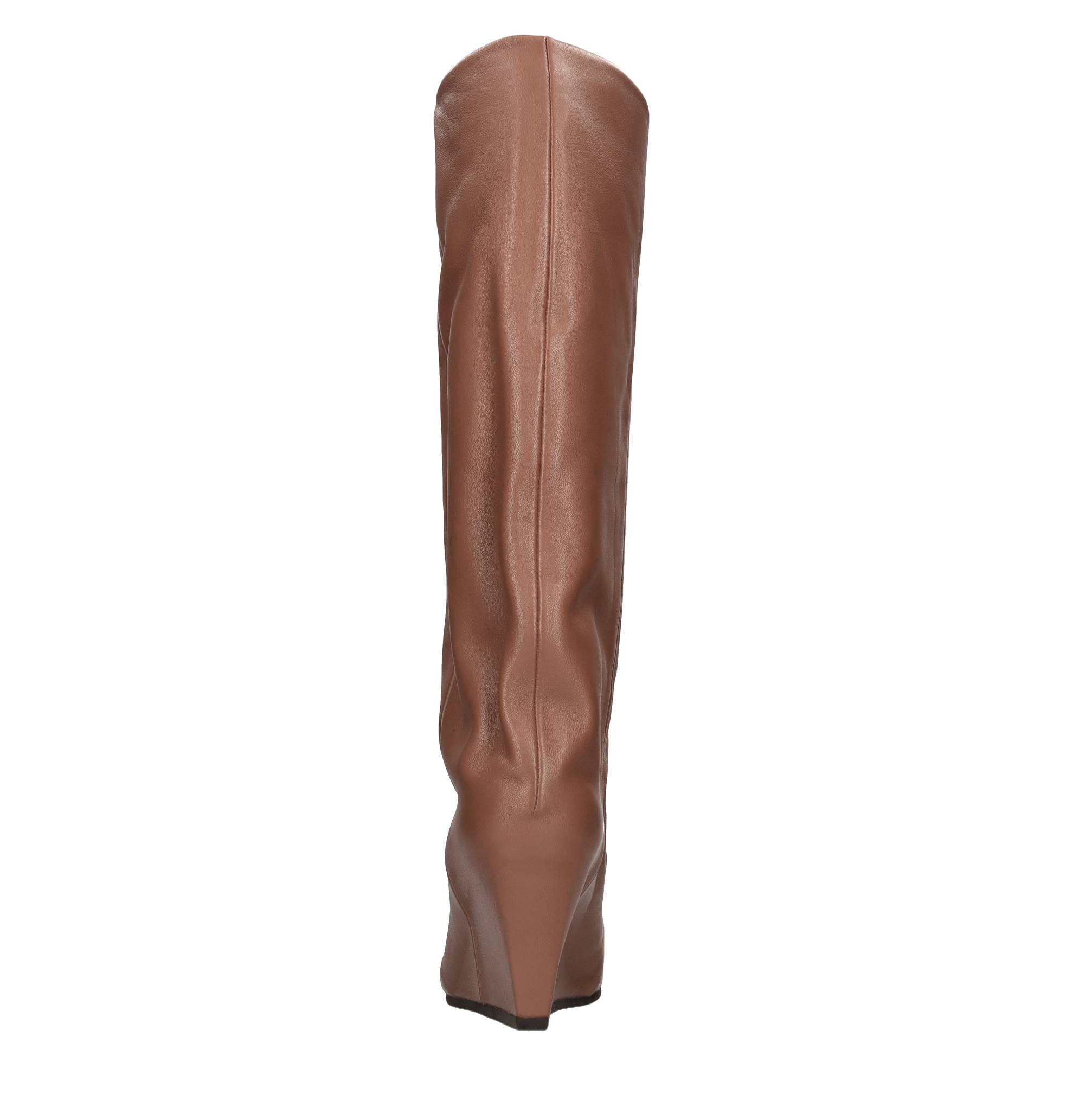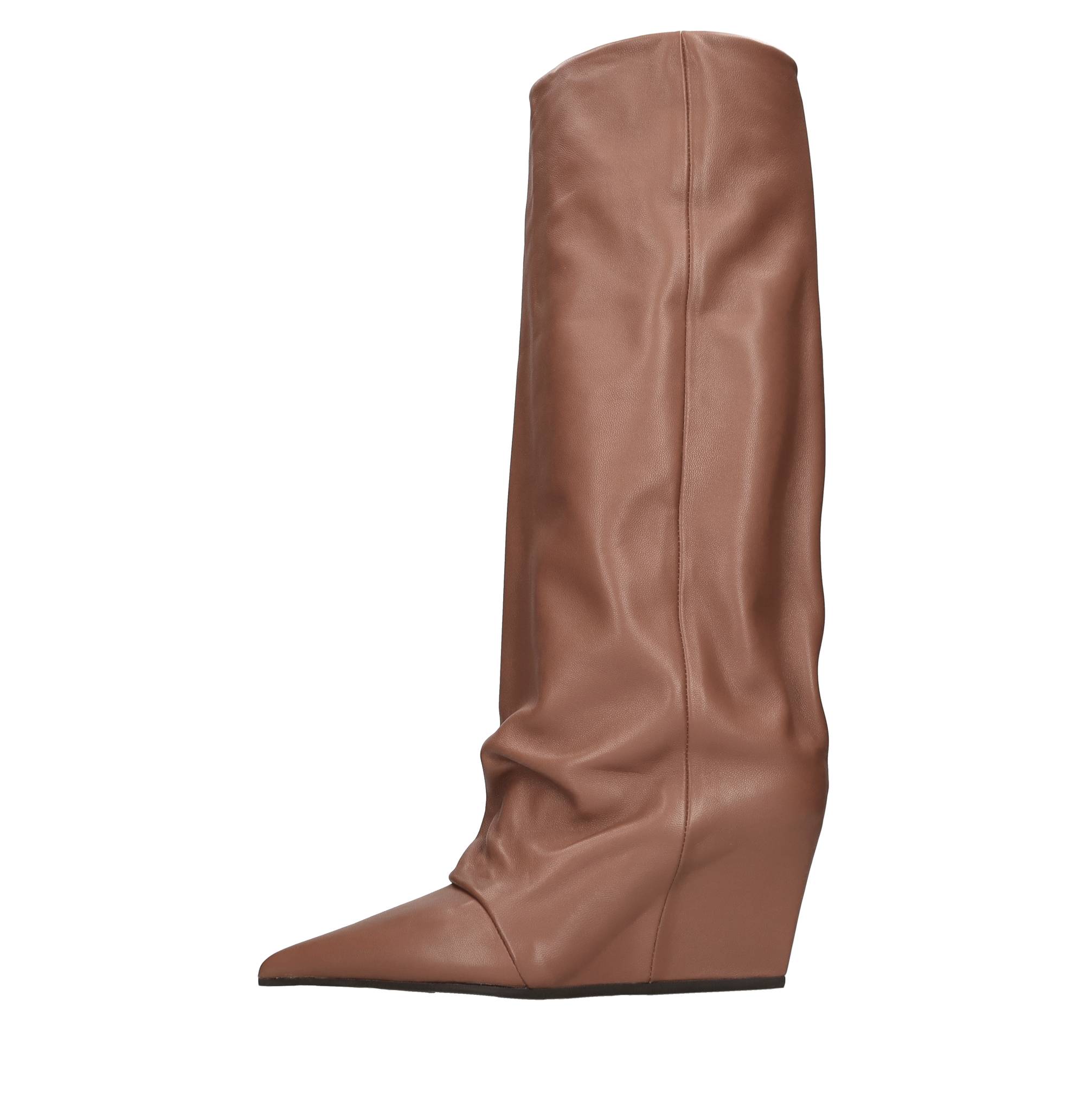 Leather boots. Leather inner upper. Rubber outer sole. The shade of brown tends more towards brick red (ask for info).